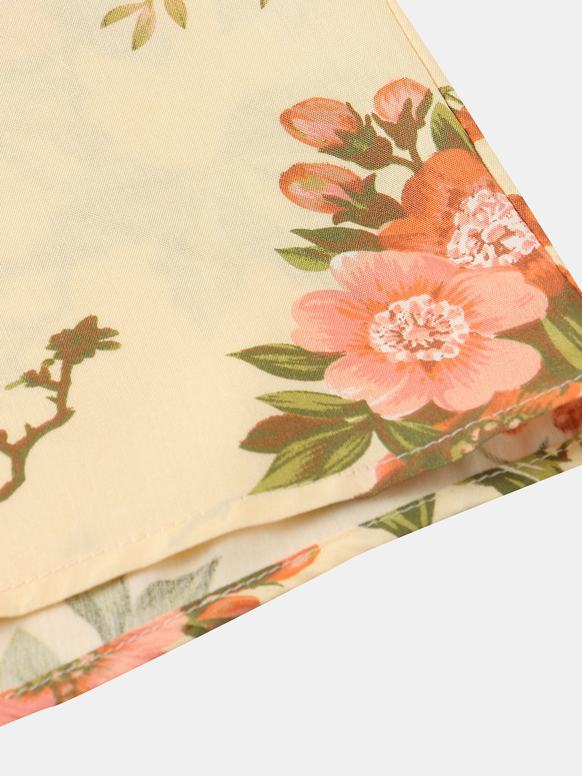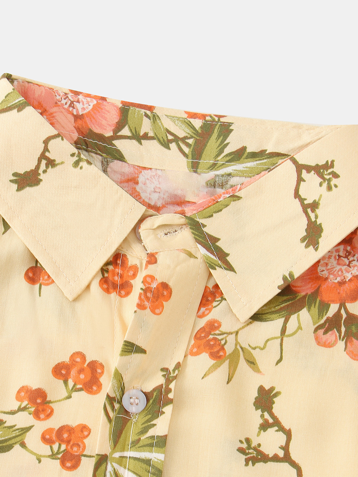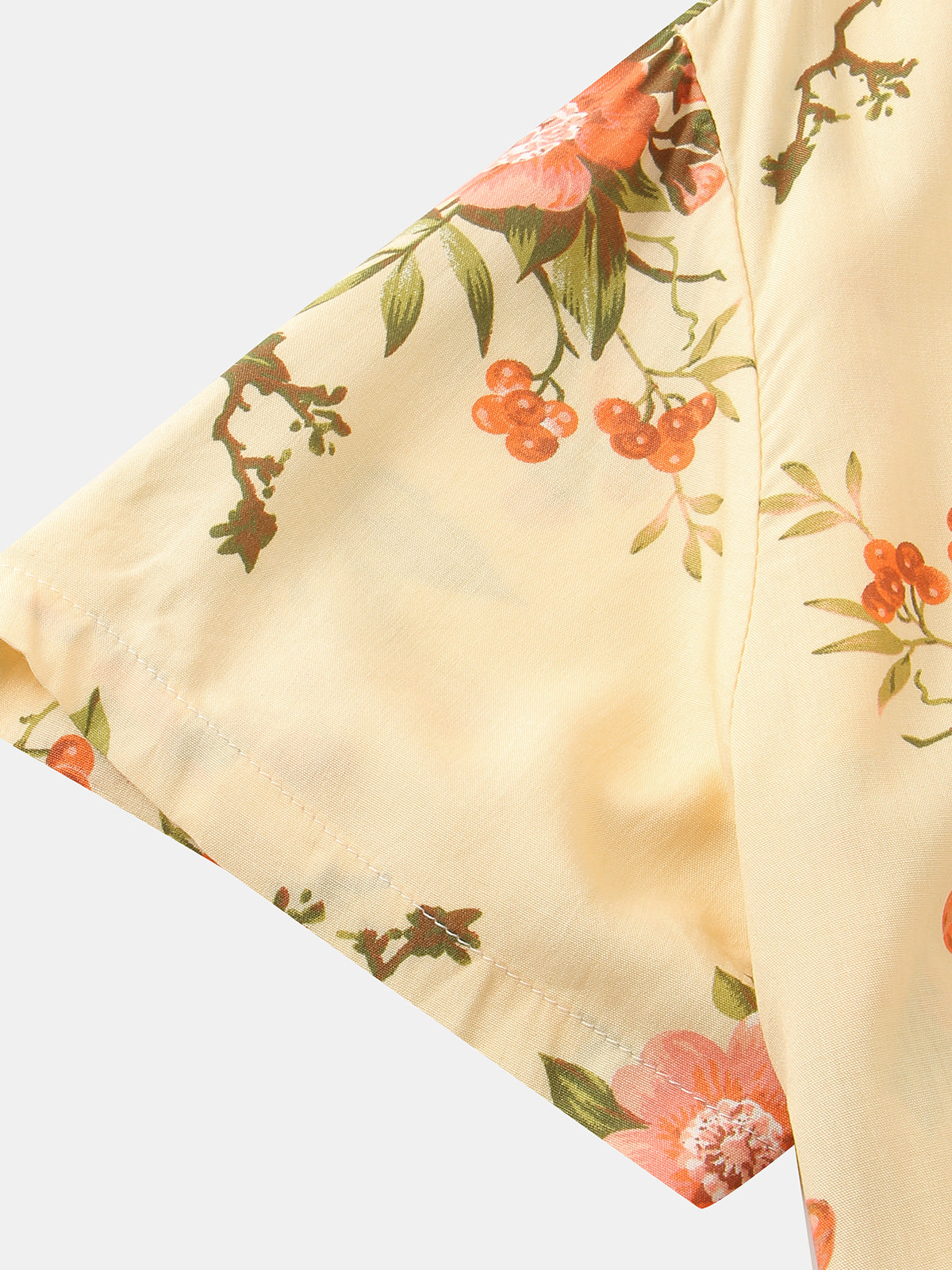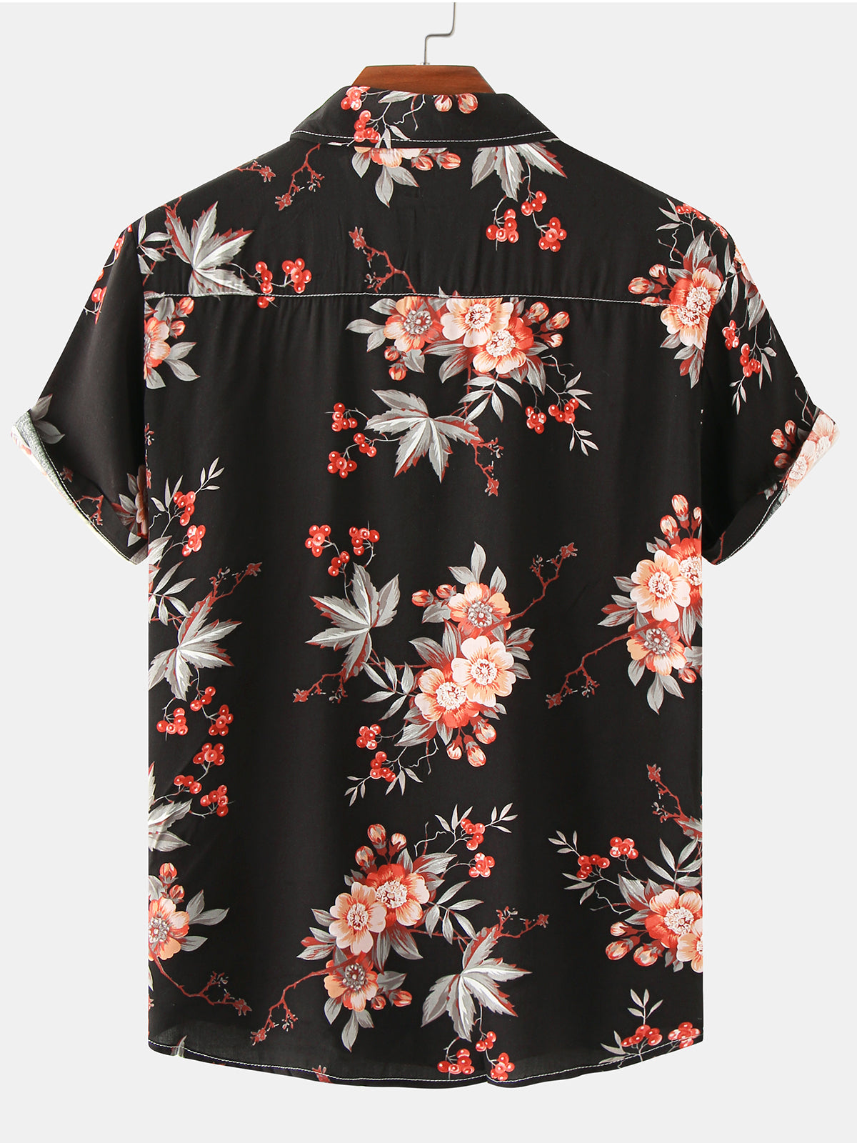 Men's Casual Button Up Holiday 70s Retro Floral Casual Short Sleeve Shirt