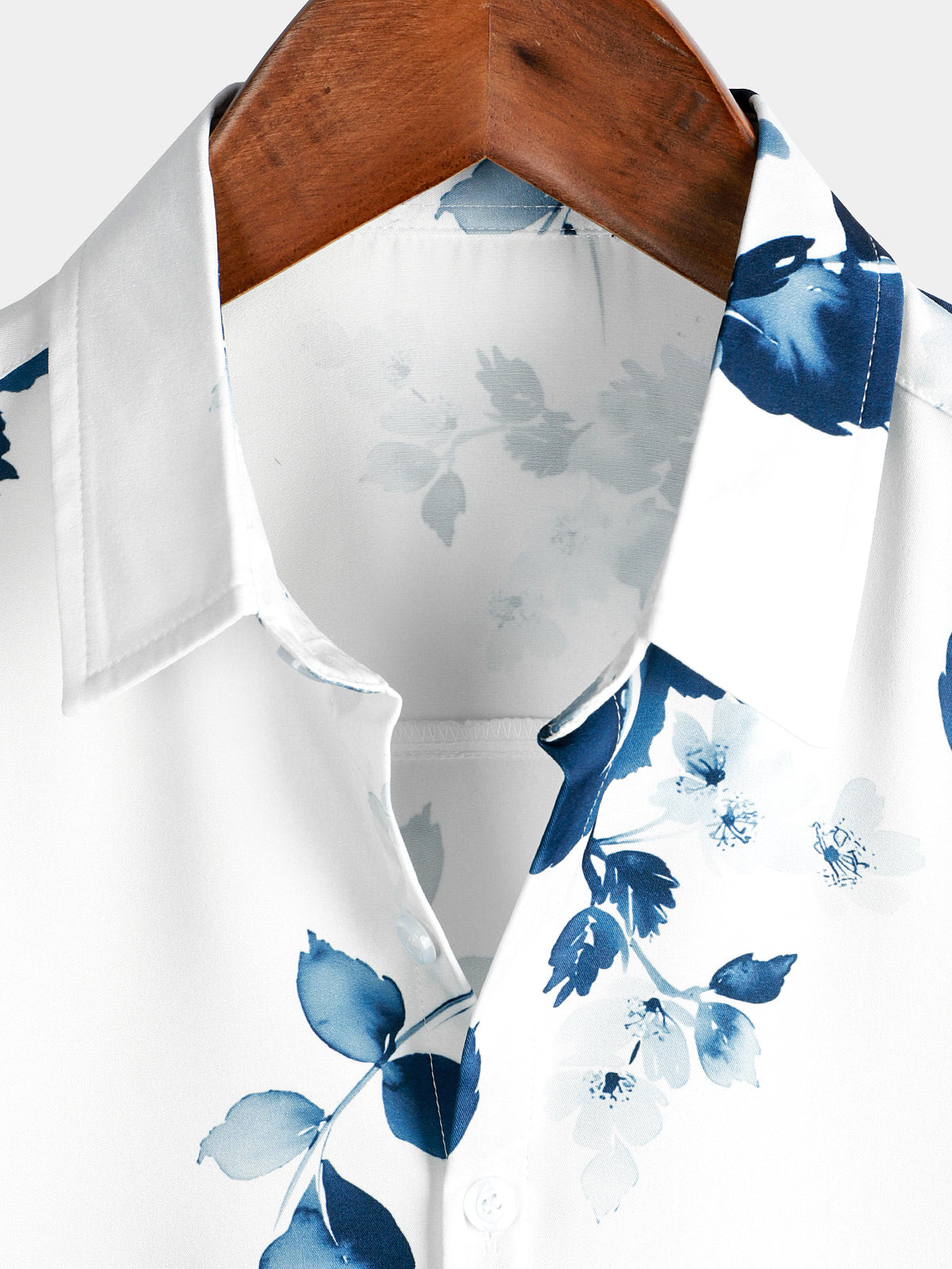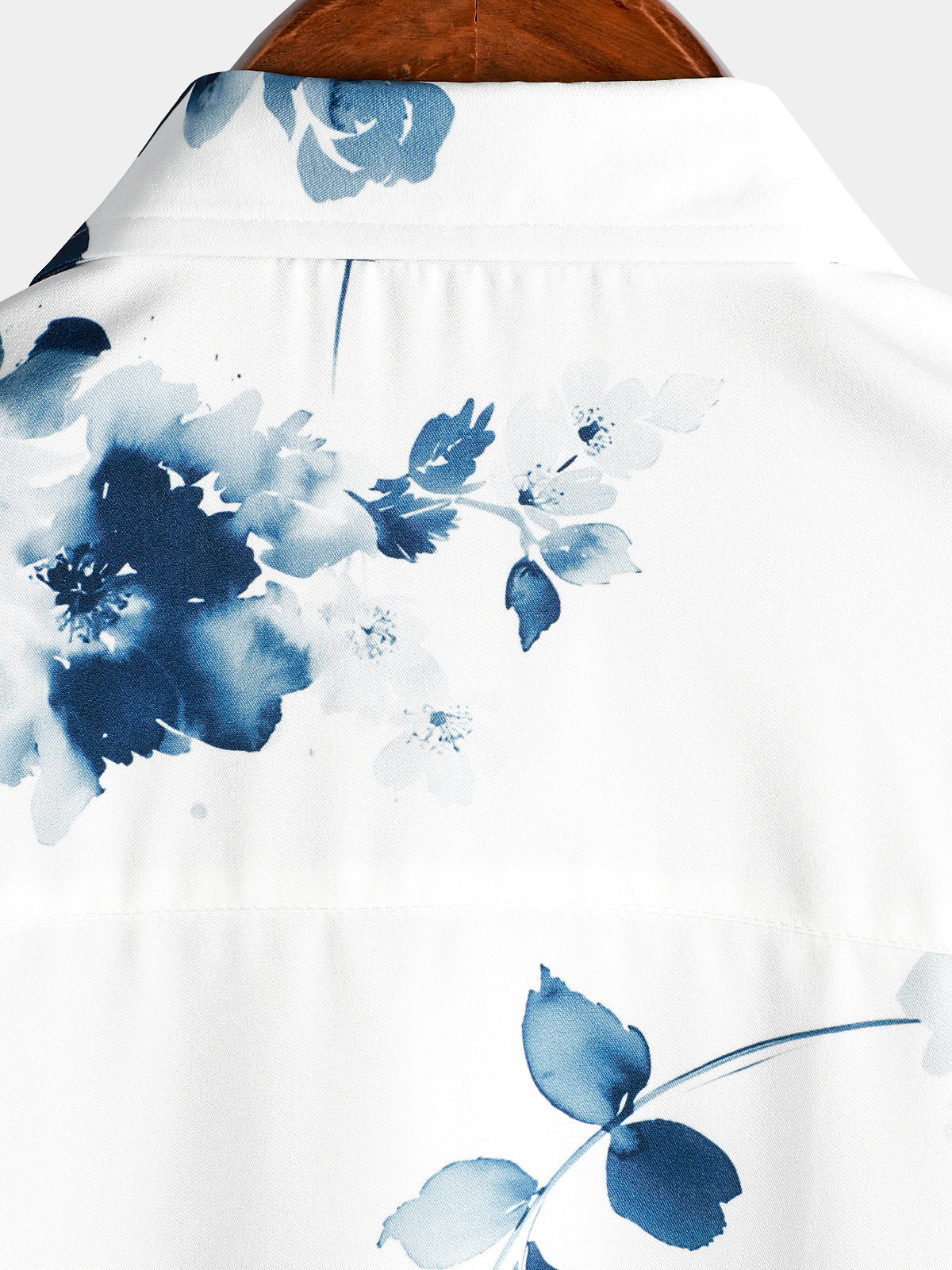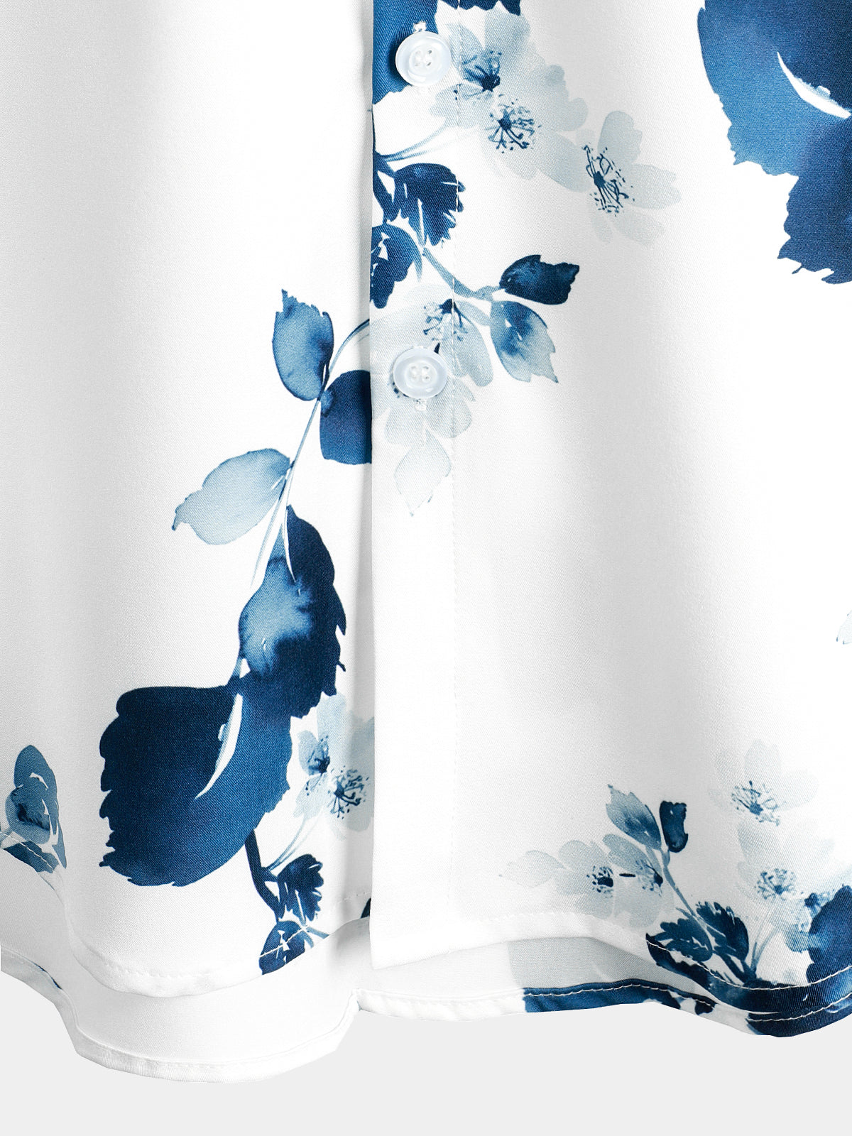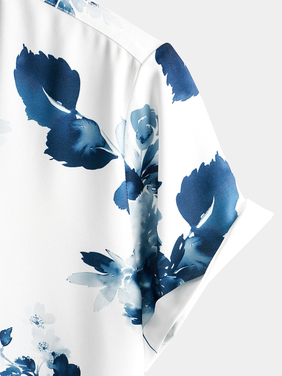 Men's Casual Floral Art Button Up Short Sleeve Summer Holiday Beach Shirt
