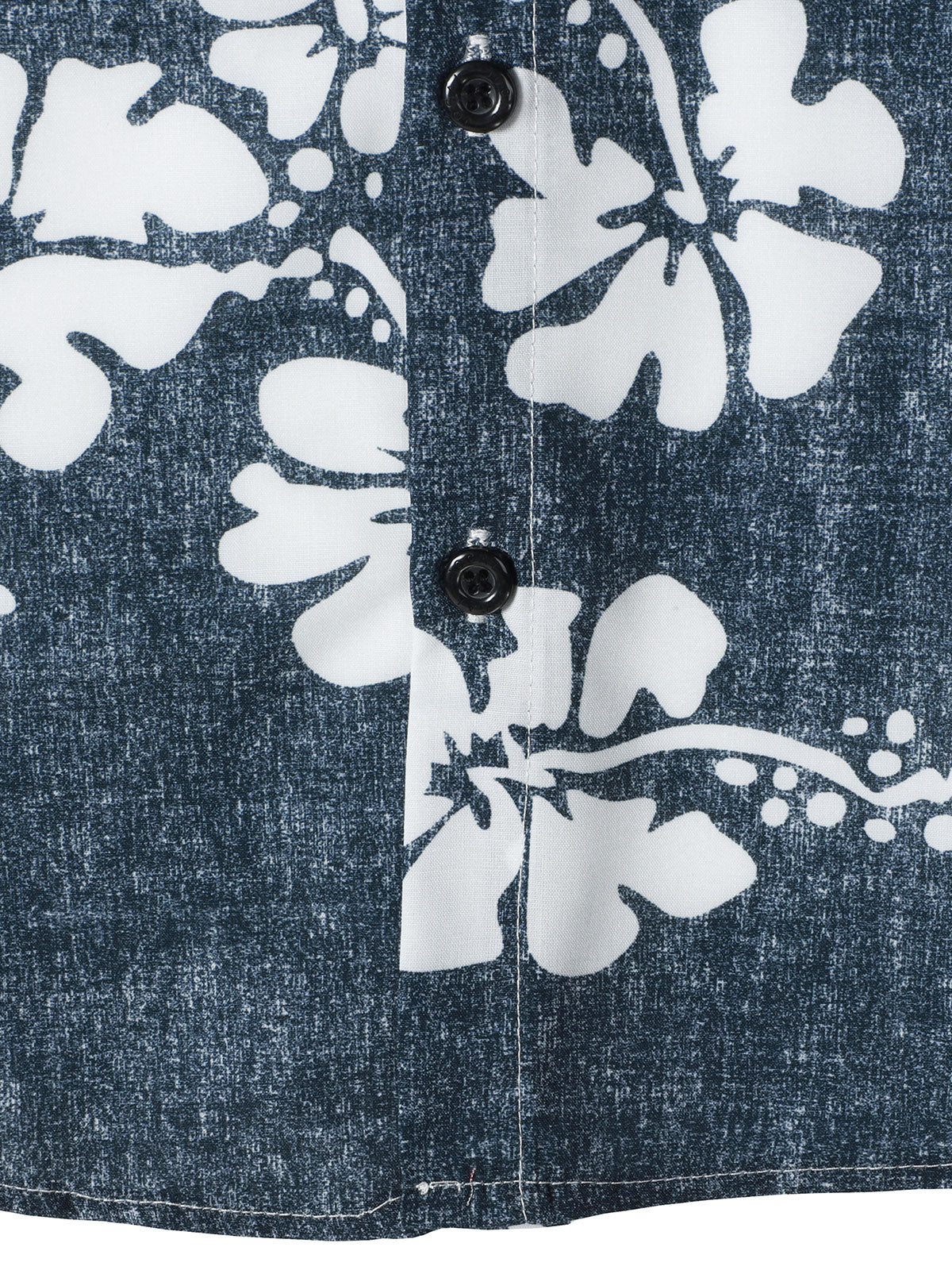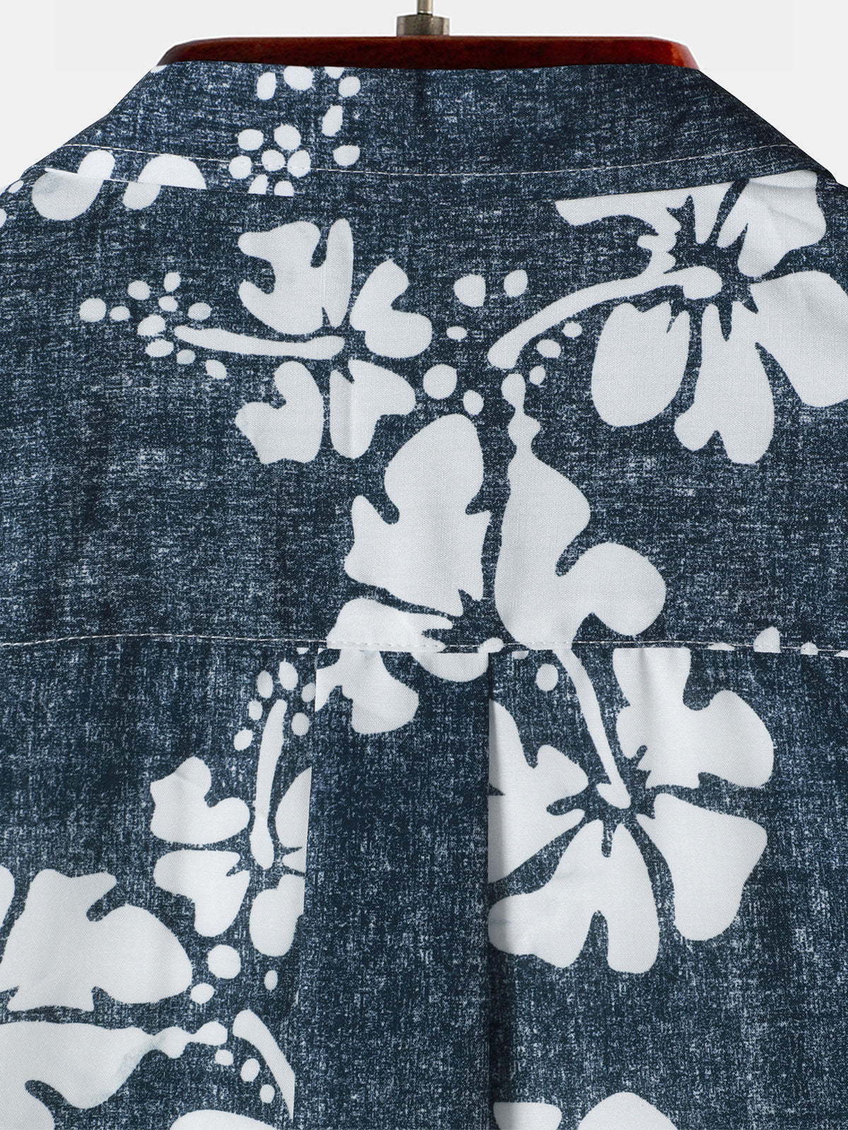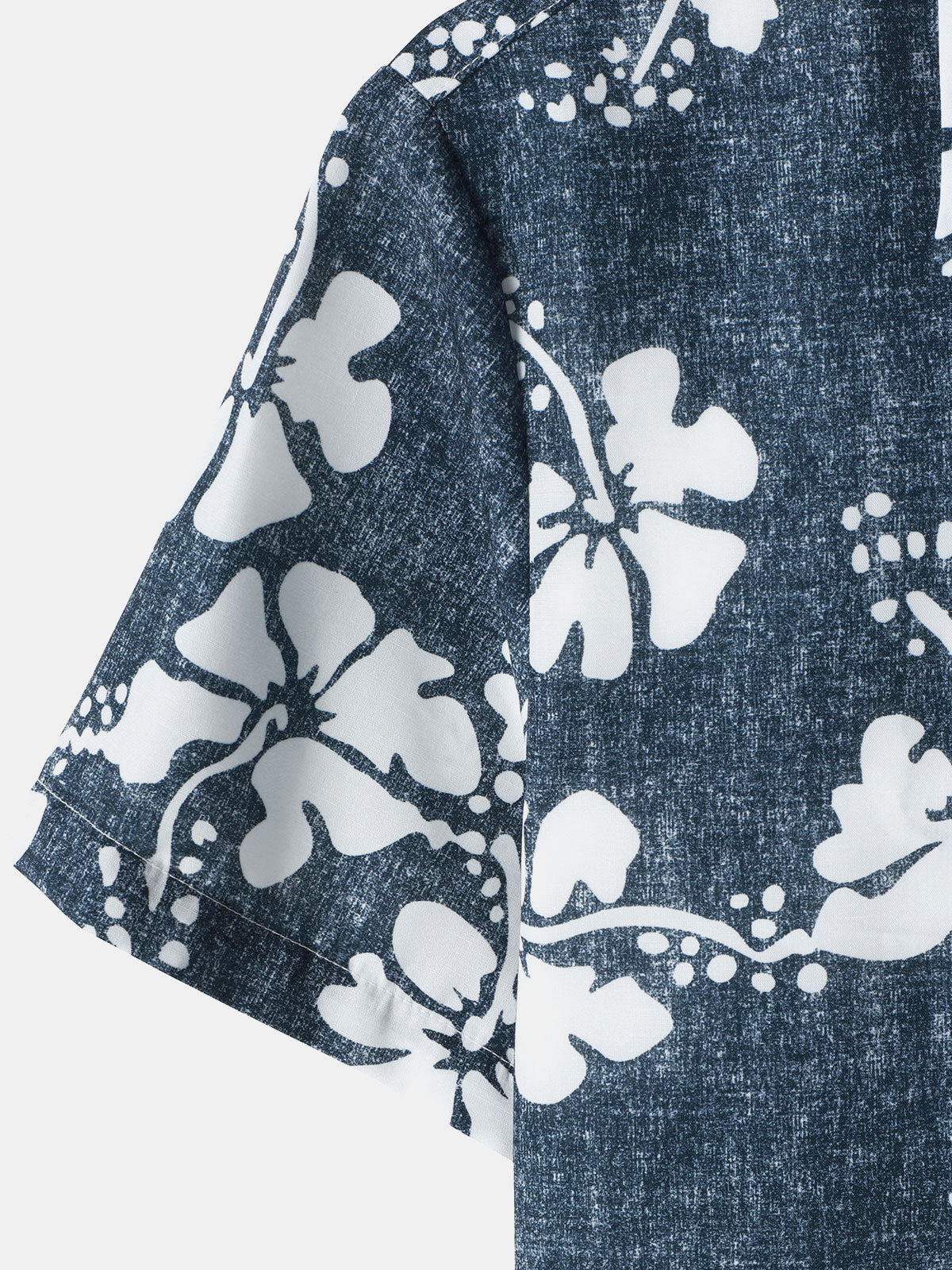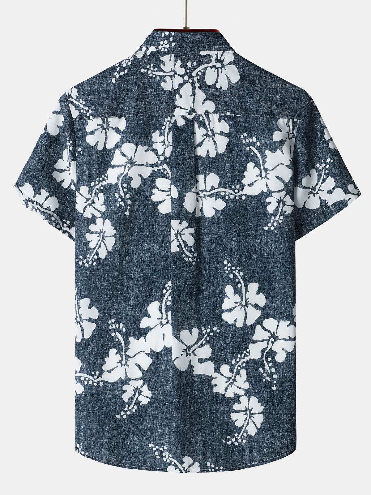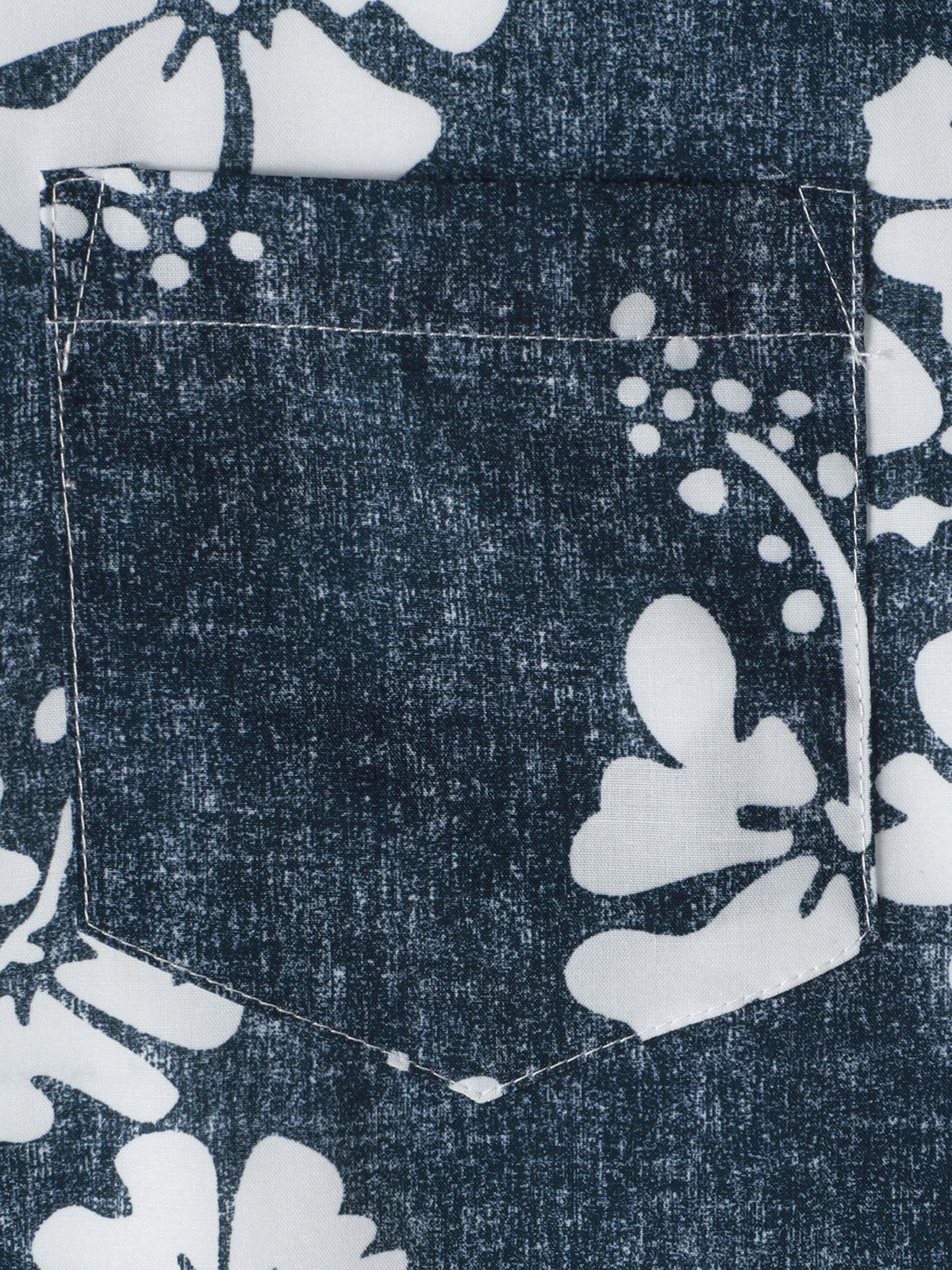 Men's Floral Hawaiian Pocket Navy Blue Button Up Short Sleeve Shirt