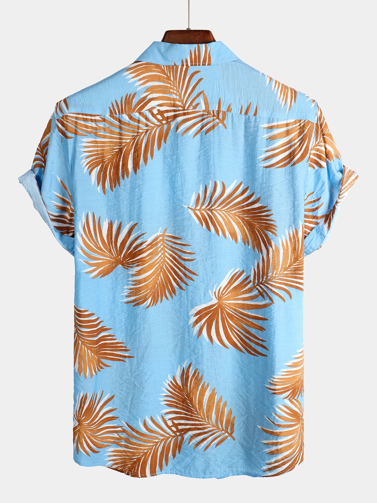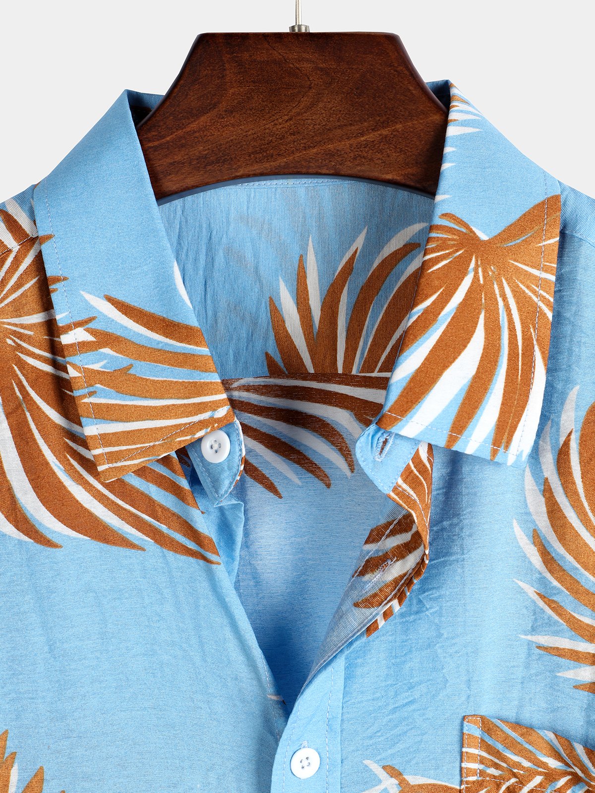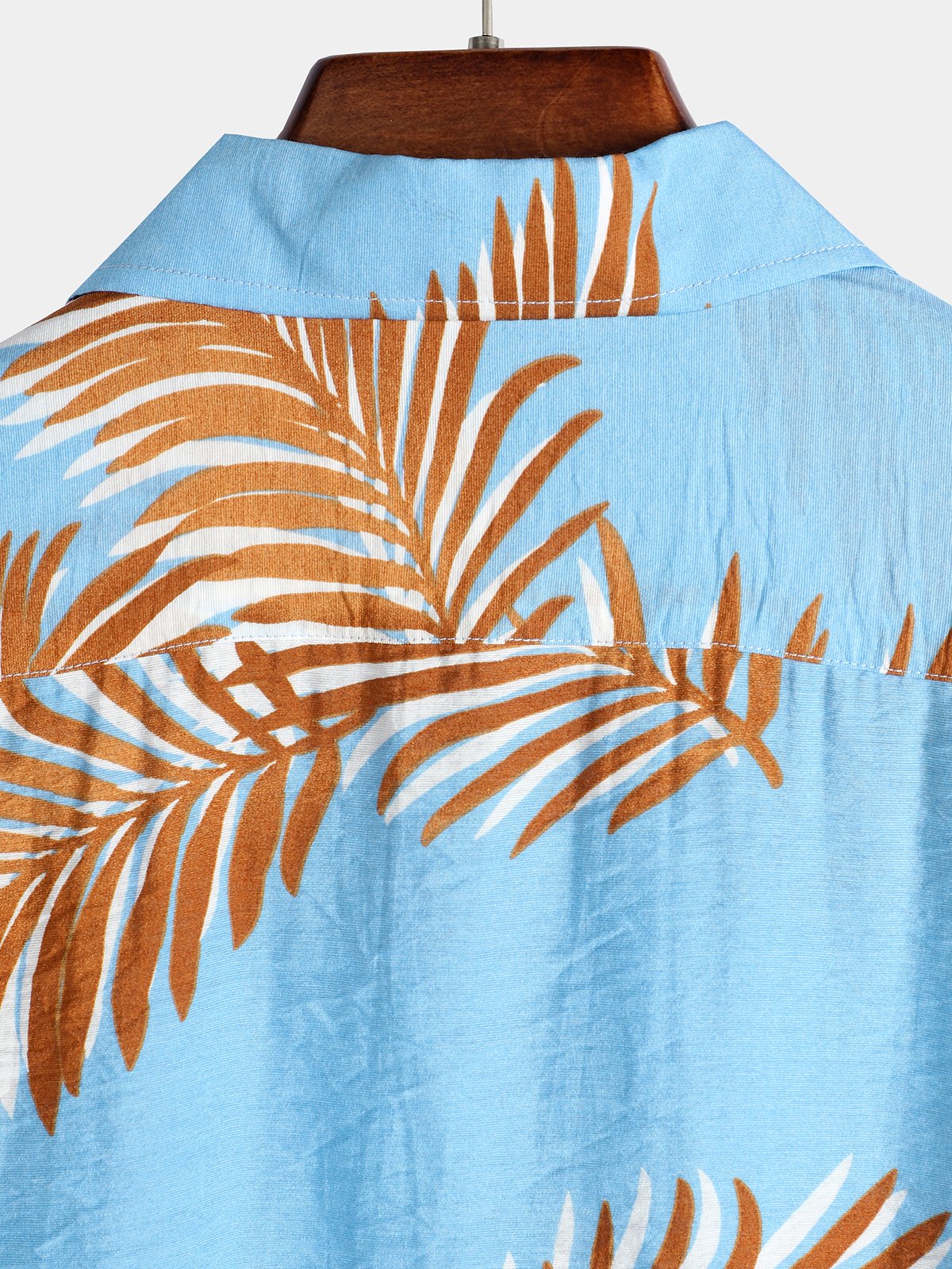 Men's Floral Holiday Blue Short Sleeve Cotton Shirt