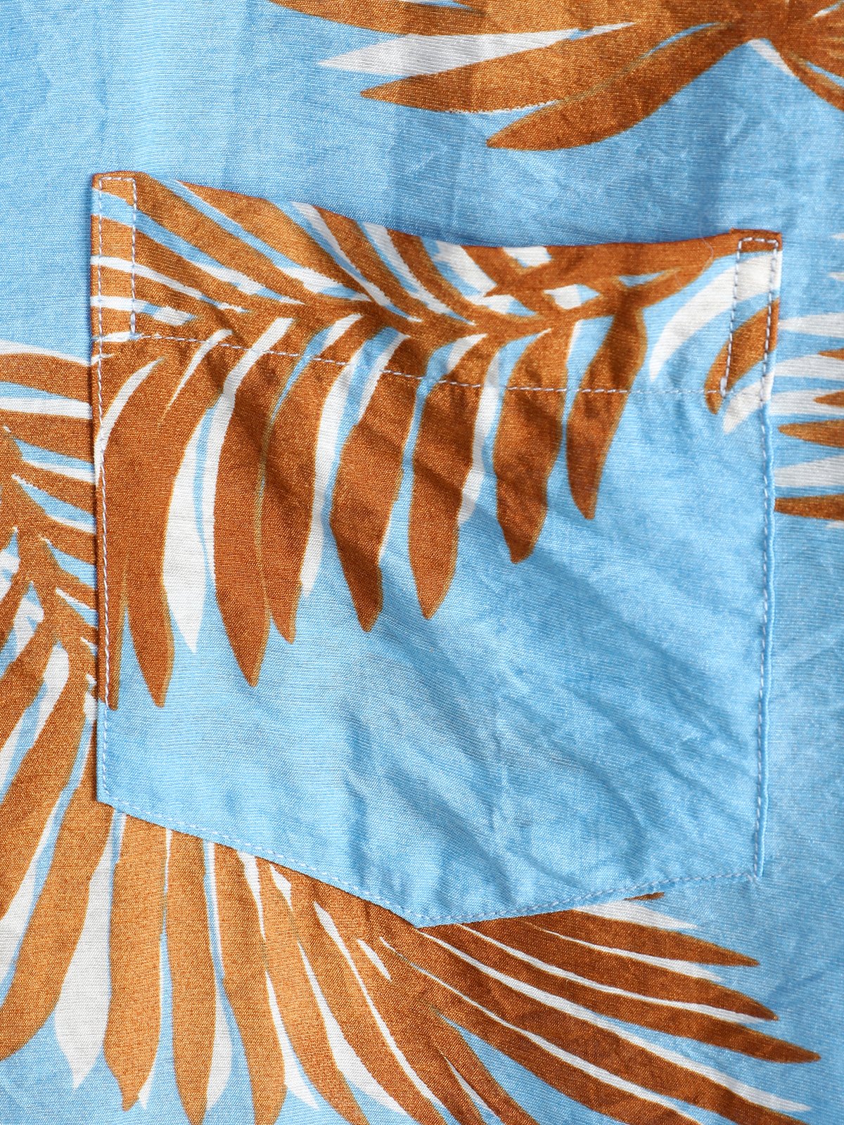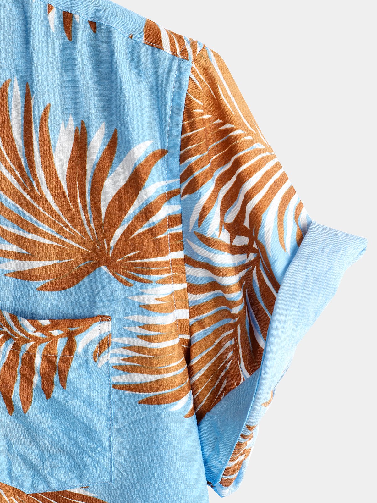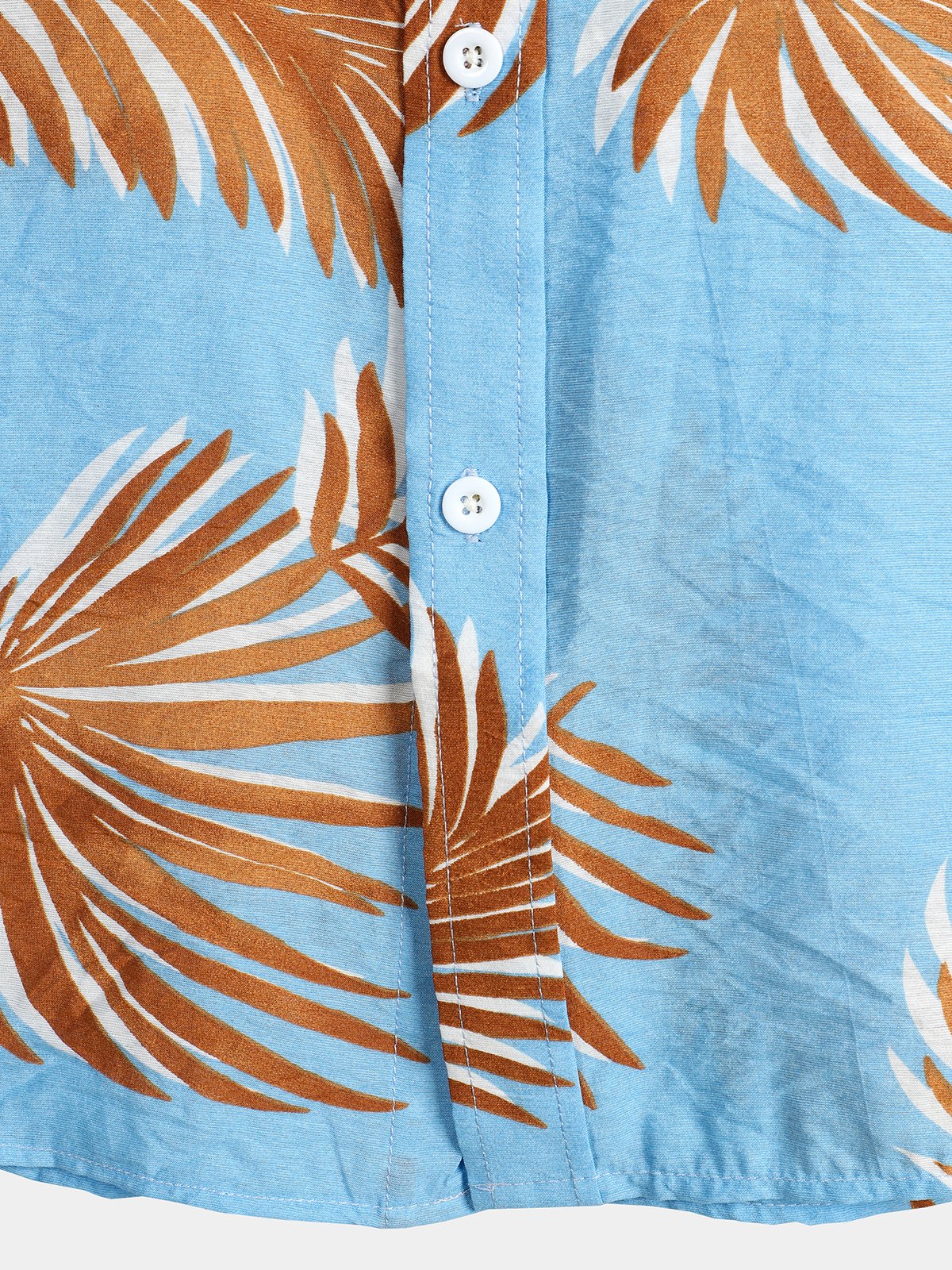Men's Floral Holiday Blue Short Sleeve Cotton Shirt