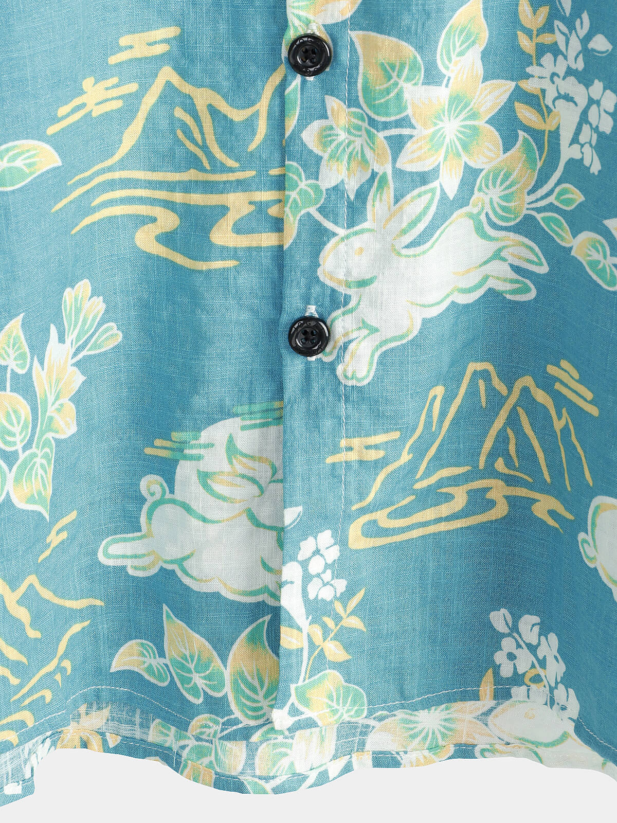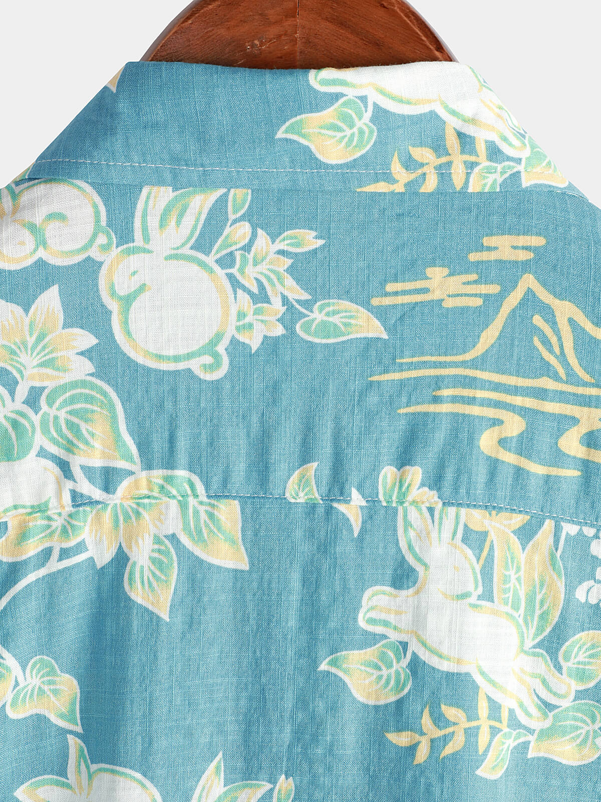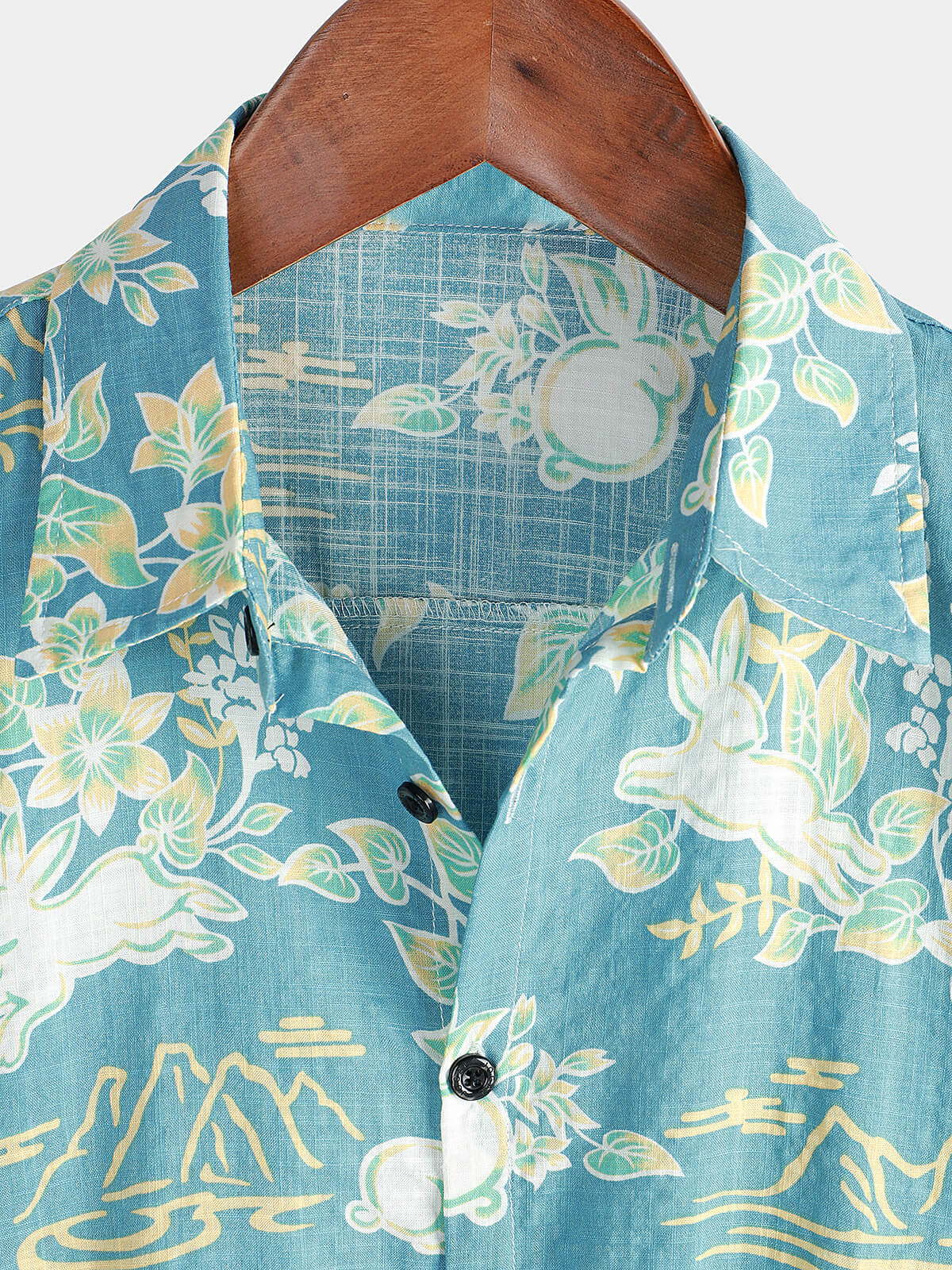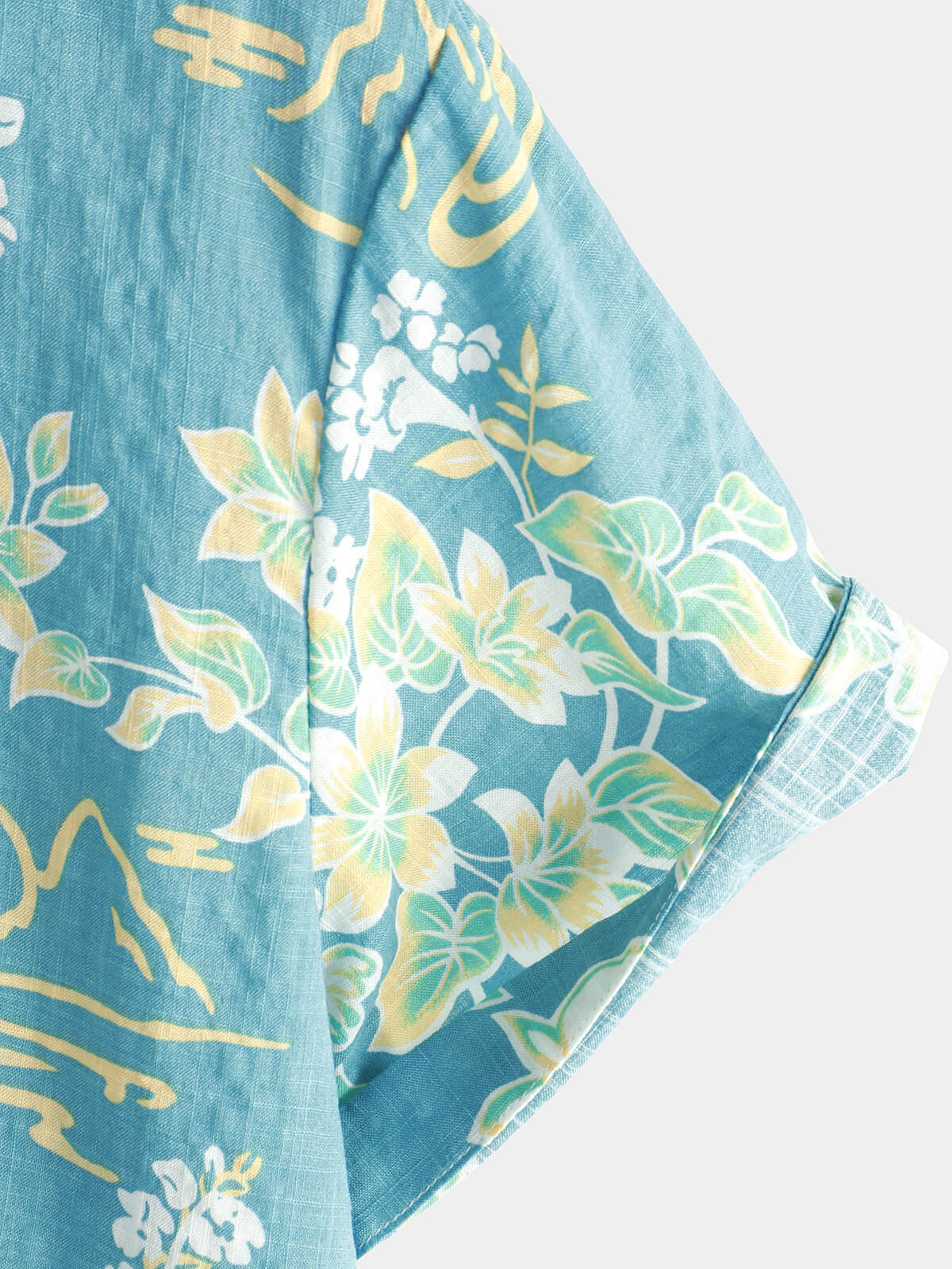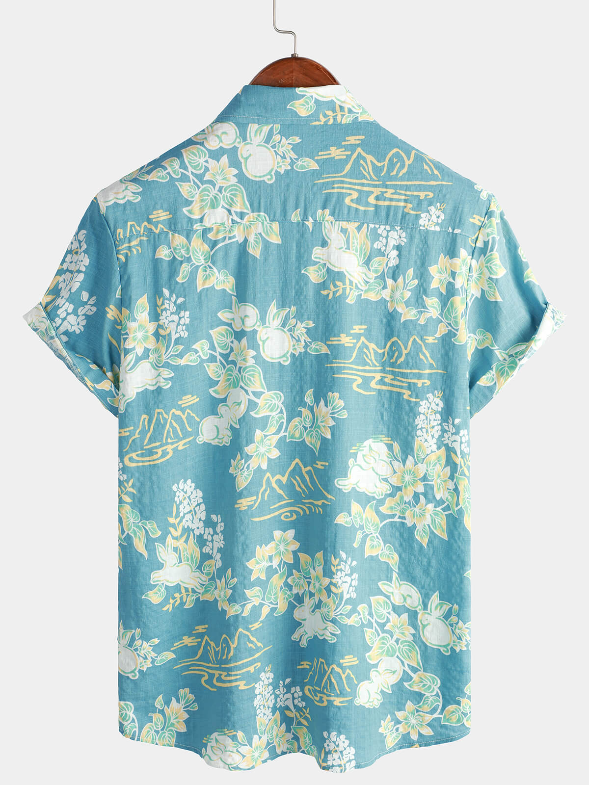 Men's Hawaiian Tropical Floral Print Beach Summer Short Sleeve Button Shirt