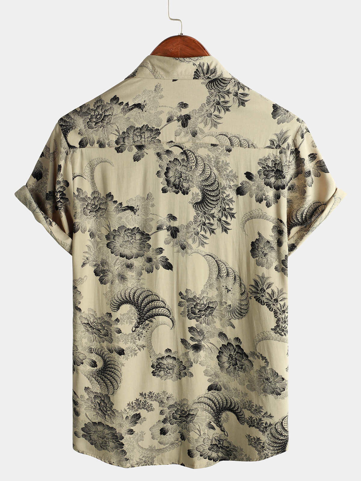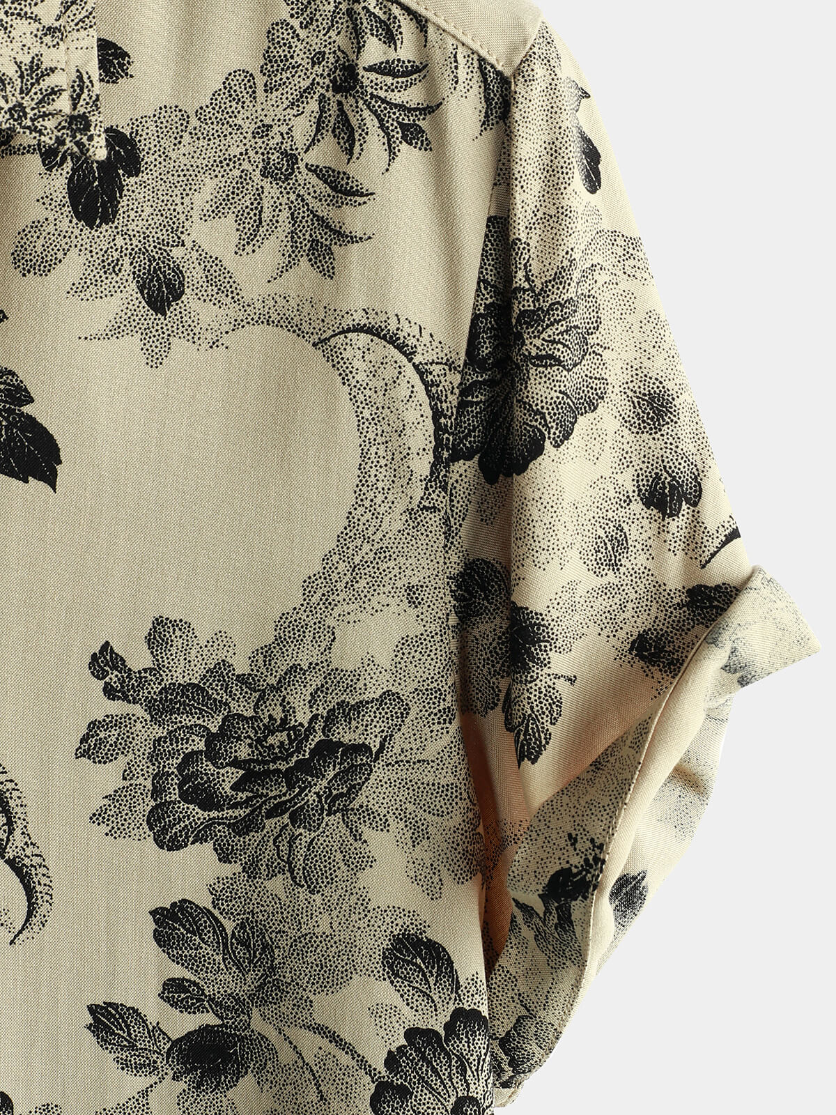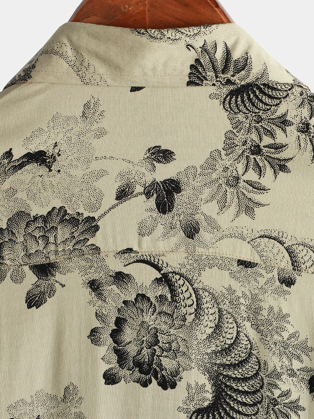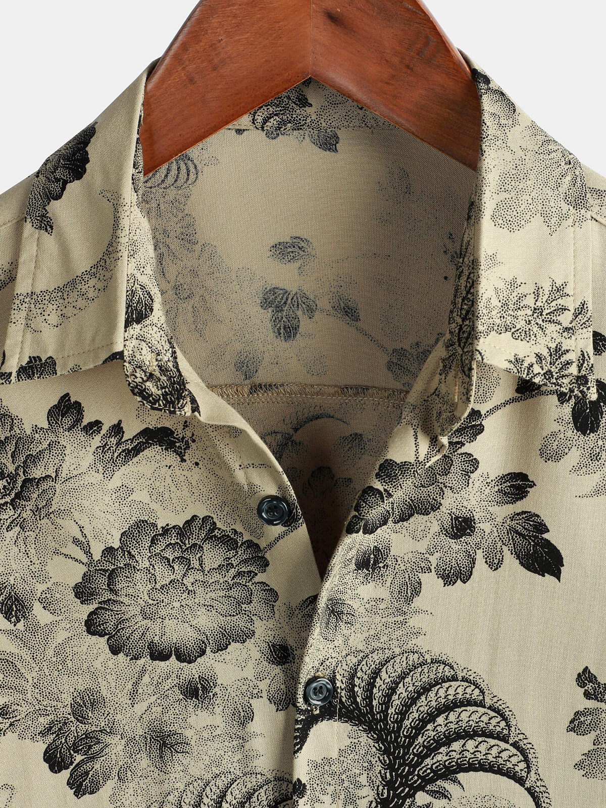 Men's Holiday Floral Print Short Sleeve Hawaiian Shirt