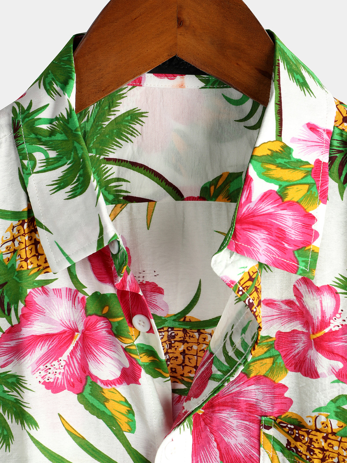 Men's Holiday Floral Short Sleeve Cotton Shirt