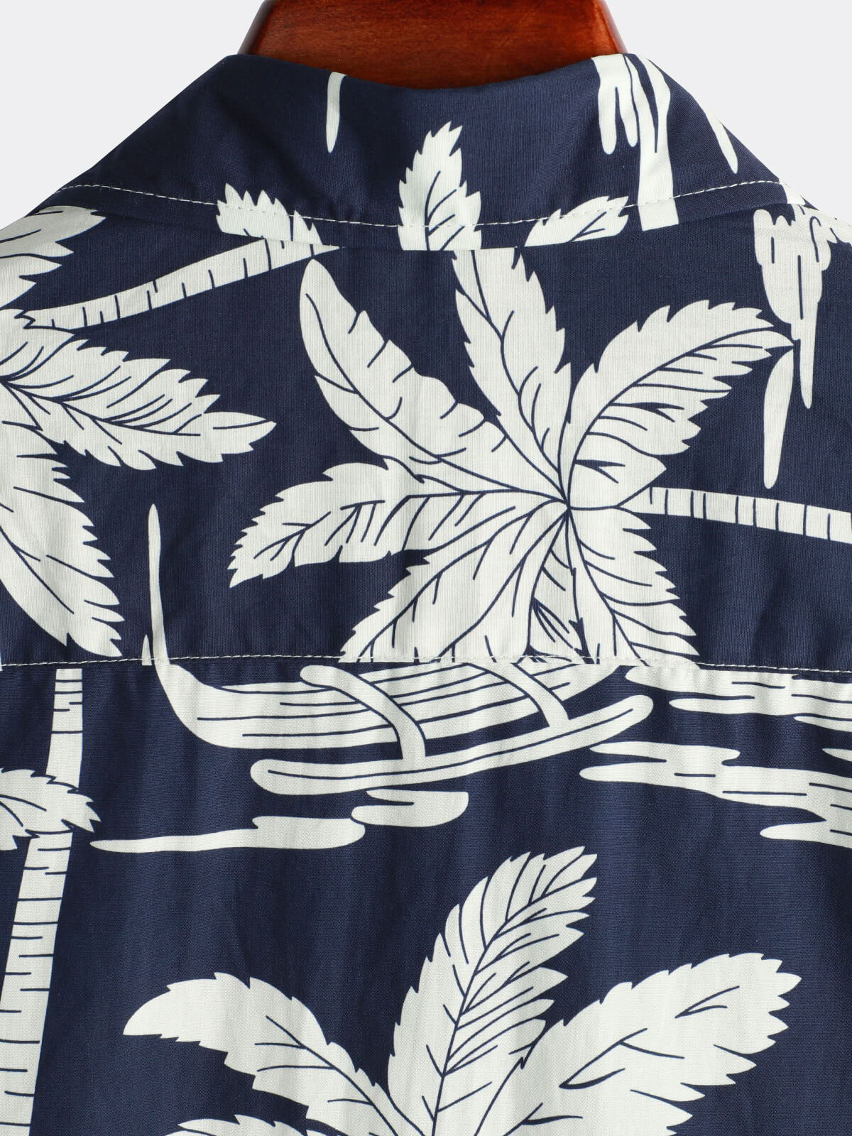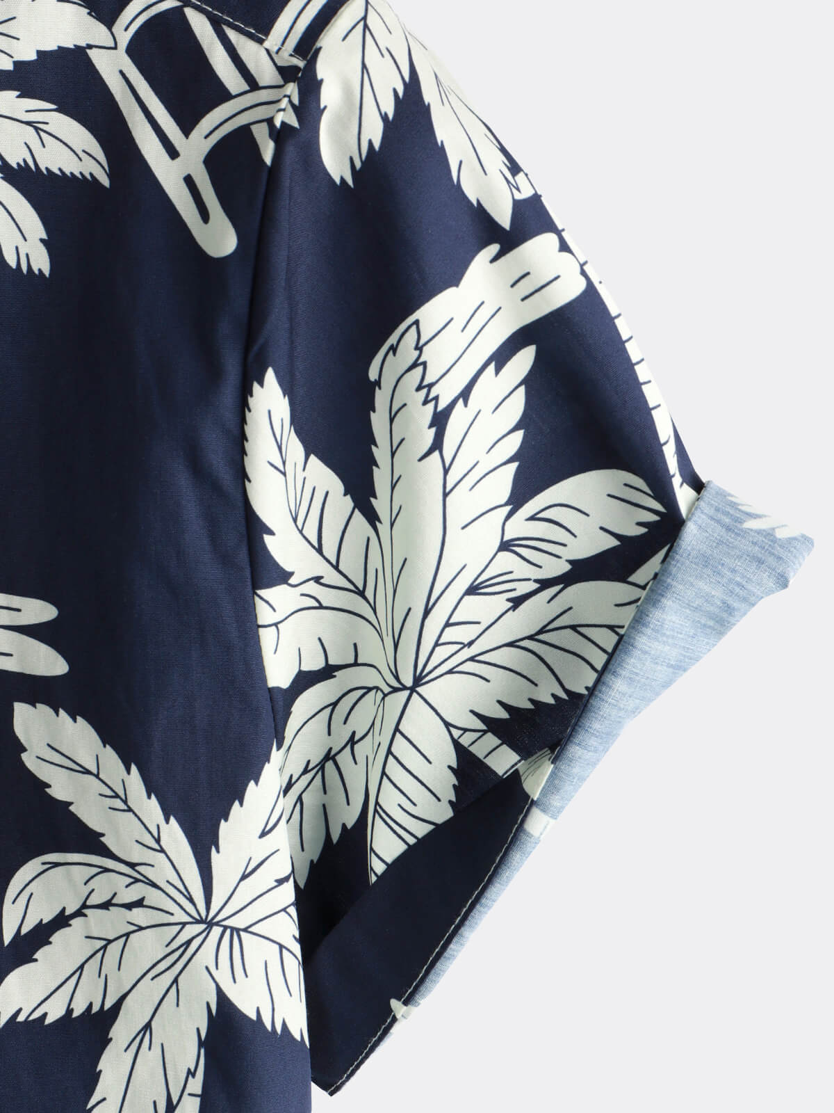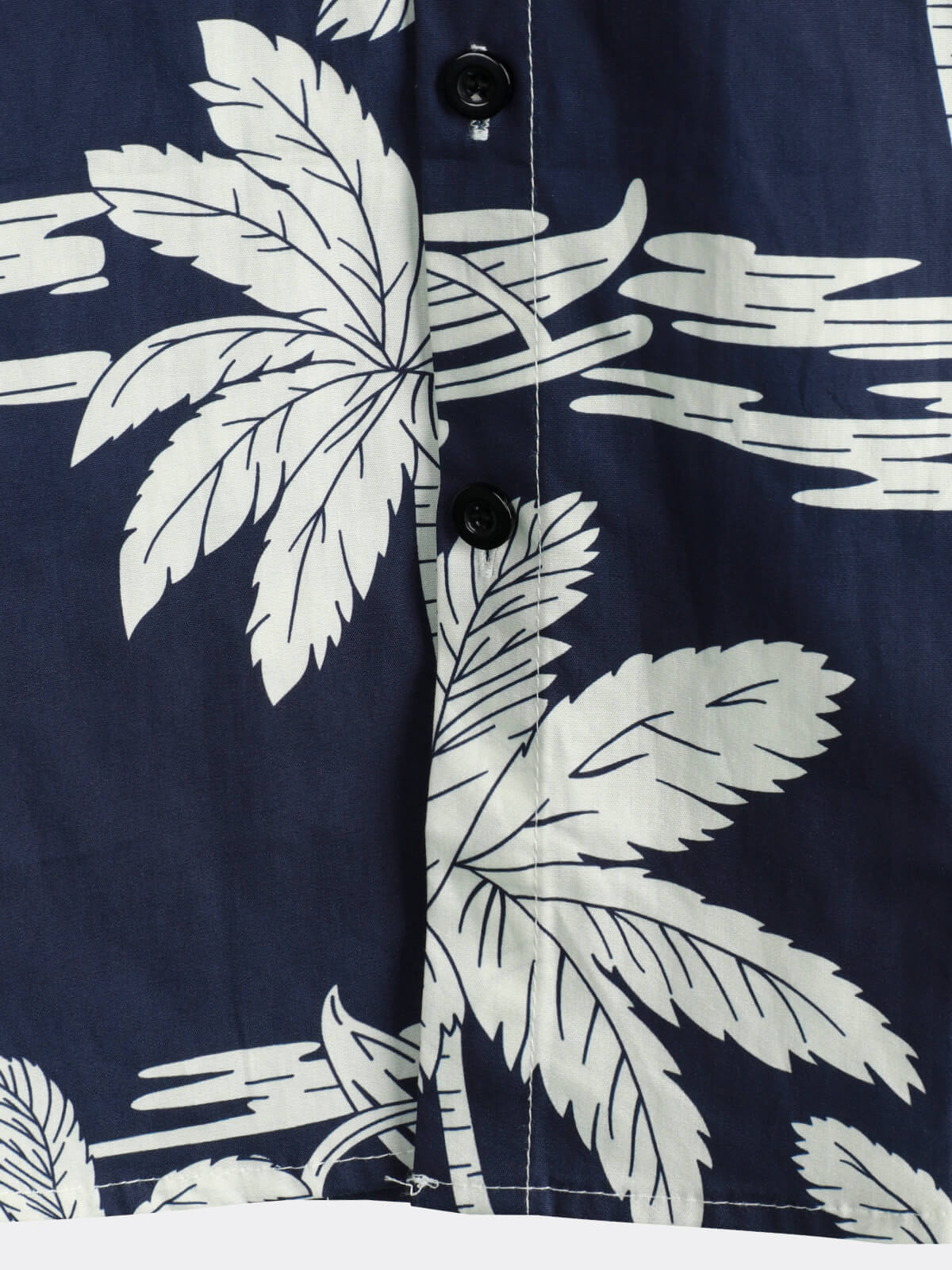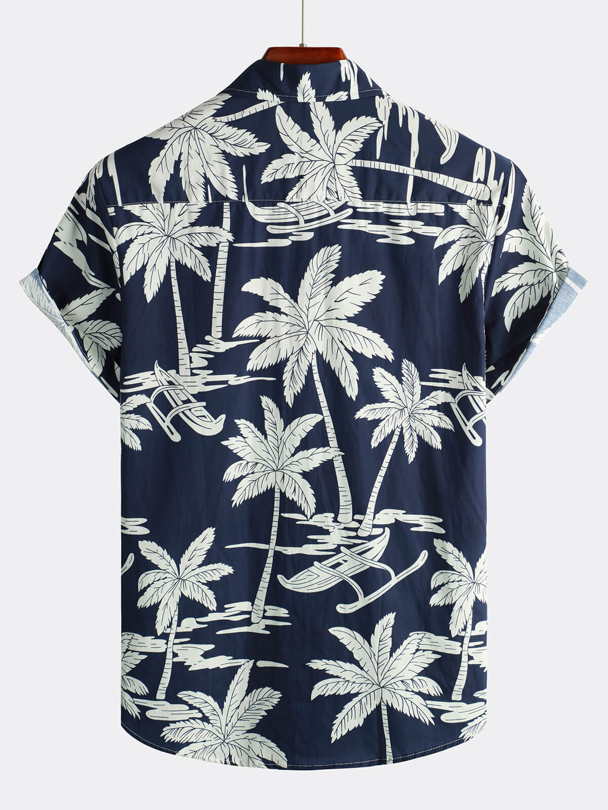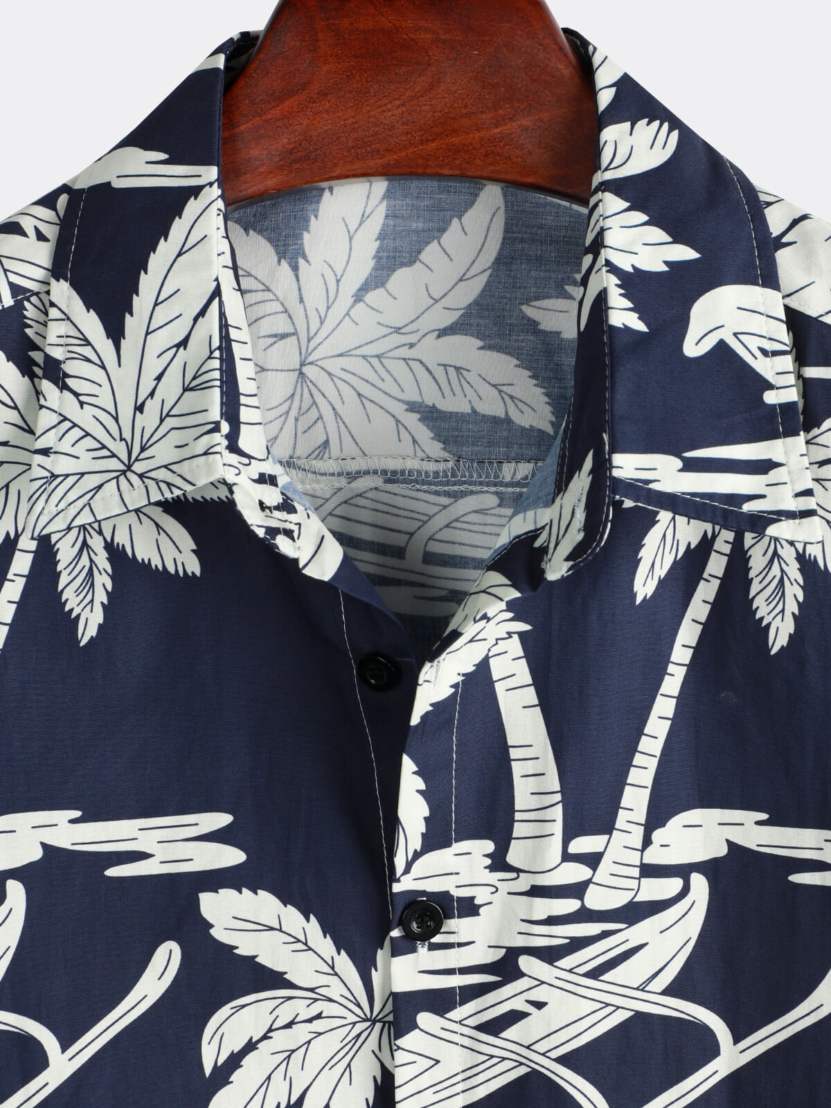 Men's Palm Tree Print Cotton Navy Blue Button Up Holiday Short Sleeve Hawaiian Shirt
