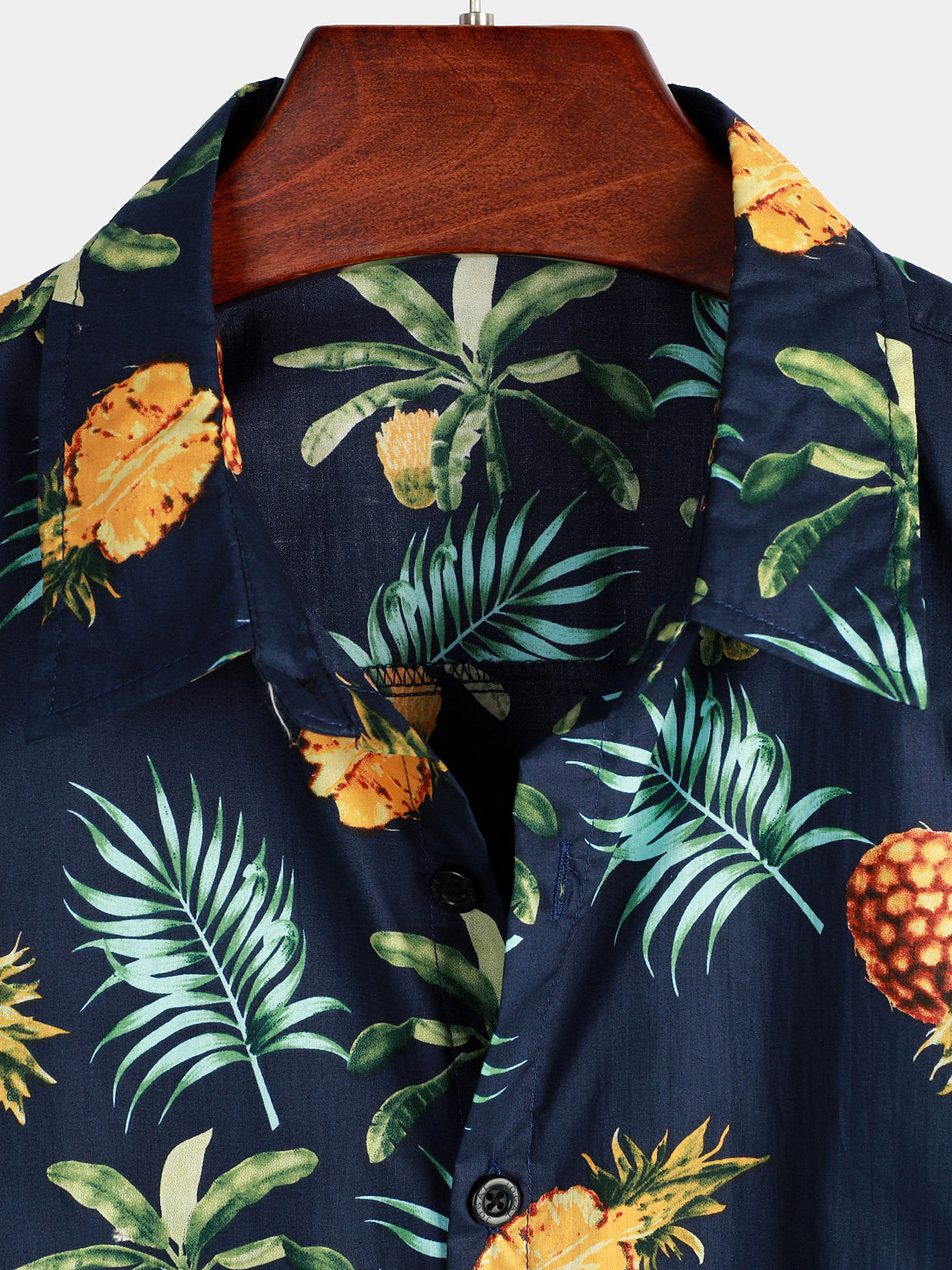 Men's Pineapple Print Short Sleeve Hawaiian Shirt