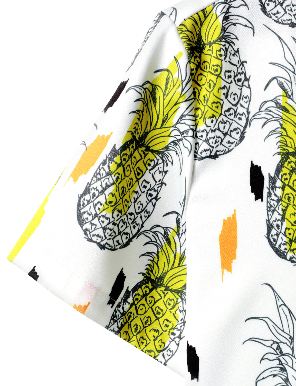 Men's Pineapple Tropical Fruit Print Pocket Hawaiian Button Up Summer Vacation Beach Aloha Short Sleeve Shirt