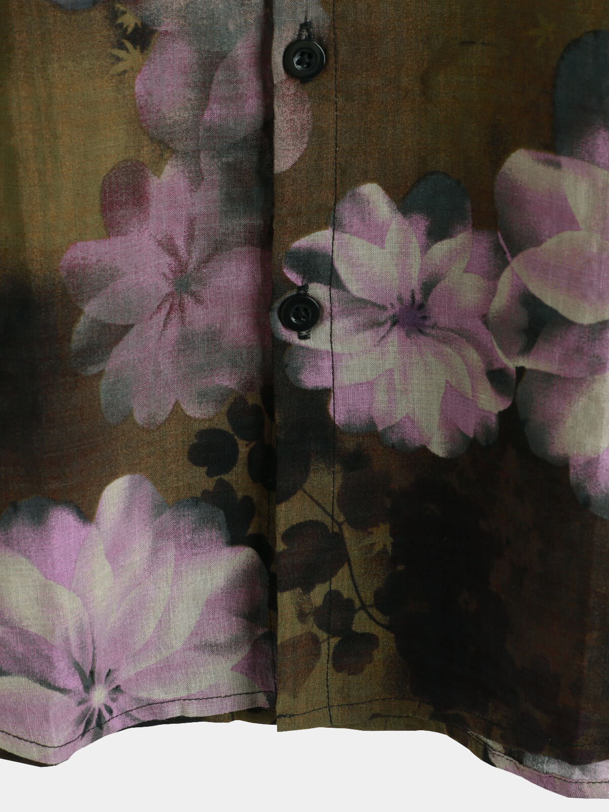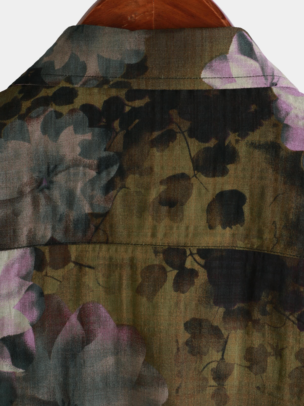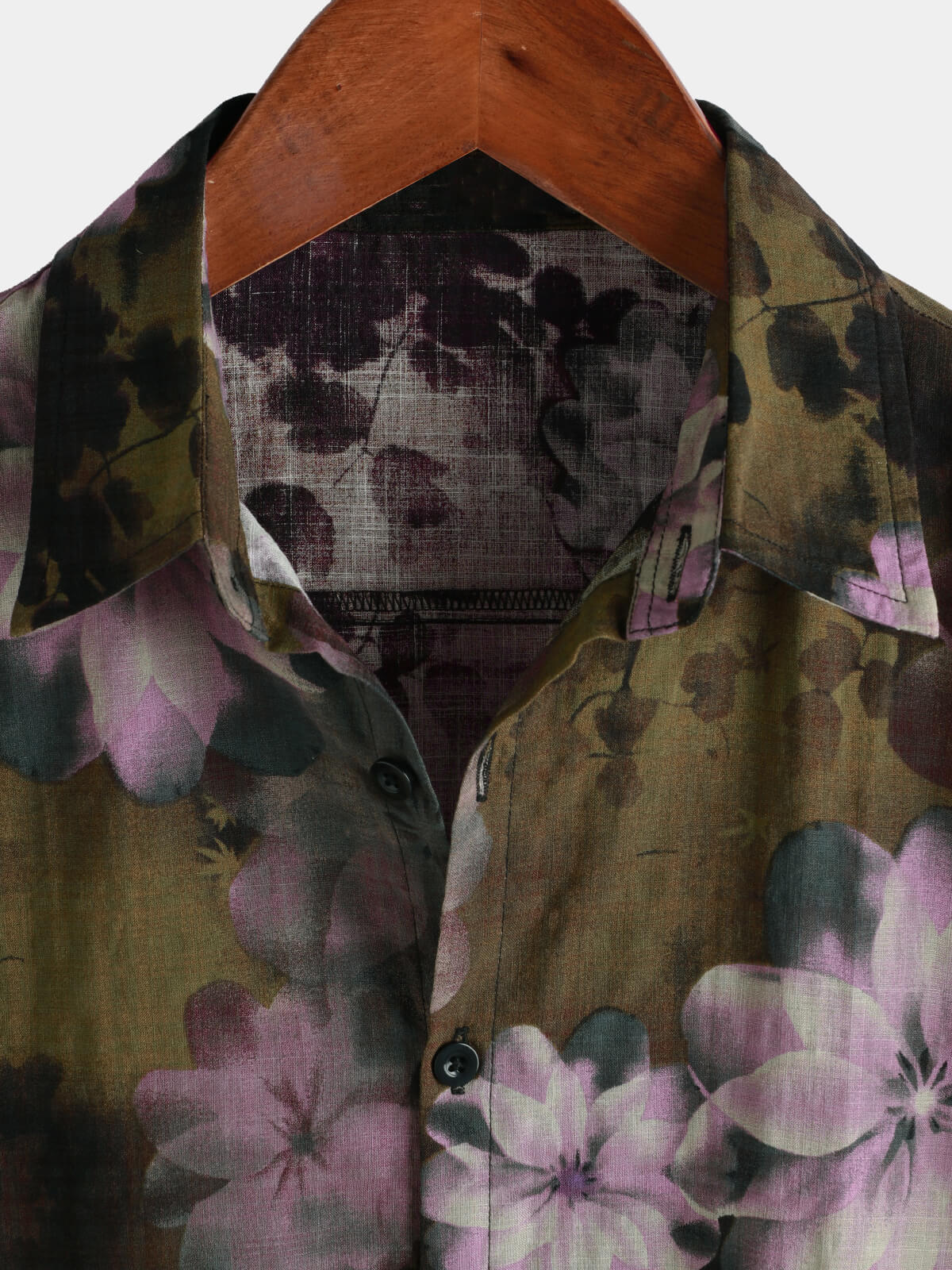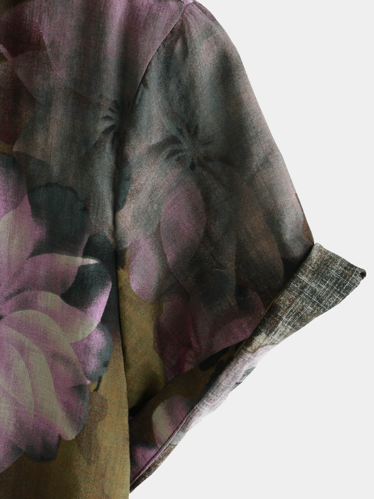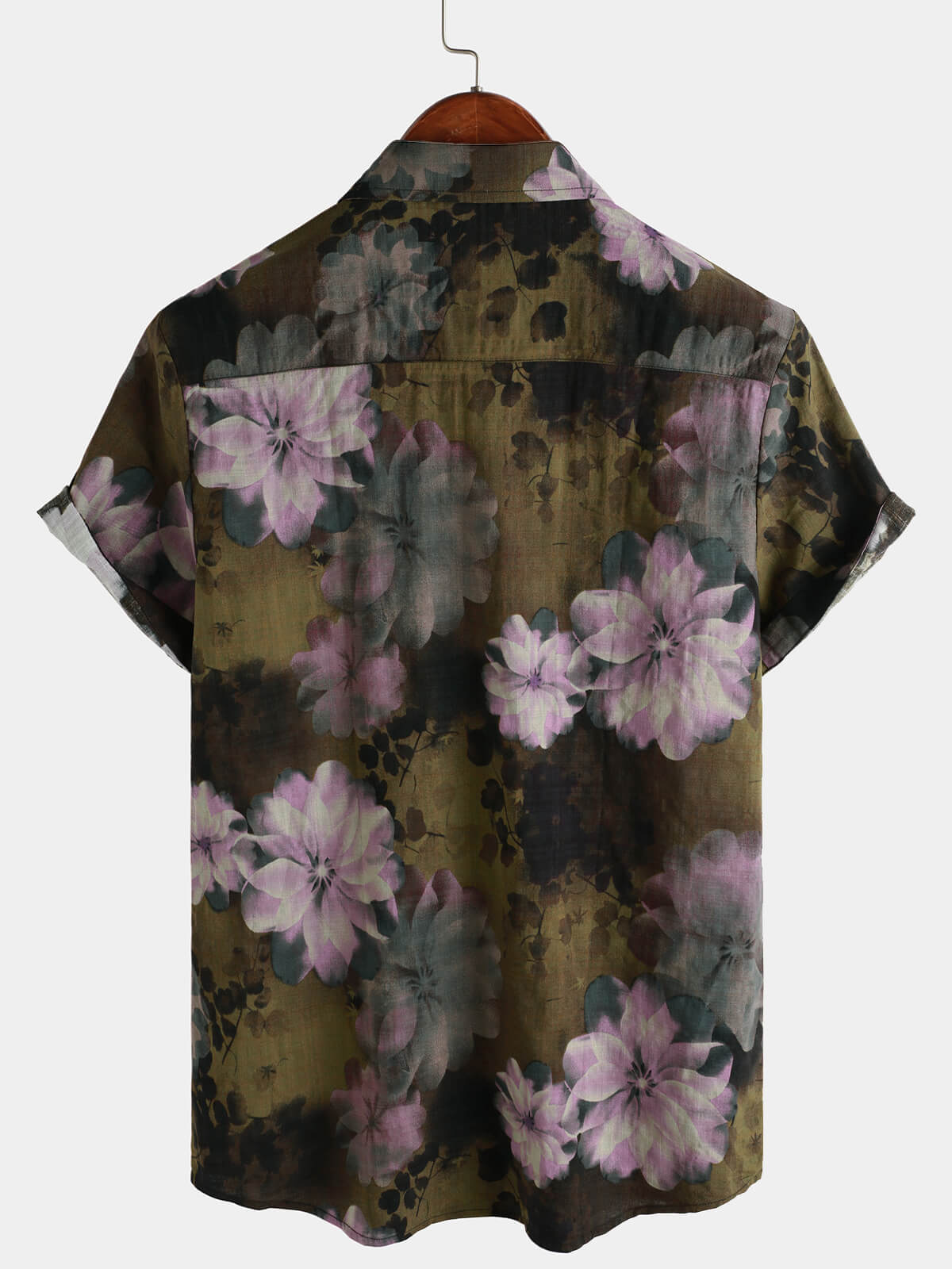 Men's Retro Pink Floral Holiday Short Sleeve Button Up Shirt
