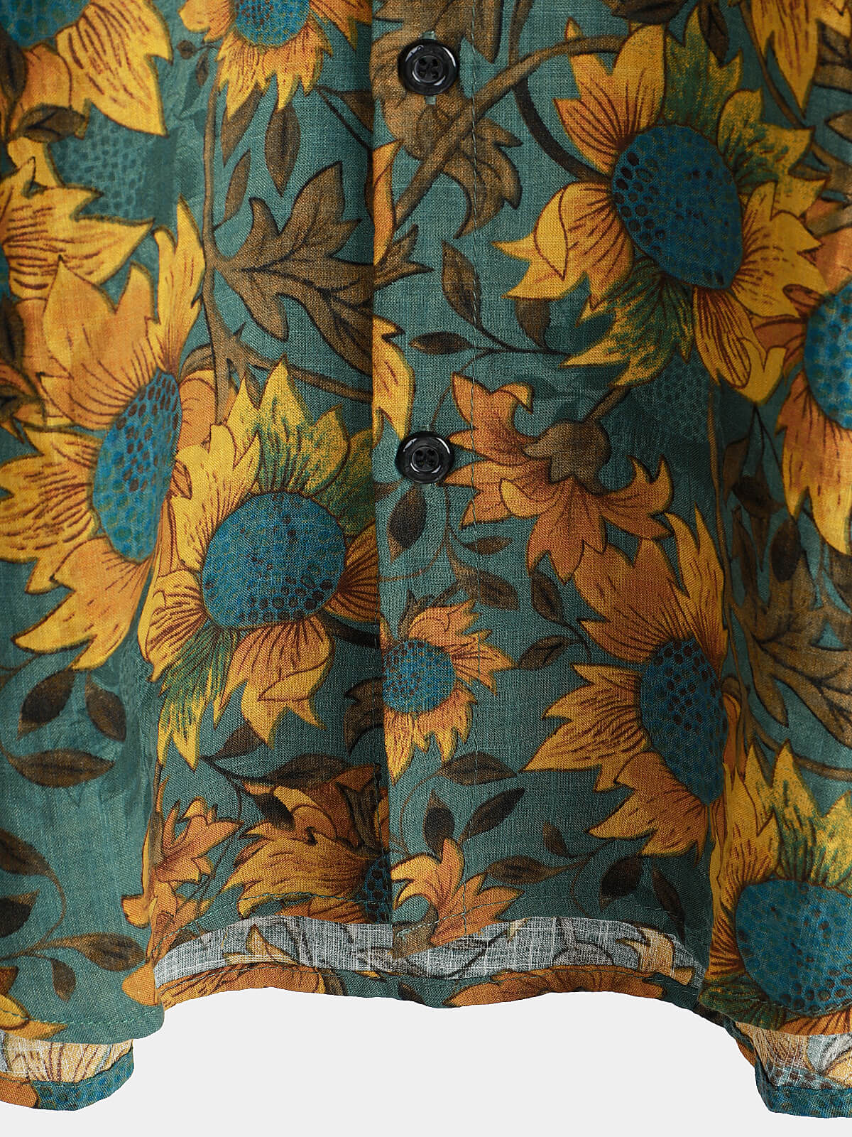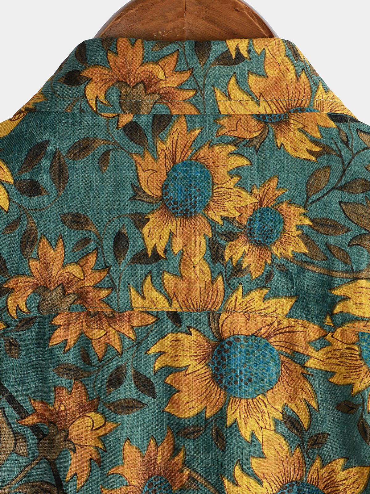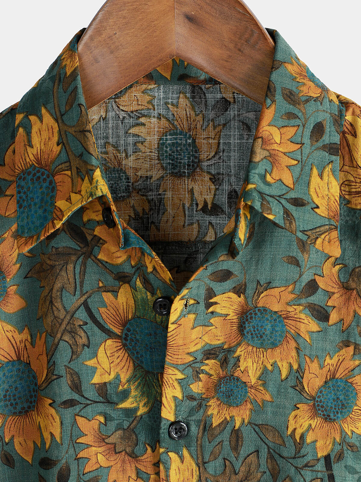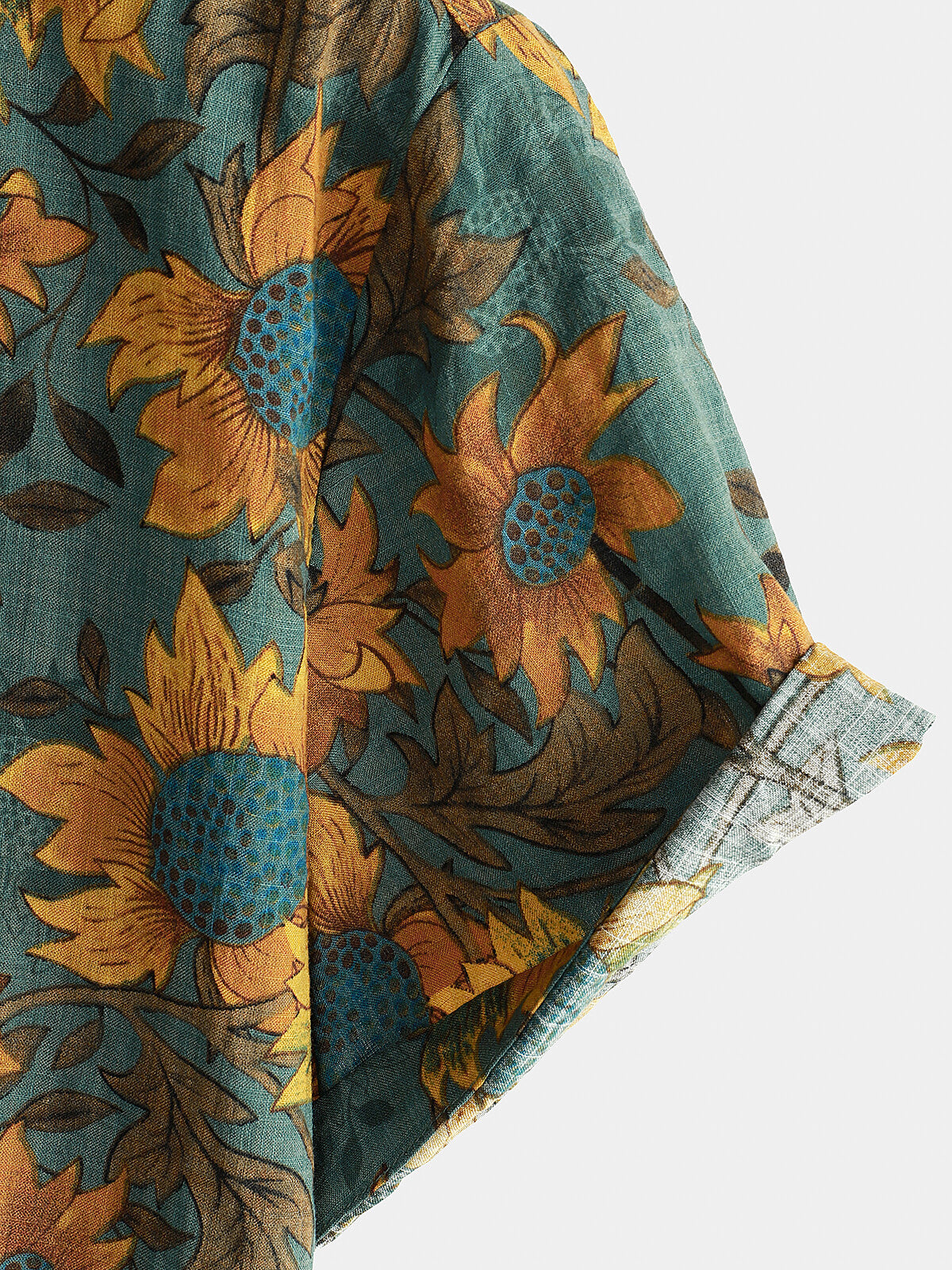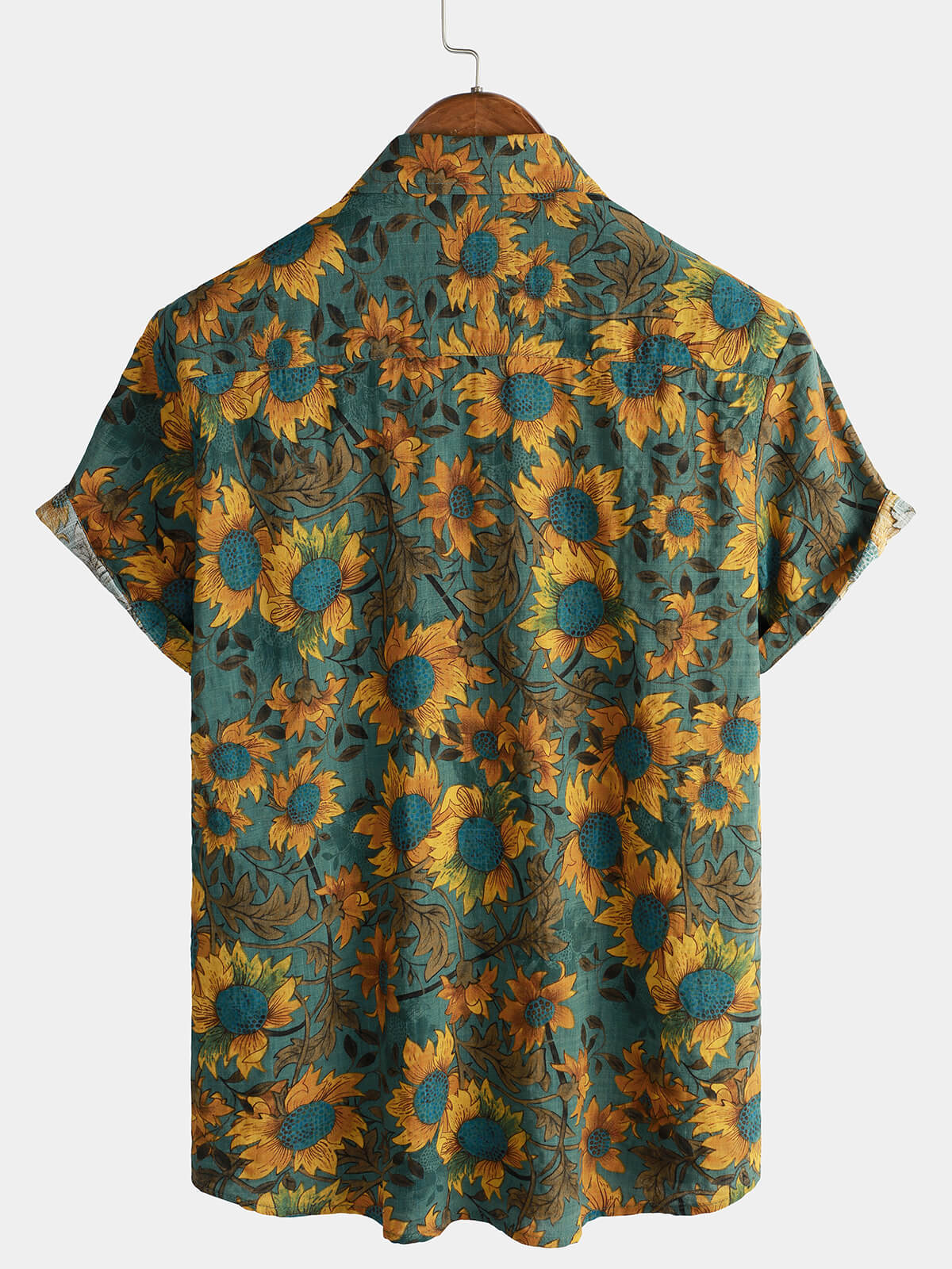 Men's Retro Sunflower Breathable Cotton Short Sleeve Summer Shirt