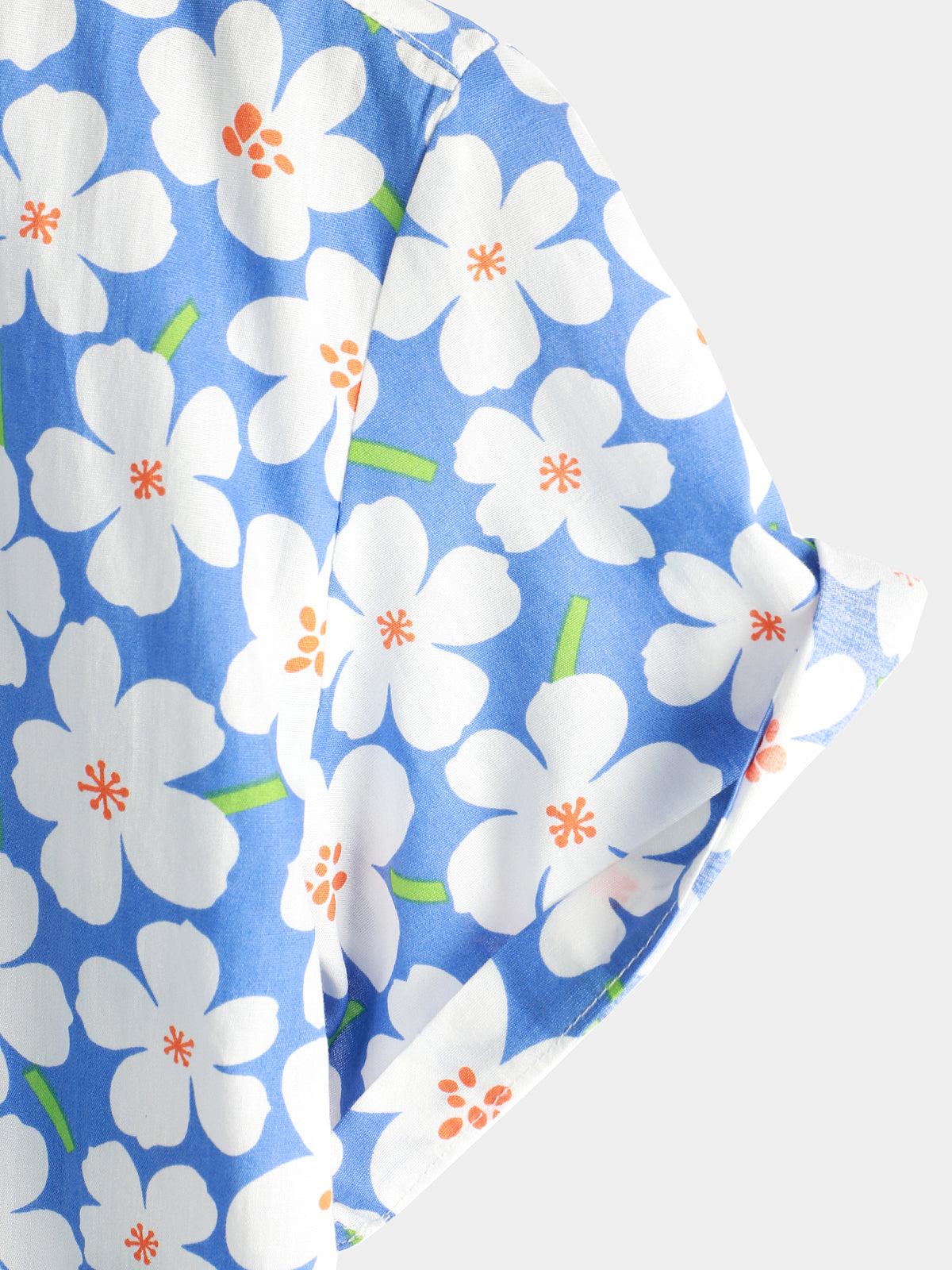 Men's Summer Floral Print Holiday Flower Resort Casual Lapel Light Blue Short Sleeve Shirt