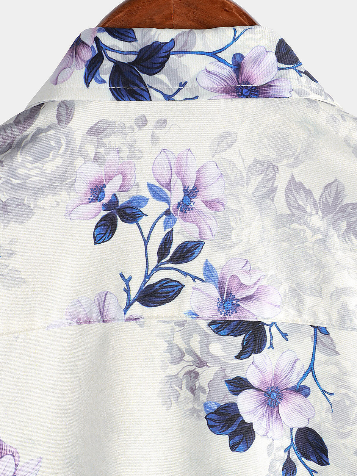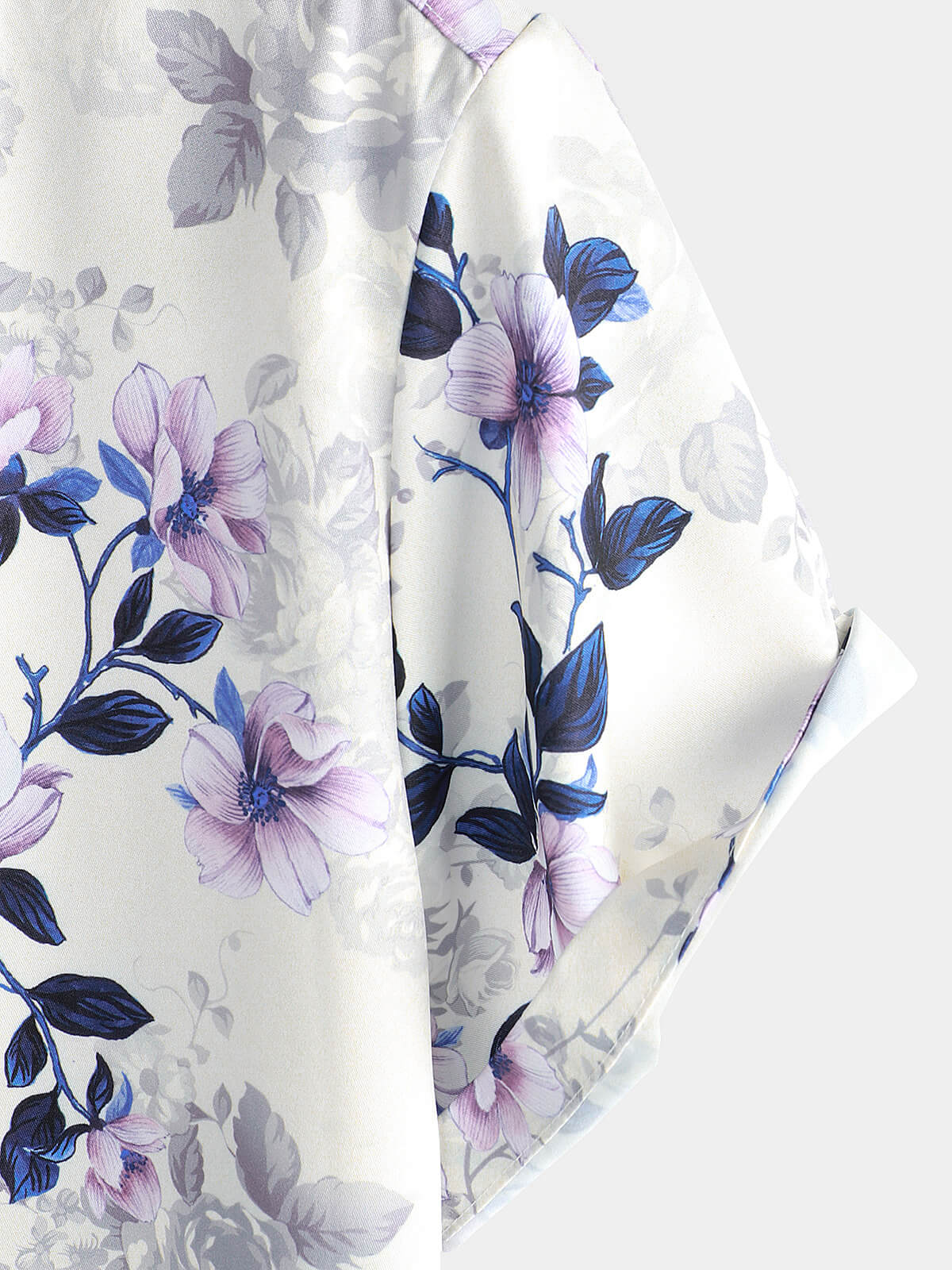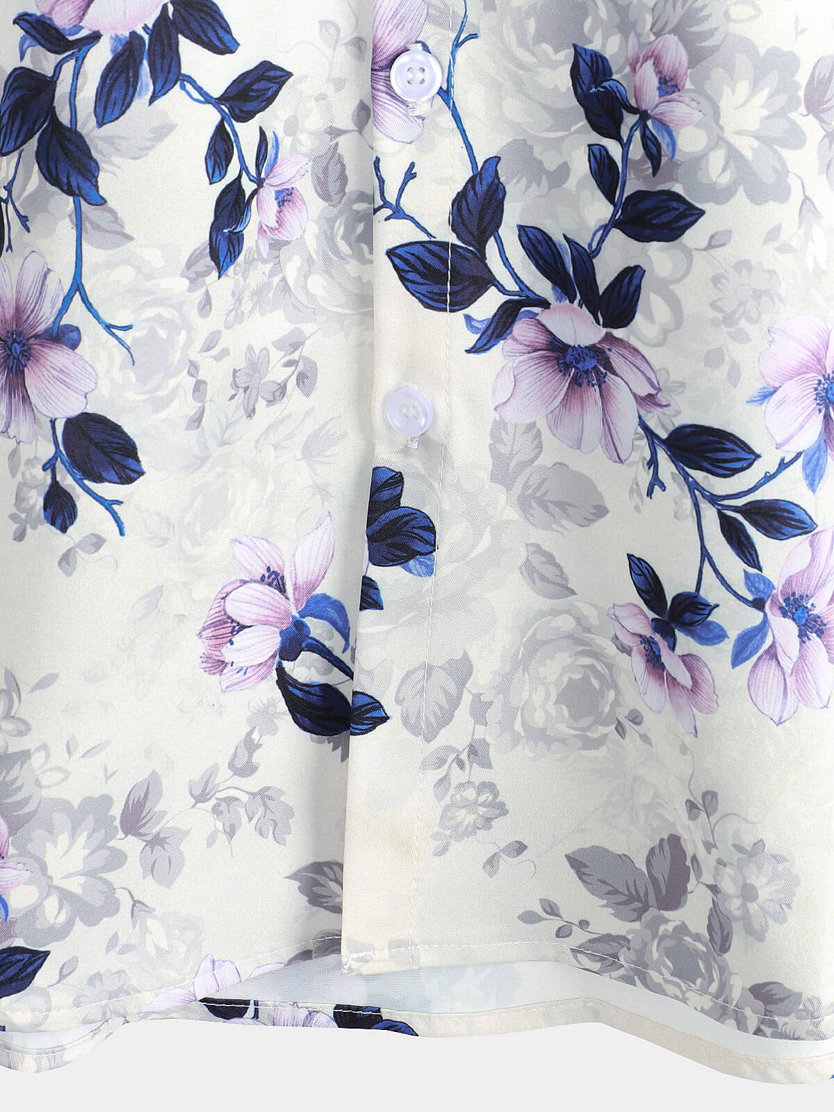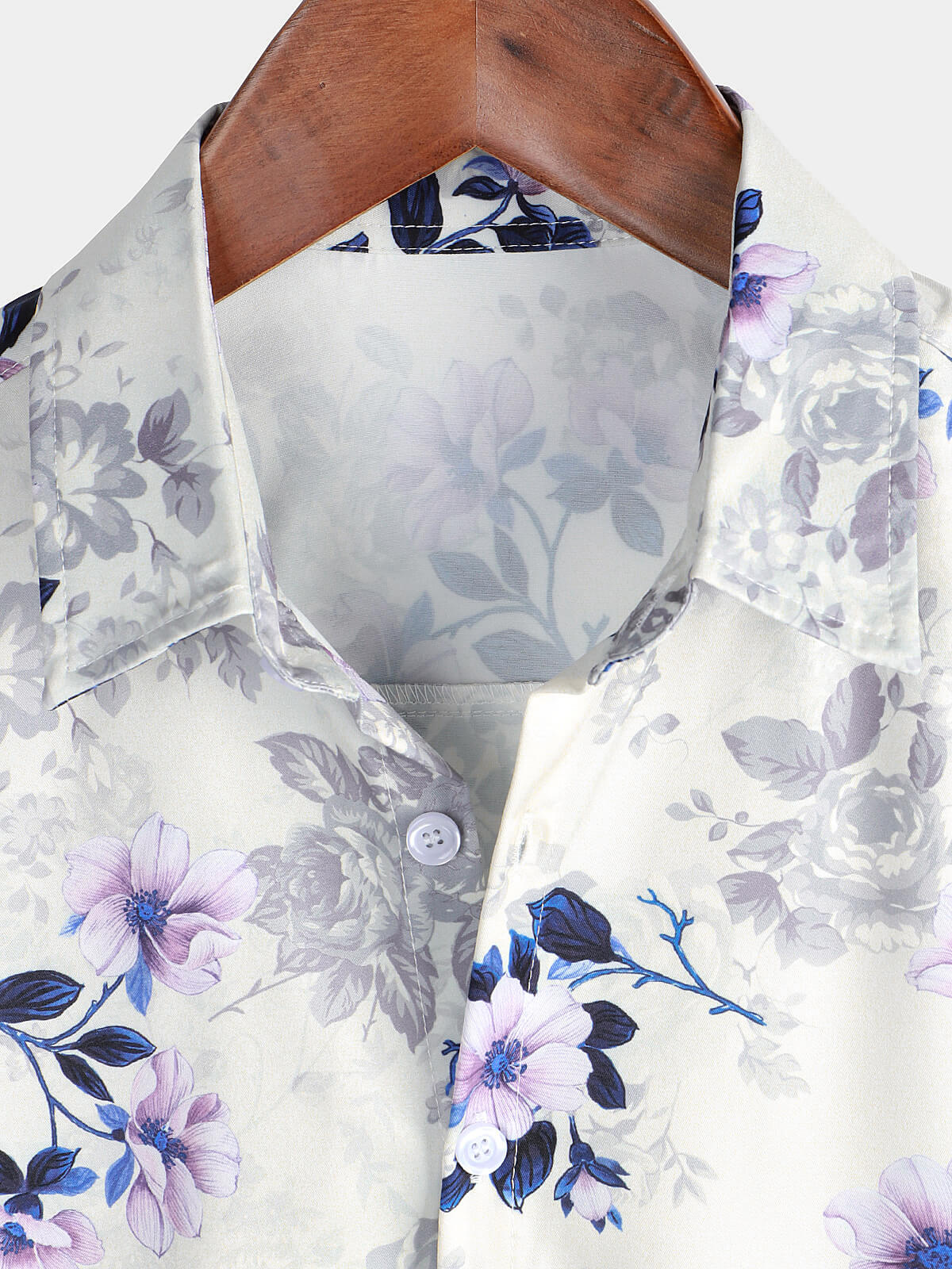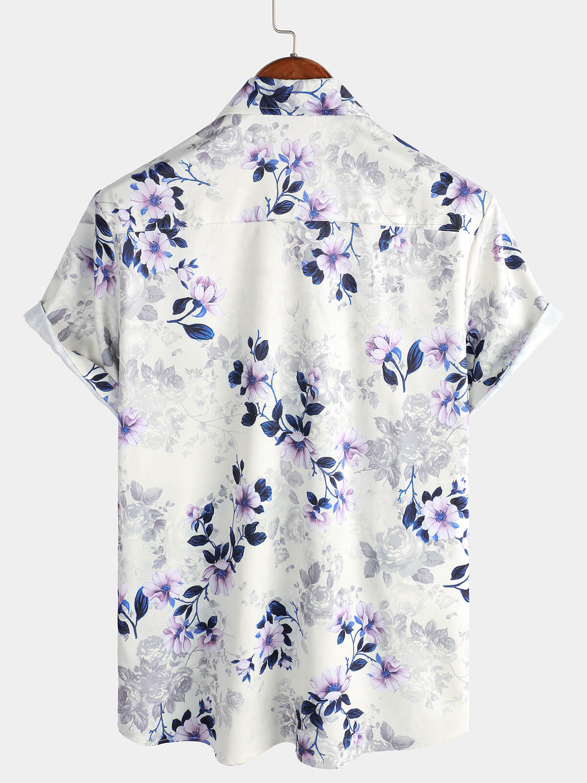 Men's Summer Short Sleeve Floral Print Casual Button Up Shirt