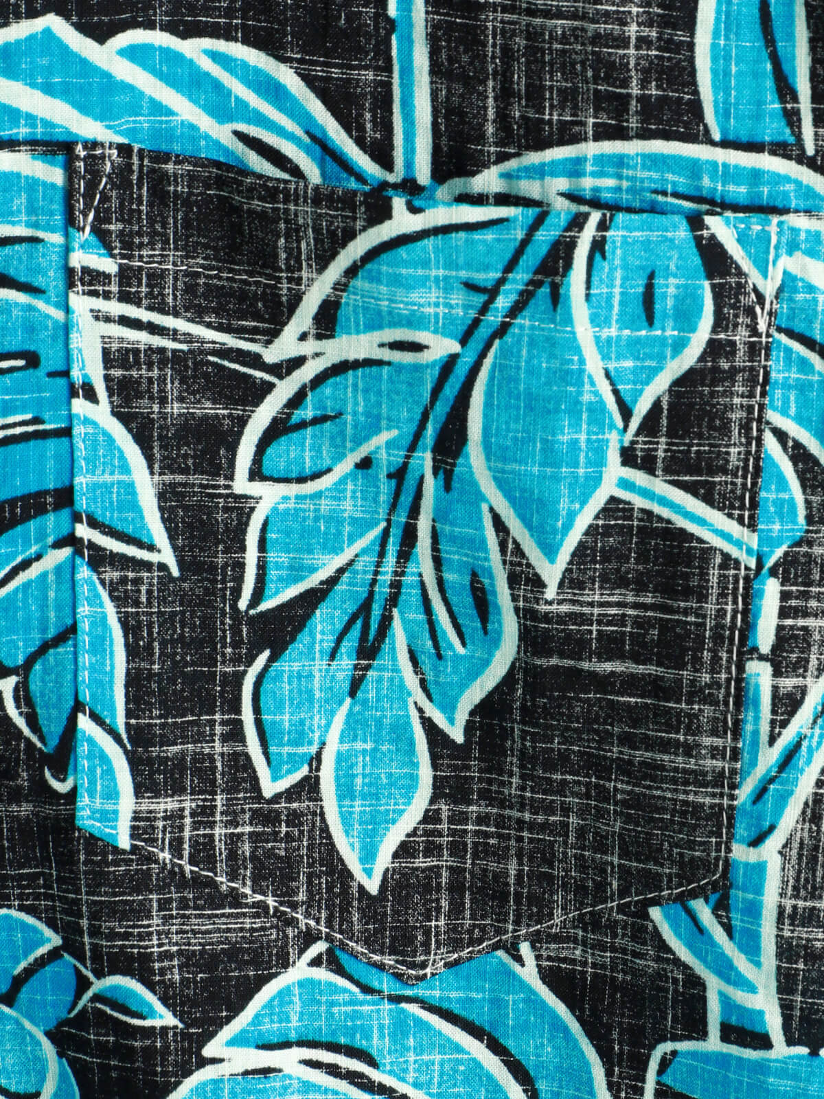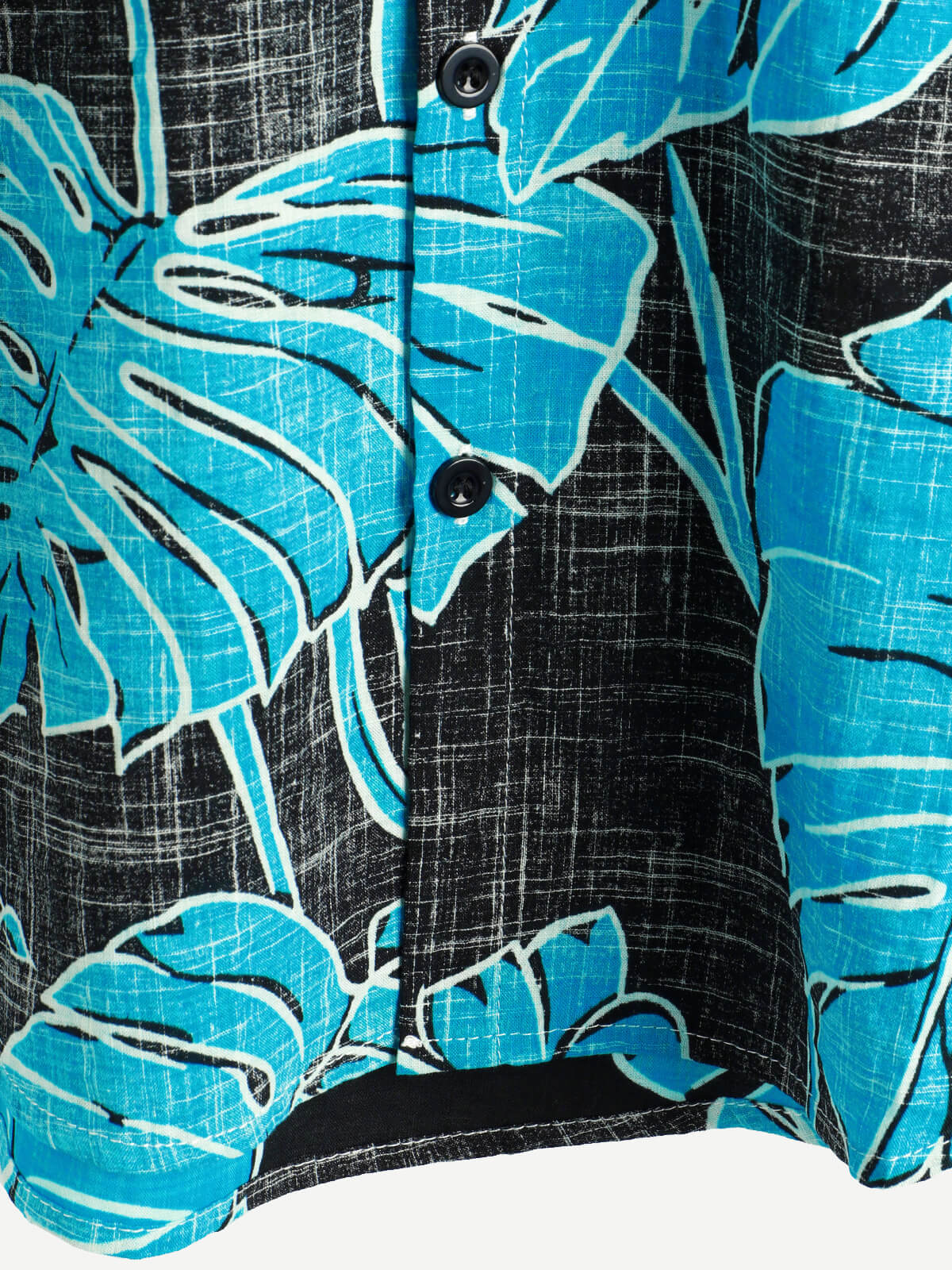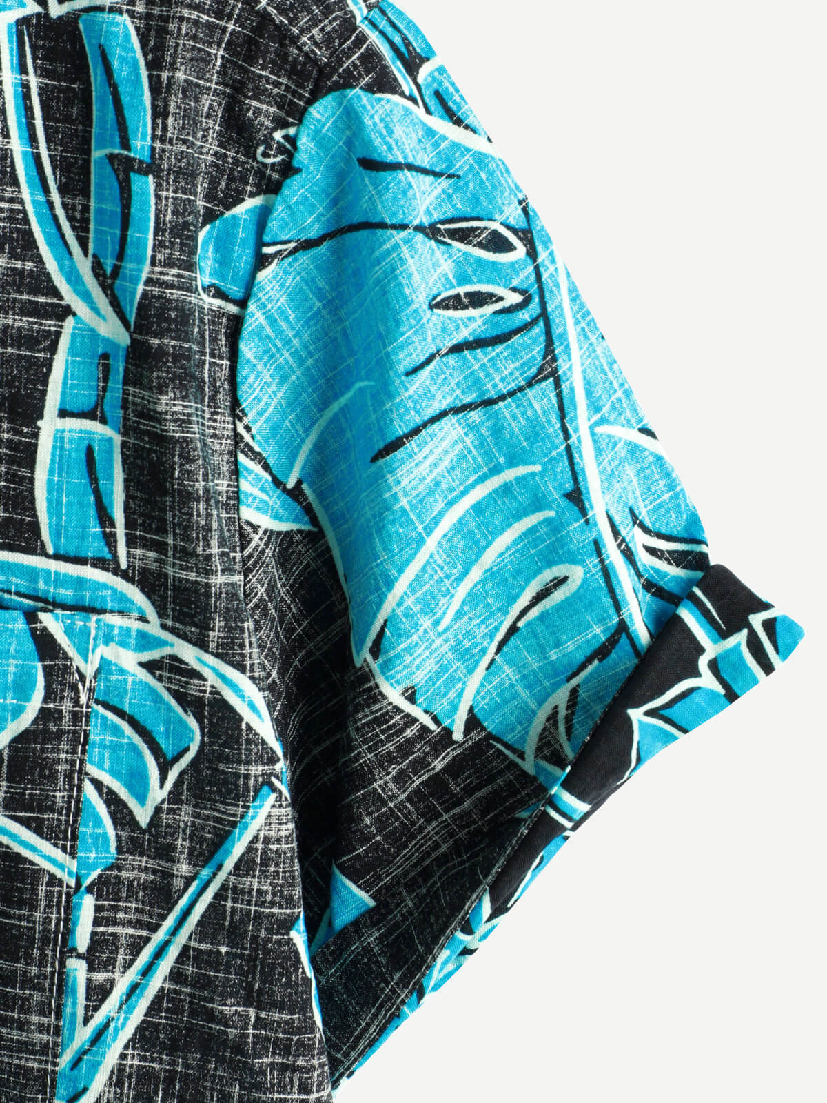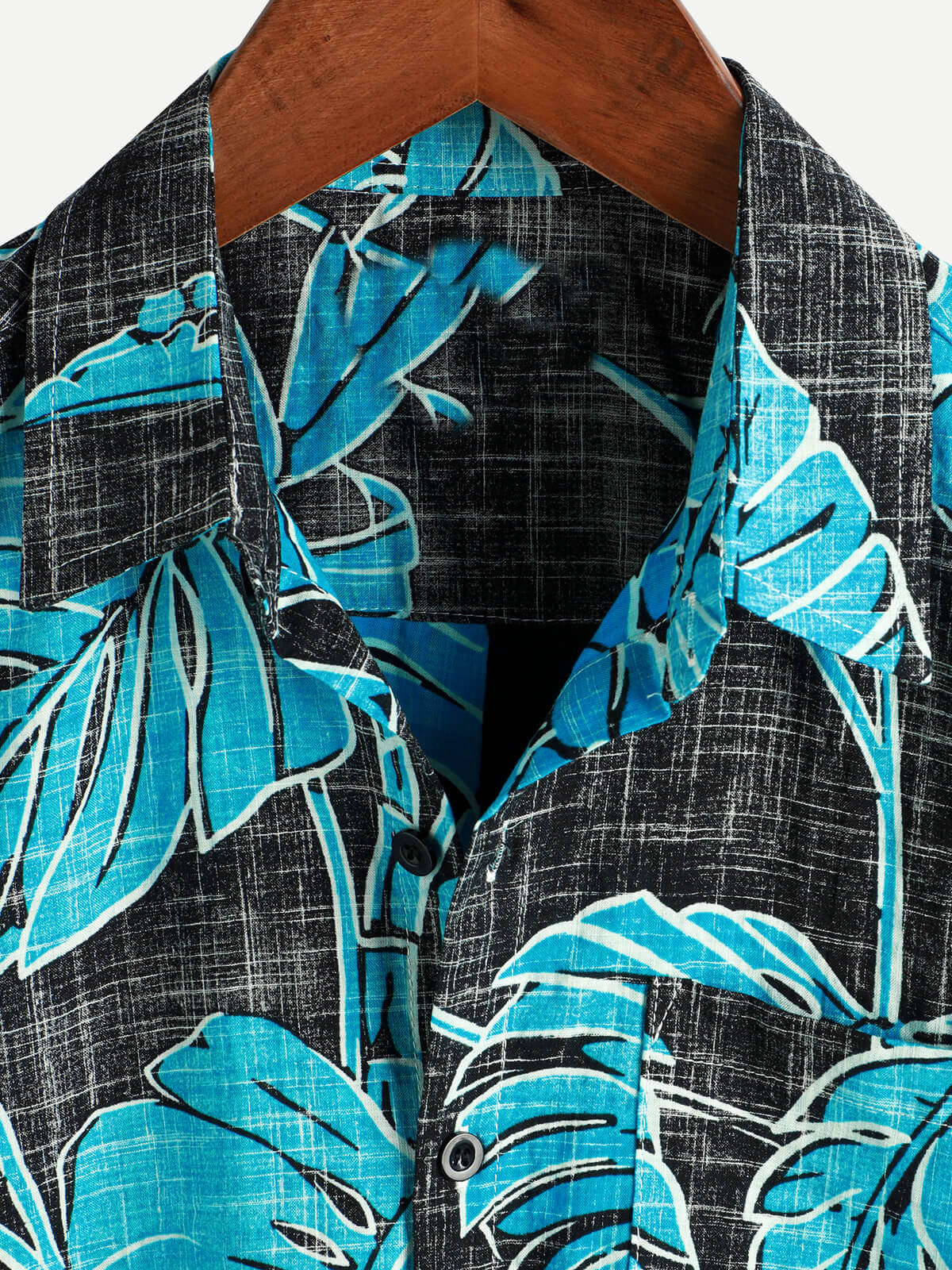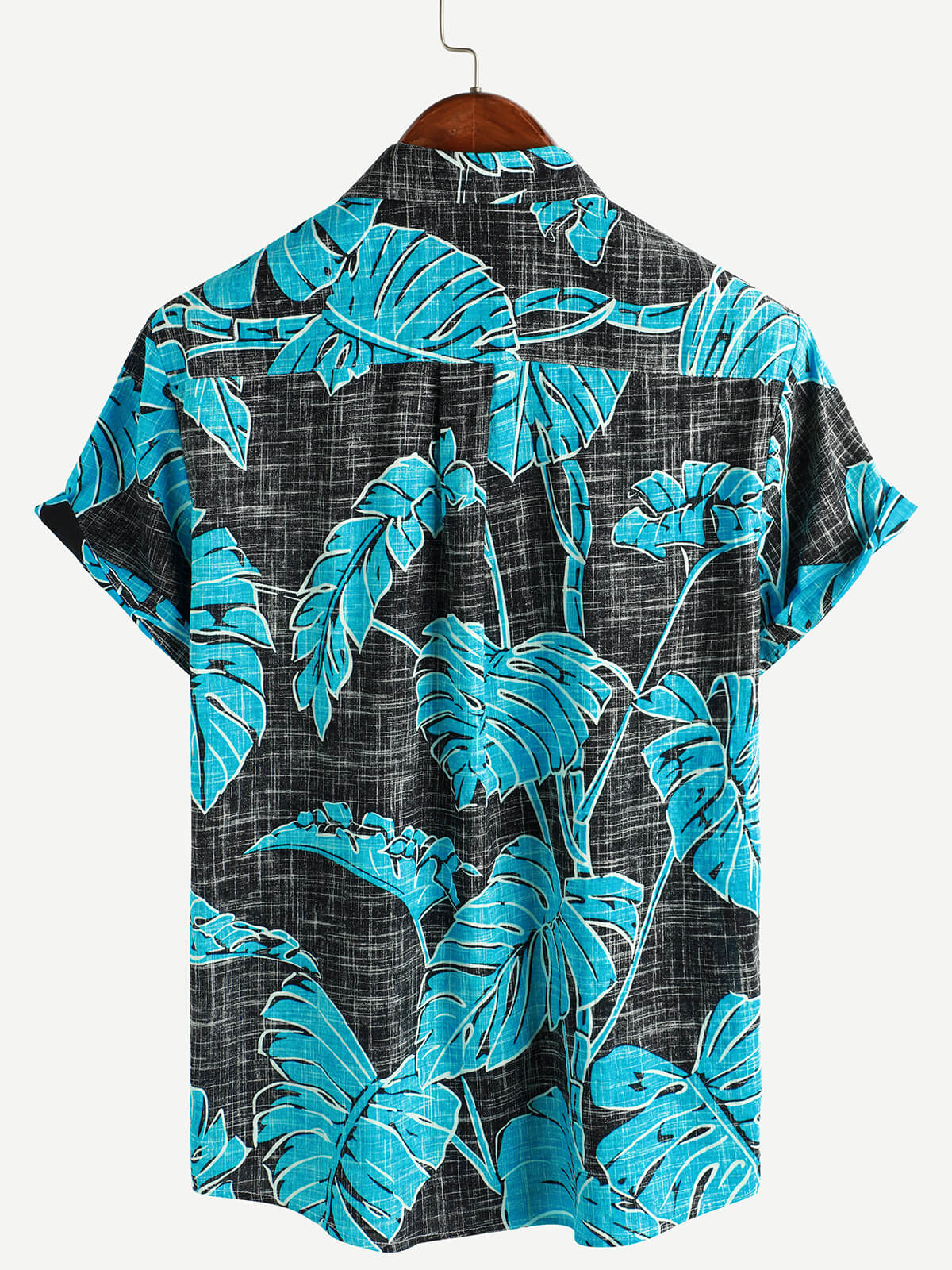 Men's Summer Tropical Print Pocket Cool Black Hawaiian Beach Short Sleeve Button Shirt