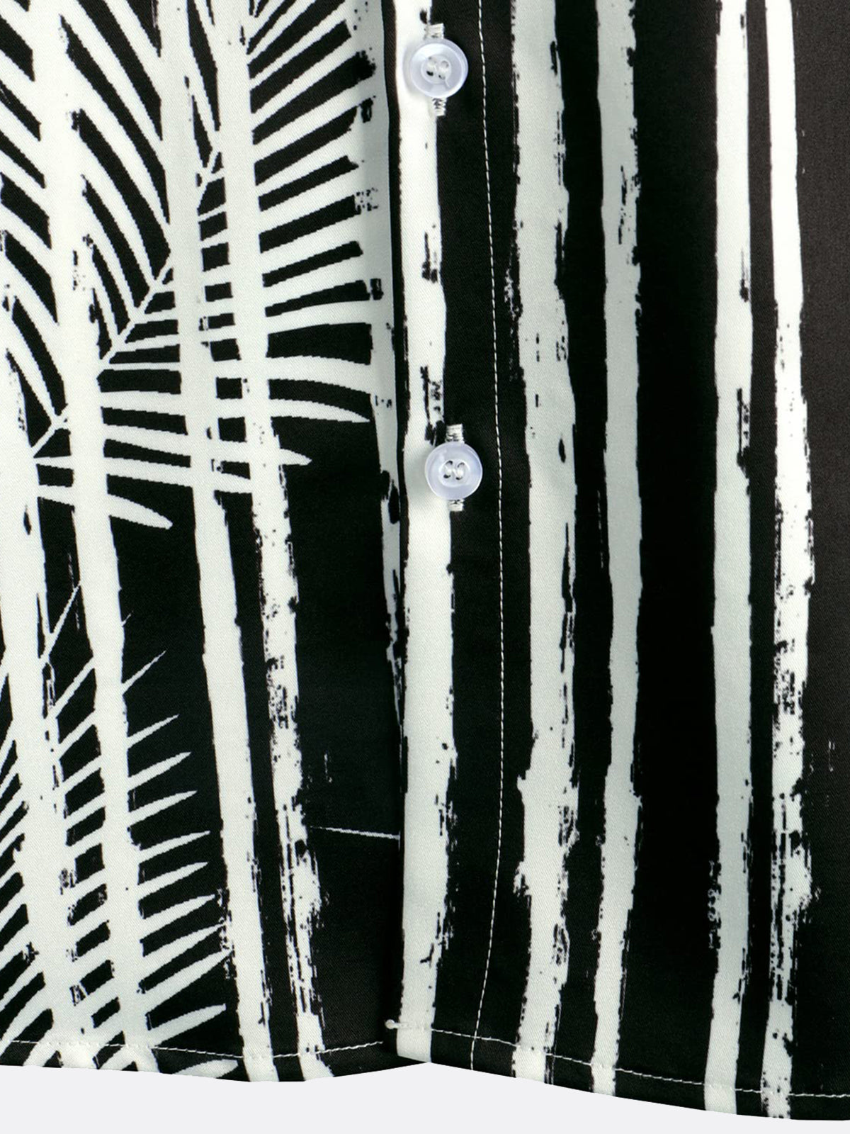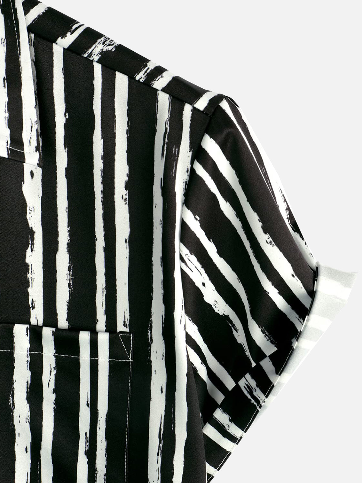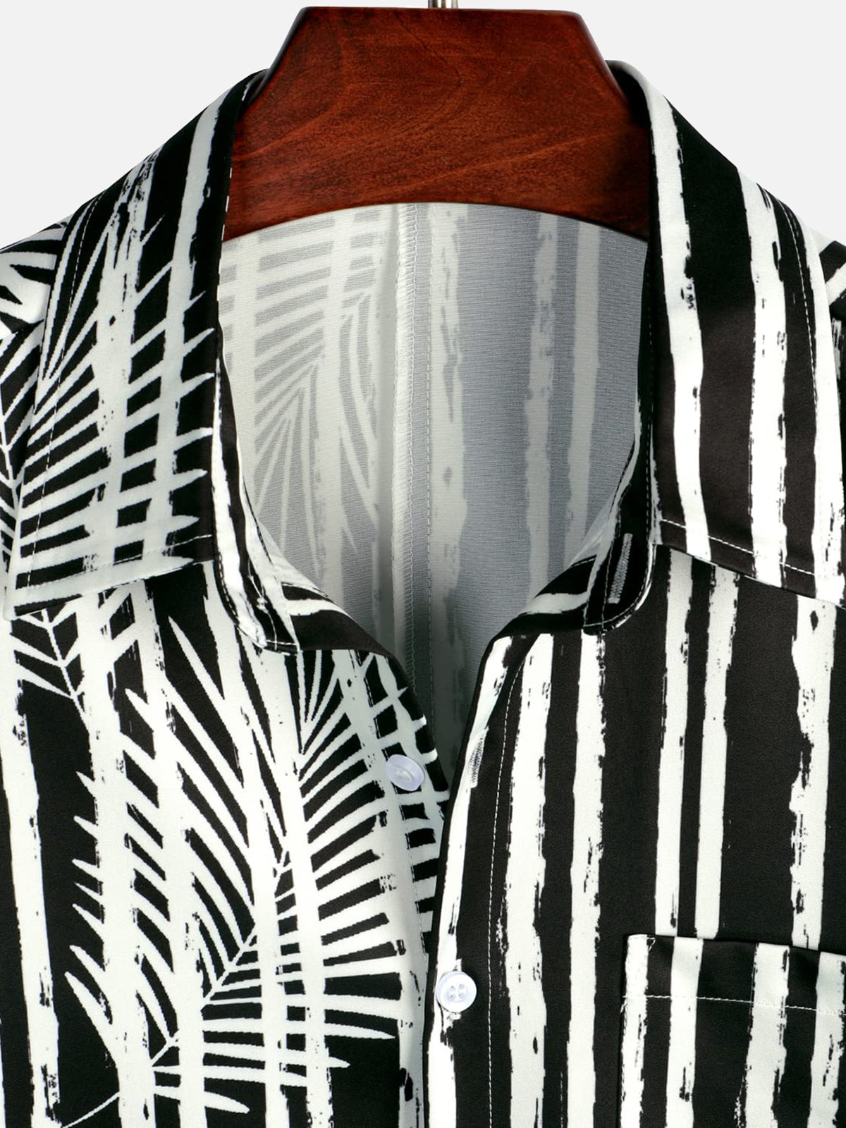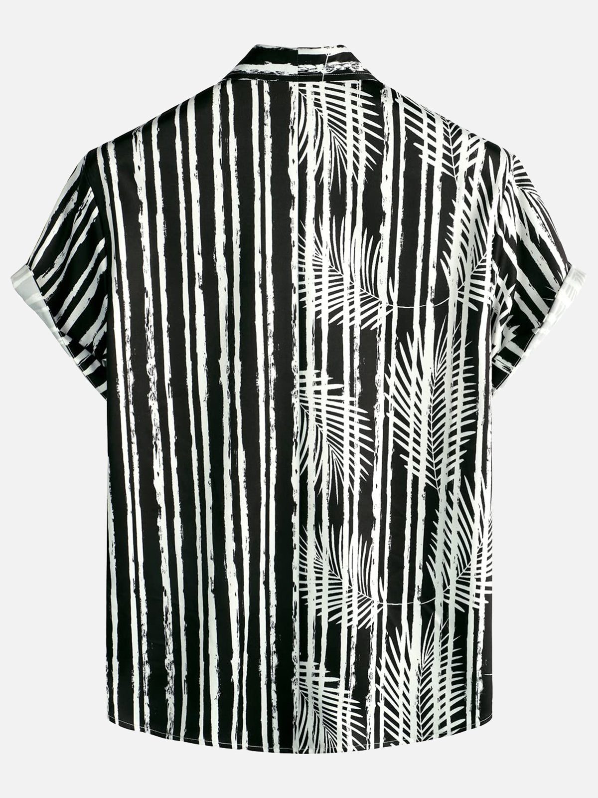 Men's Tropical Plant Striped Print Pocket Hawaiian Black Short Sleeve Shirt