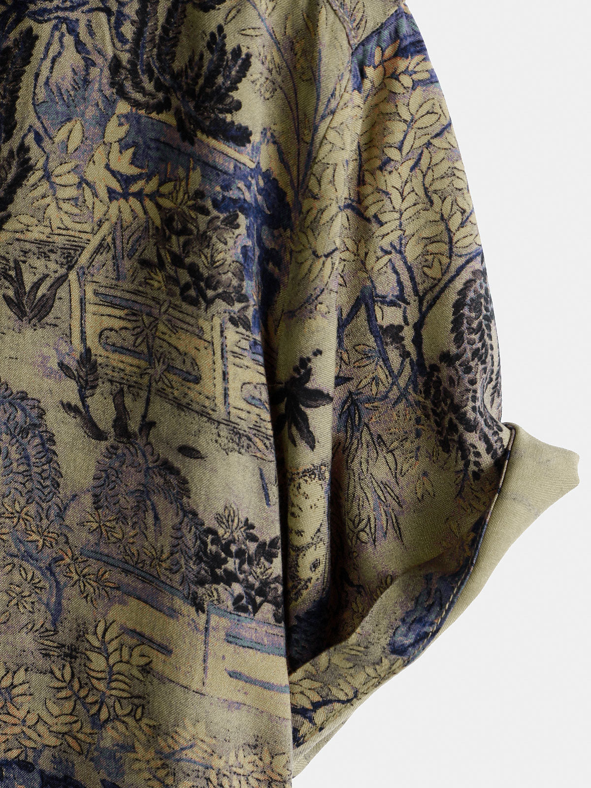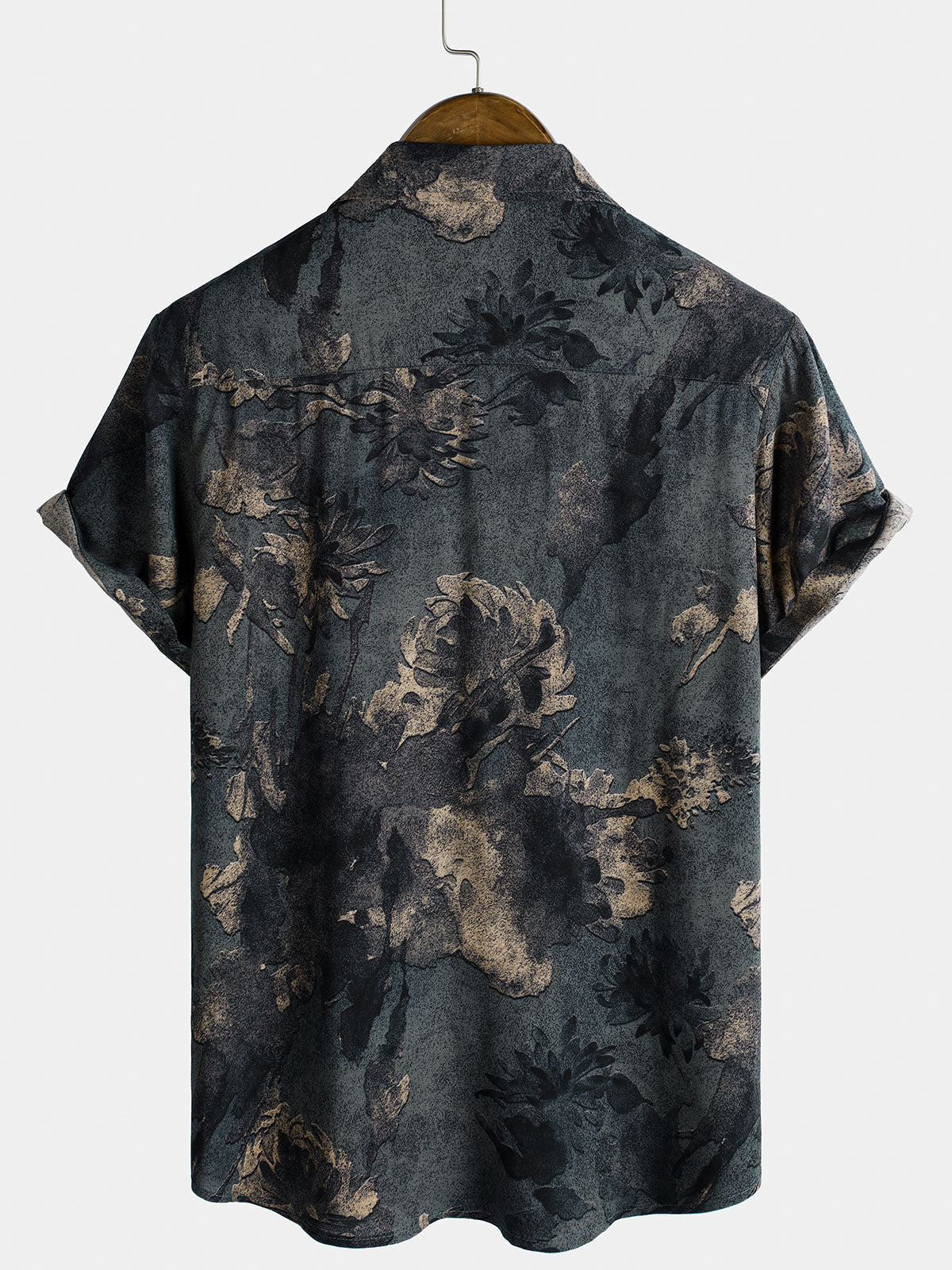 Men's Vintage Floral Cotton Breathable Short Sleeve Button Up Shirt
