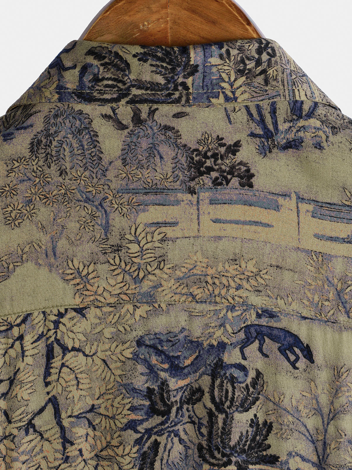 Men's Bamboo Print Casual Short Sleeve Shirt