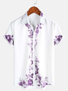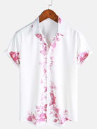 Men's Blue Floral Print Hawaiian Button Up Summer Beach Casual Collar Short Sleeve Shirt