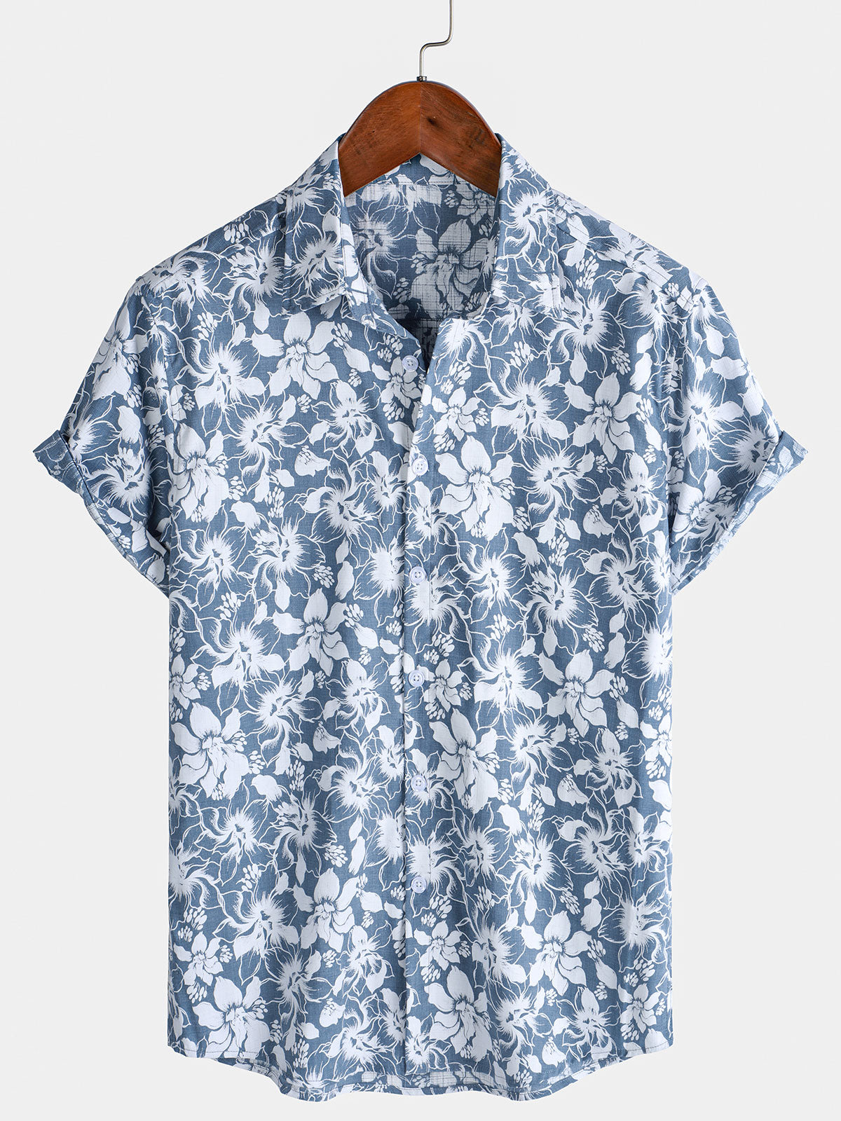 Men's Holiday Floral Print Hawaiian Beach Cotton Short Sleeve Shirt