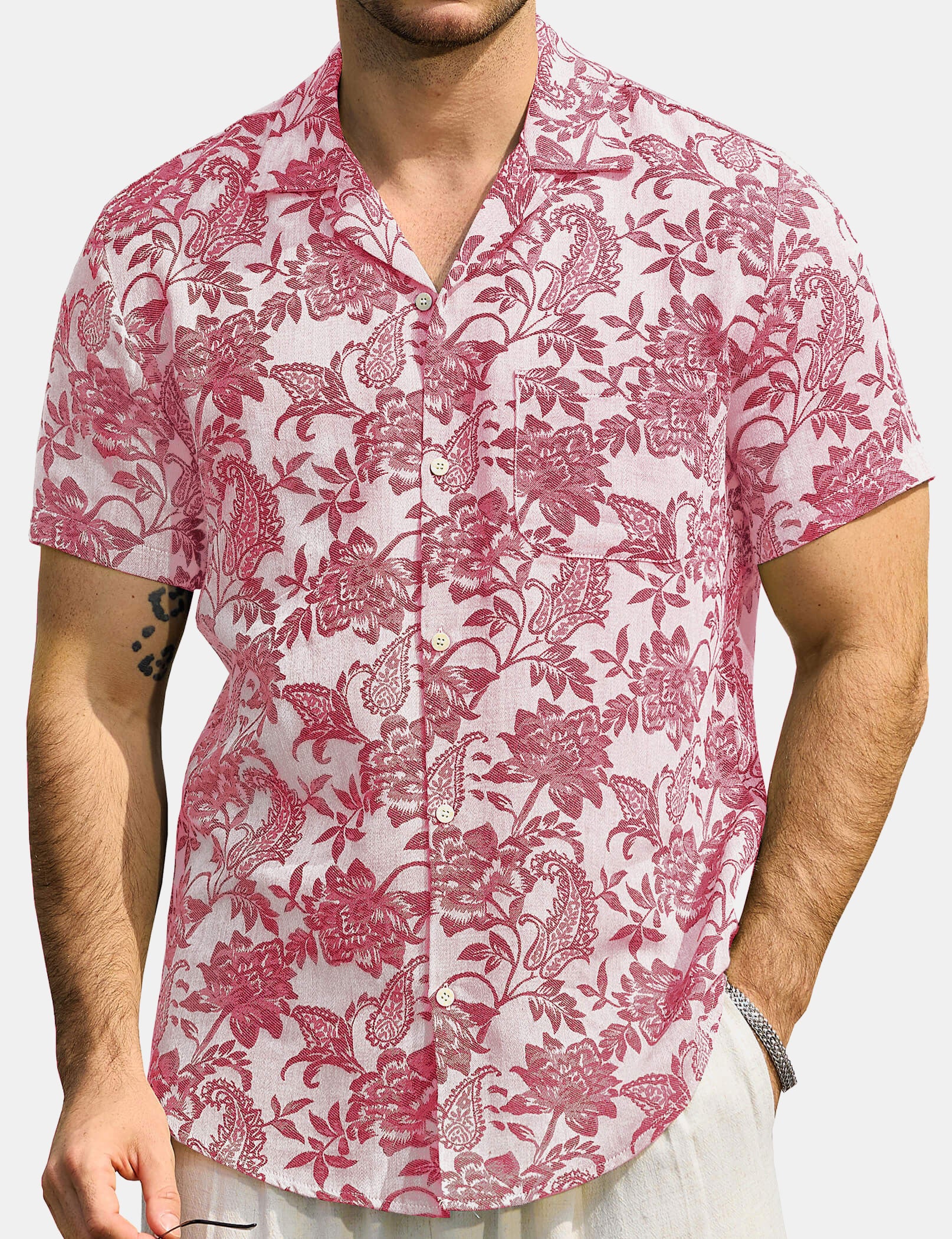 Men's Short Sleeve Rose Cotton Holiday Shirts