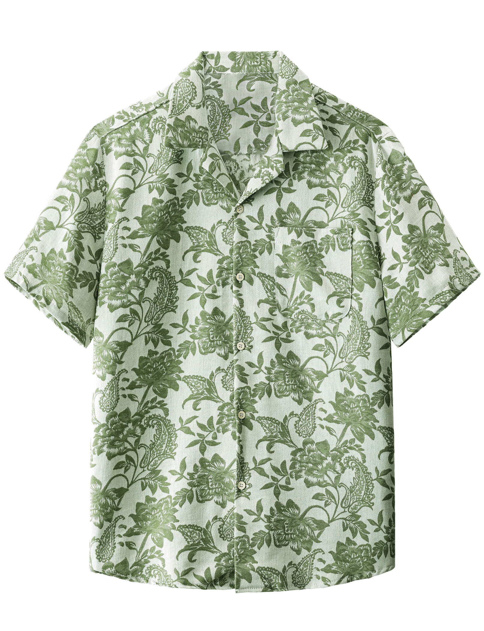 Men‘s 100% Cotton Green Floral Hawaiian Short Sleeve Button Shirt