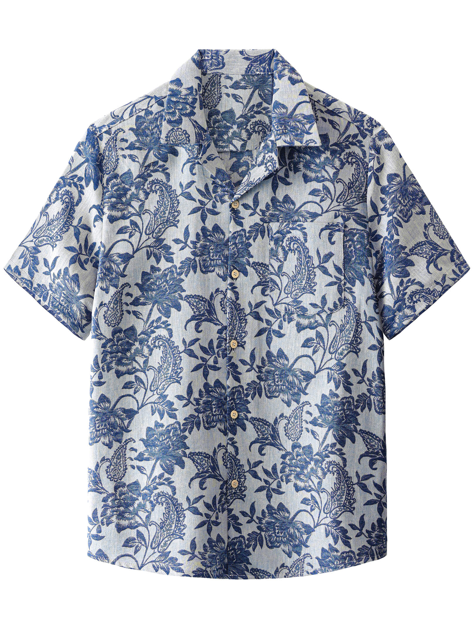 Men's Casual Cotton Floral Blue Short Sleeve Hawaiian Shirt