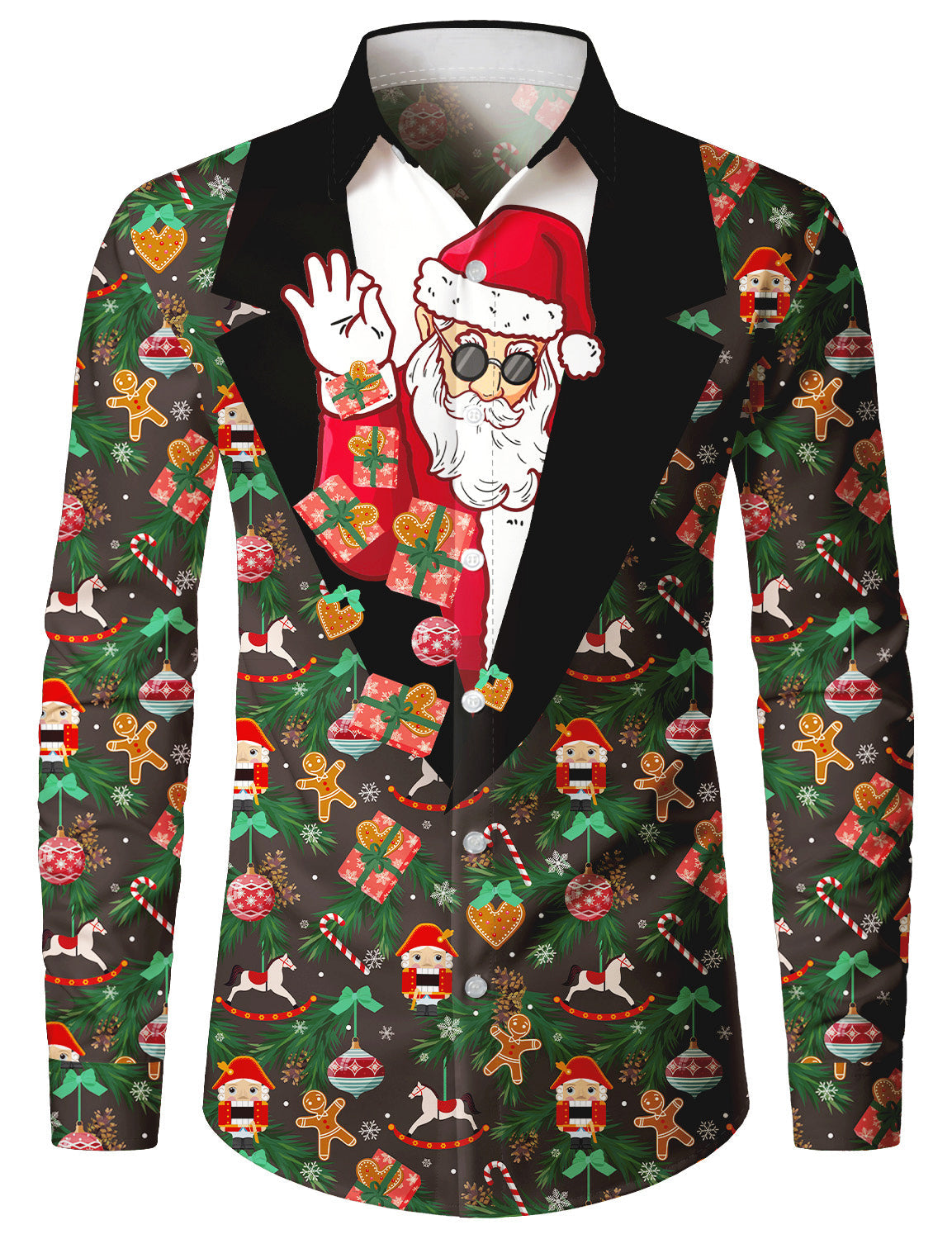 Men's Christmas Funny Holiday Button Up Long Sleeve Shirt