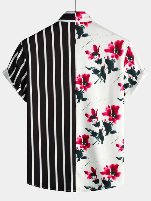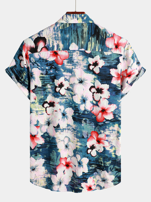 Men's Floral Cotton Casual Button Up Short Sleeve Shirt
