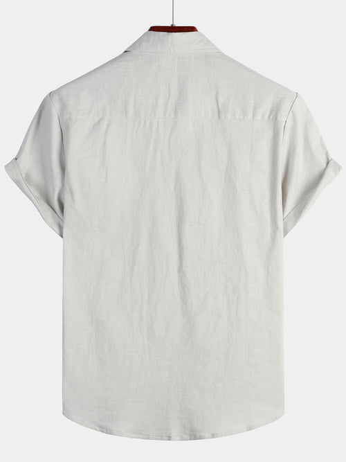 Men's Solid Color Linen Cotton Pocket Casual Button Short Sleeve Shirt