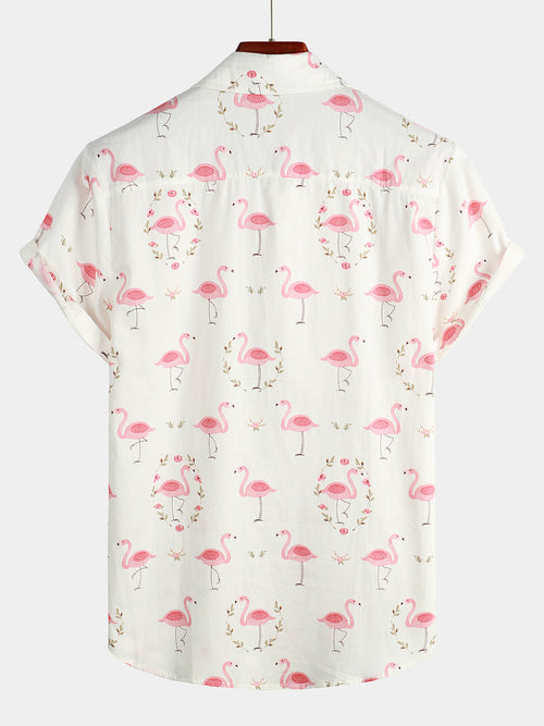 Men's Casual Cotton Flamingo Print Short Sleeve Shirt