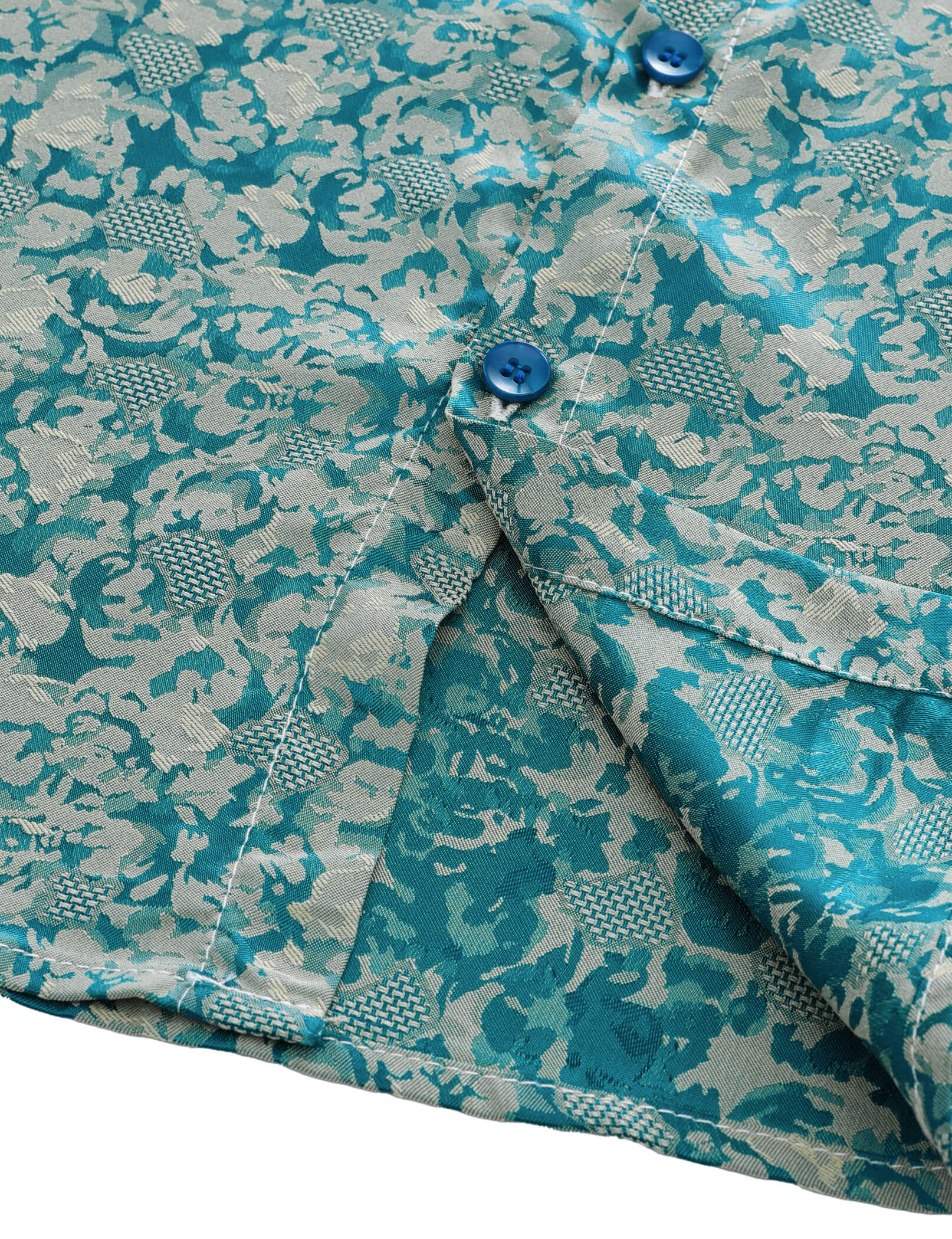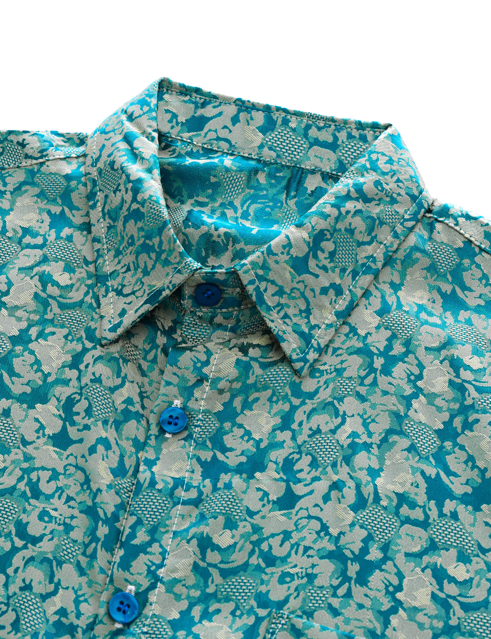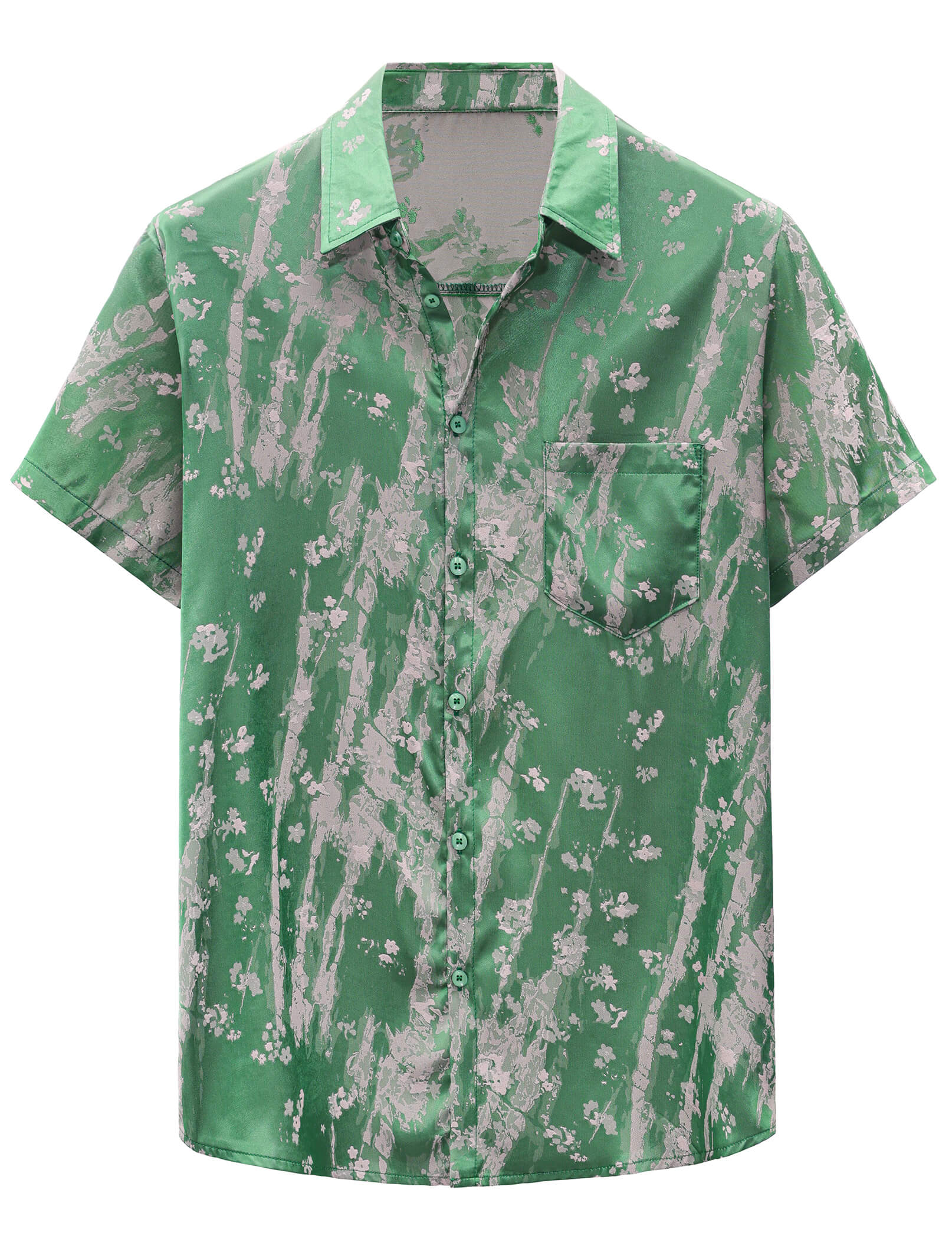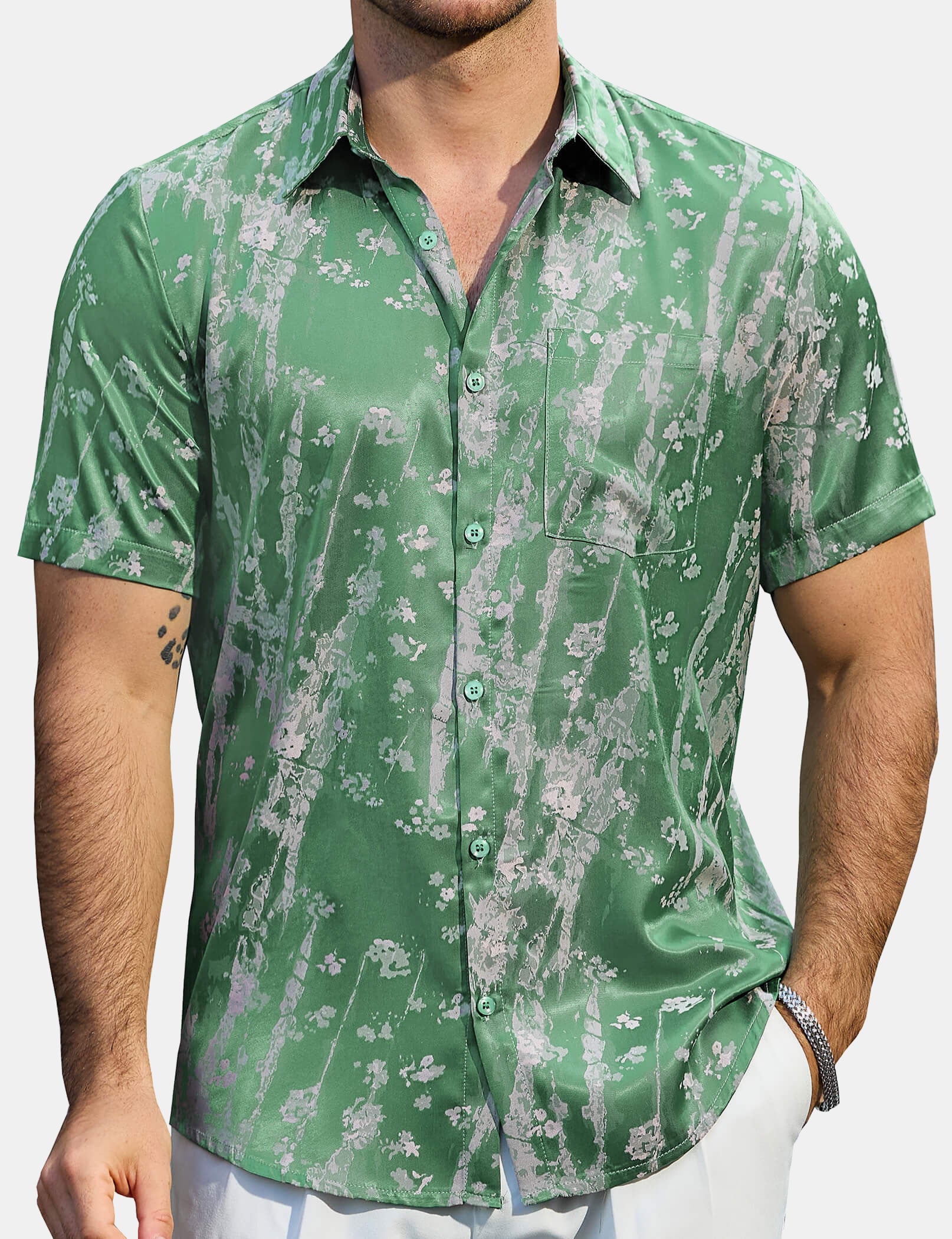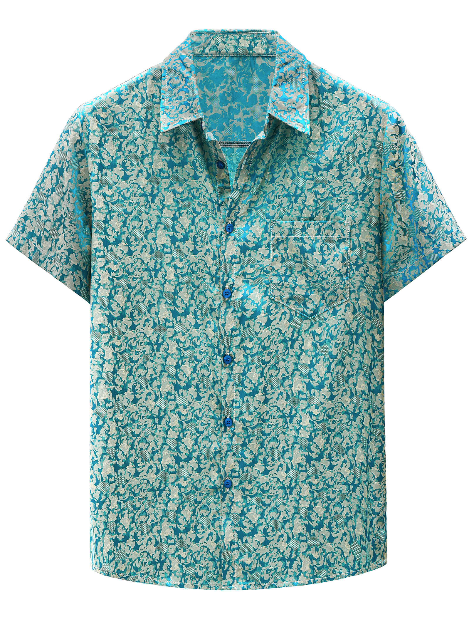 Men's Jacquard Satin Casual Short Sleeve Button Up Shirts