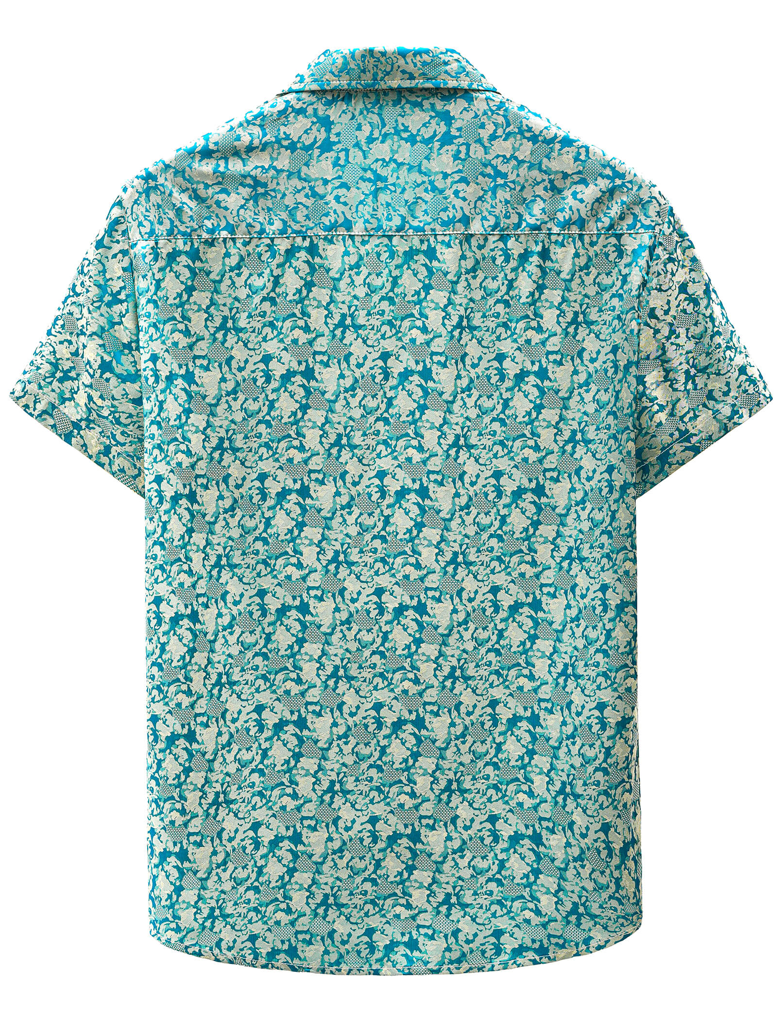 Men‘s Jacquard Hawaiian Short Sleeve Casual Floral Tropical Summer Beach Shirt