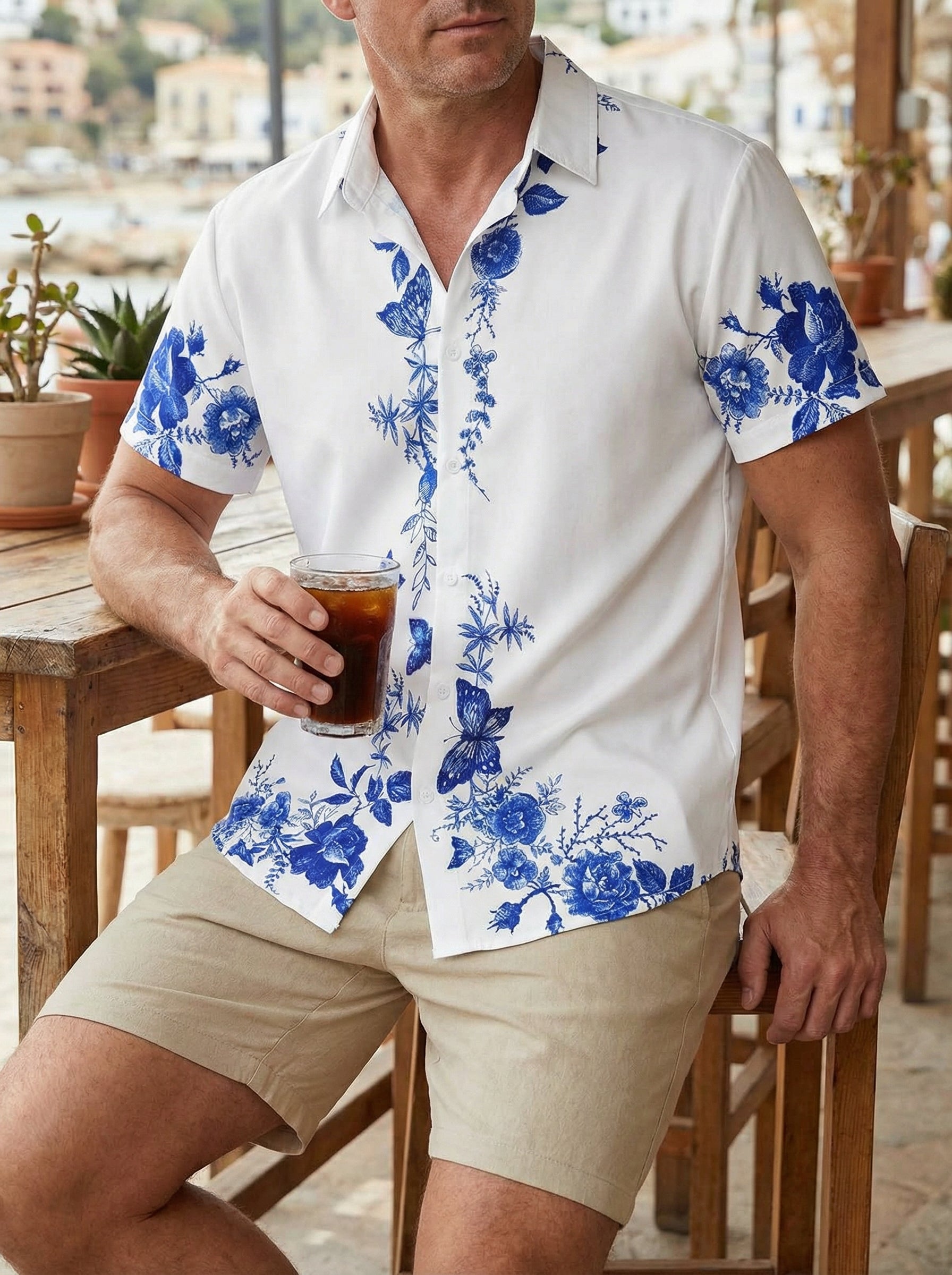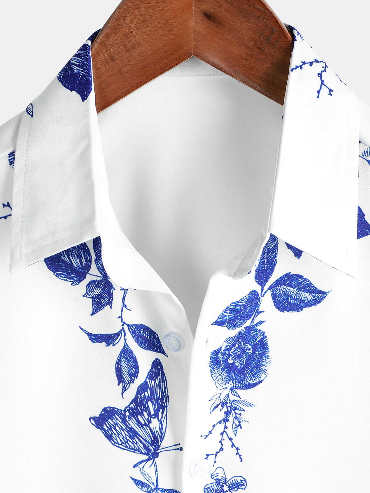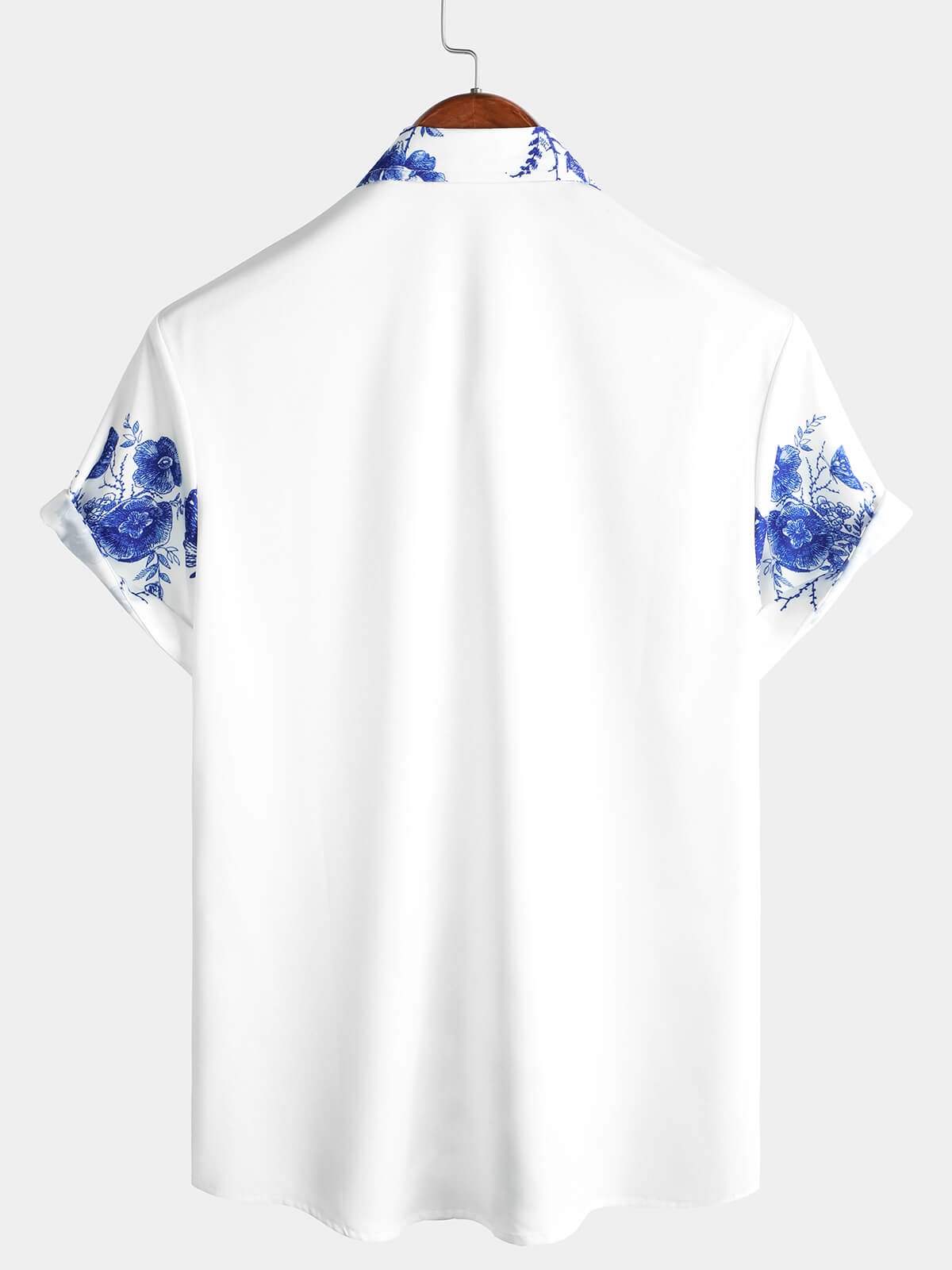 Men's Blue Floral Print Hawaiian Button Up Summer Beach Casual Collar Short Sleeve Shirt