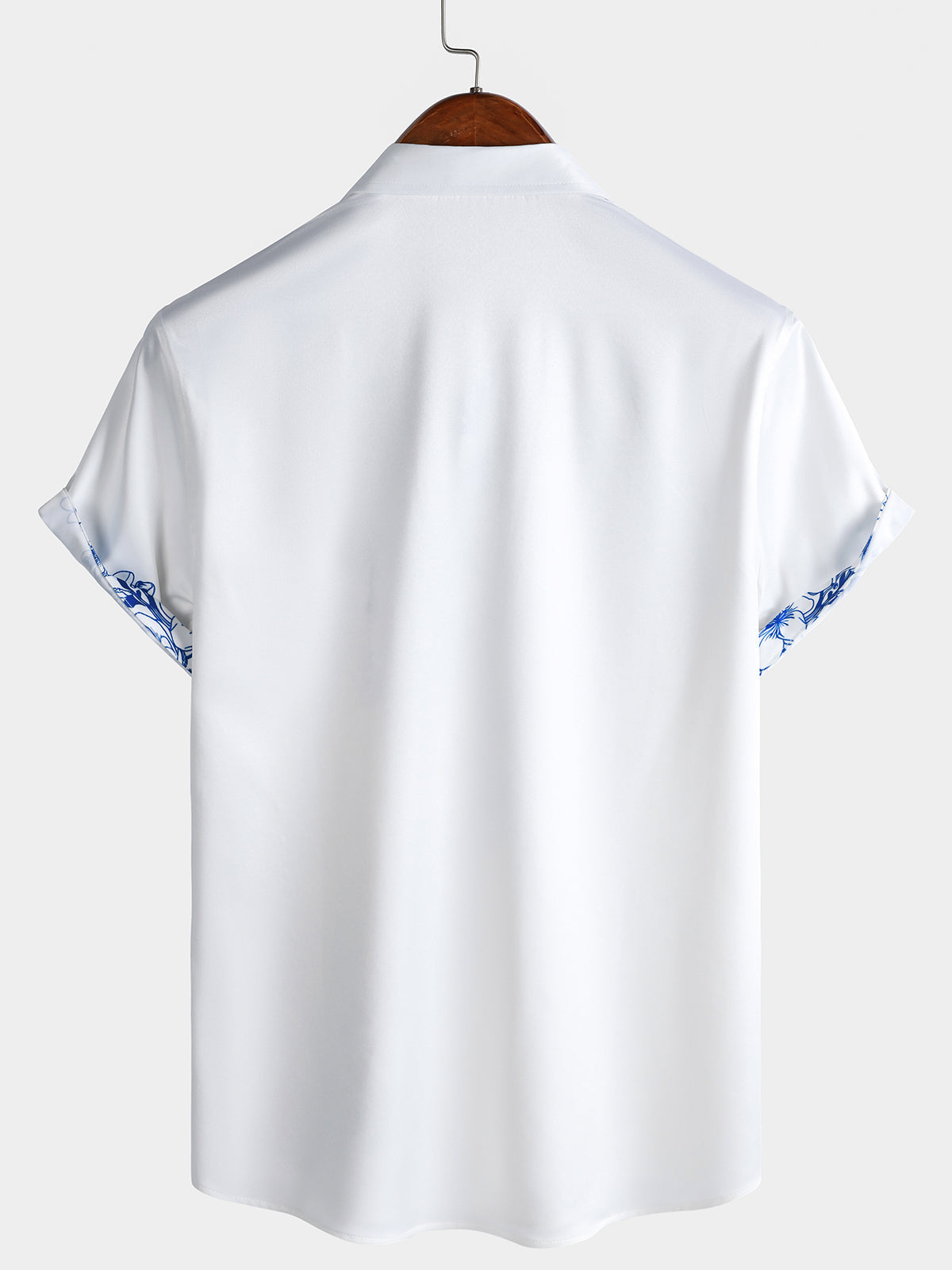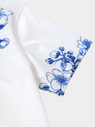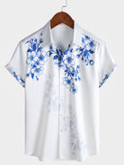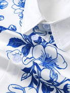 Men's Blue Floral Print Short Sleeve Cruise Party Hawaiian Shirt