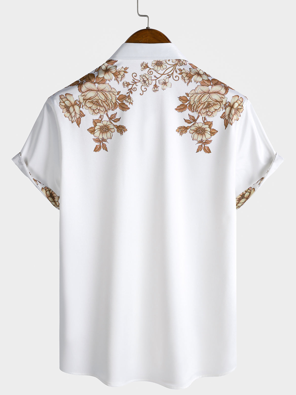 Men's Floral Print Hawaiian Button Up Casual Collar Short Sleeve Shirt