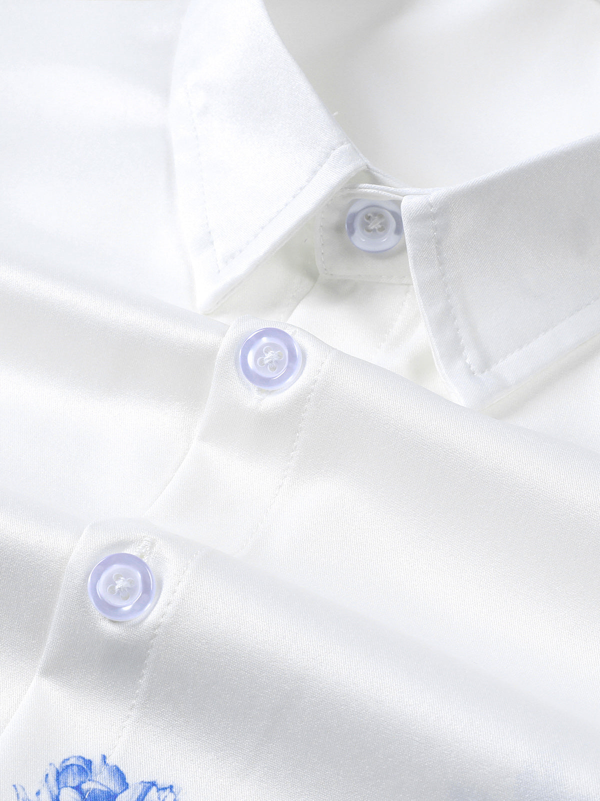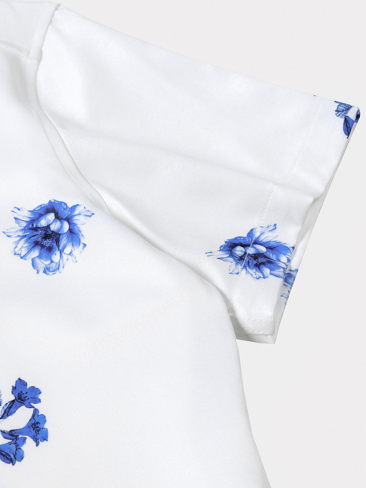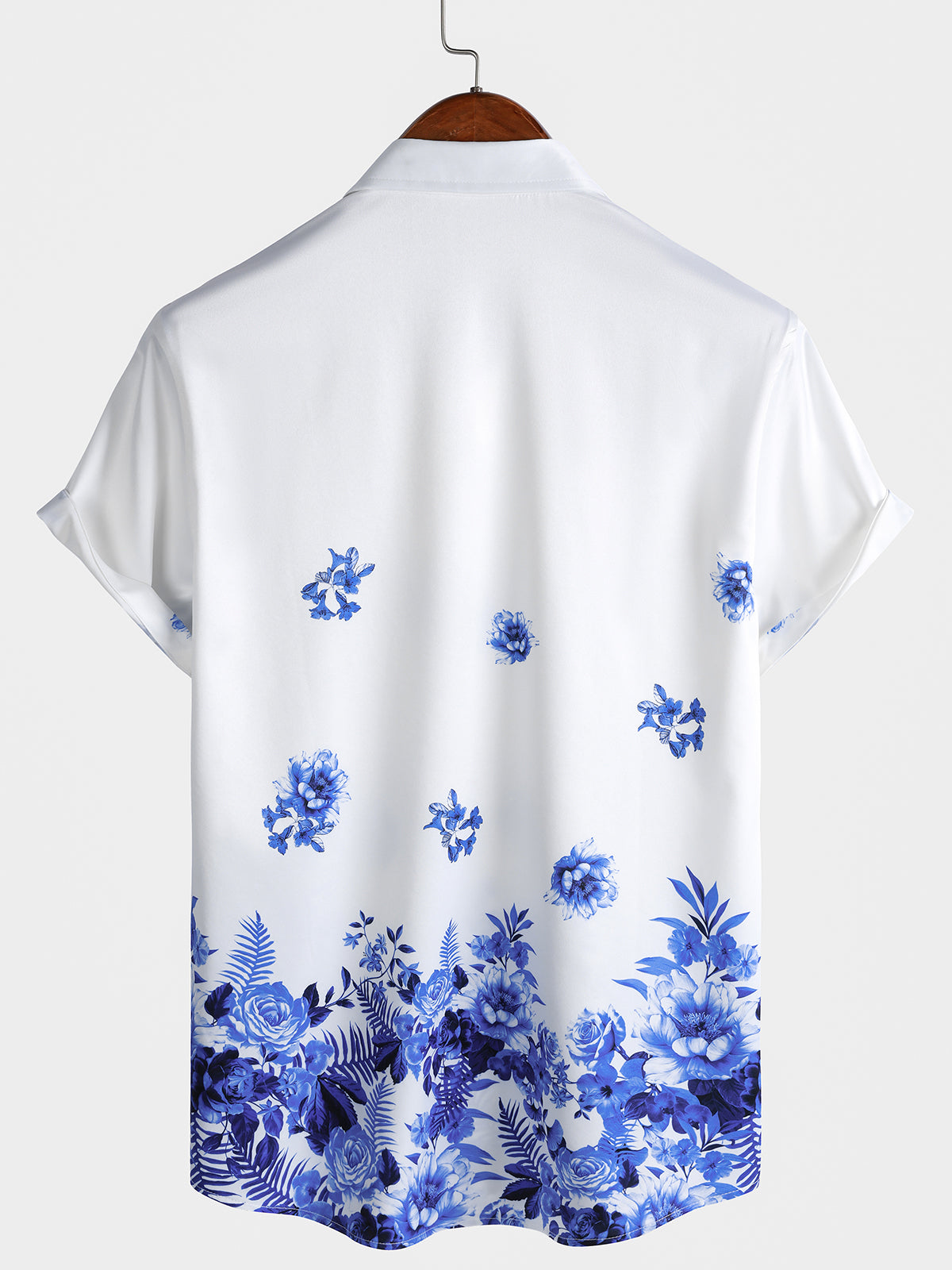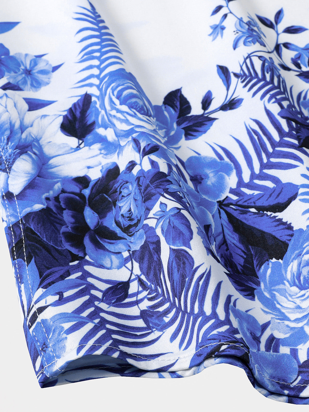 Men's Holiday Summer Blue Floral Print Hawaiian Short Sleeve Shirt
