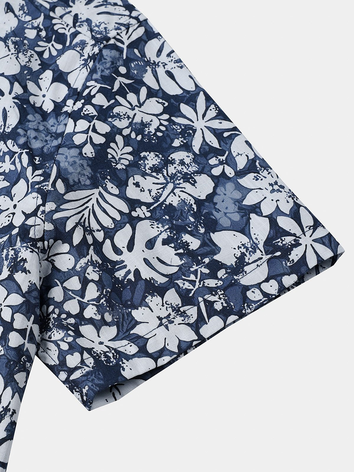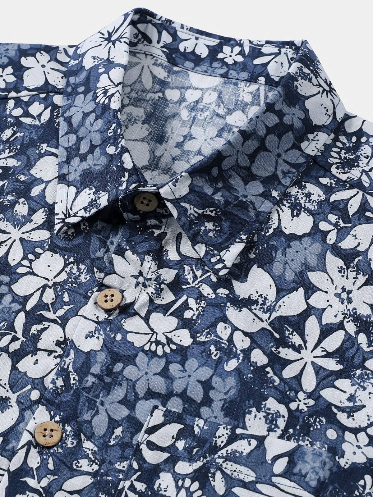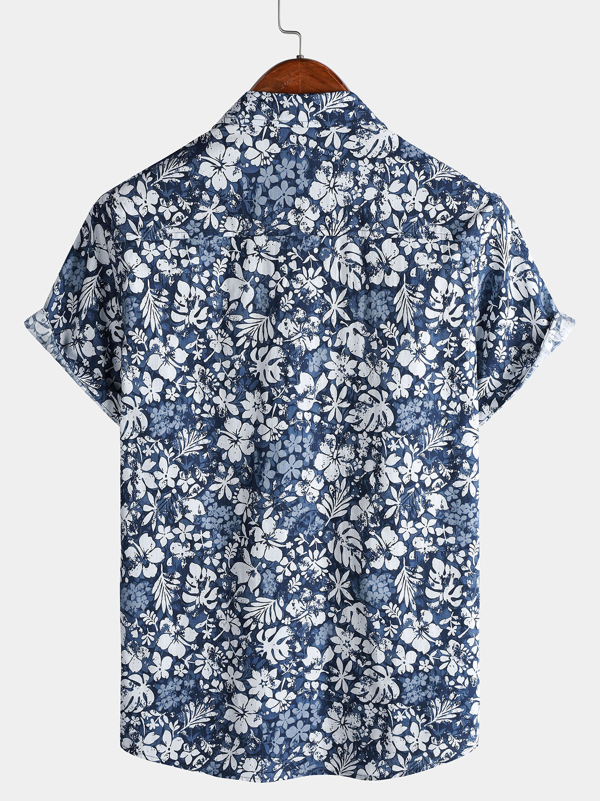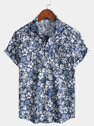 Men's Short Sleeve Cotton Breathable Island Holiday Hibiscus Print Retro Shirt