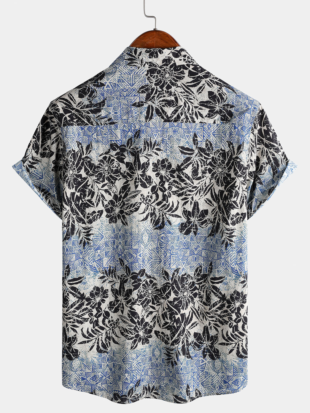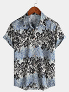 Men's Short Sleeve Cotton Breathable Retro Bohemian Botanical Print Island Holiday Shirt