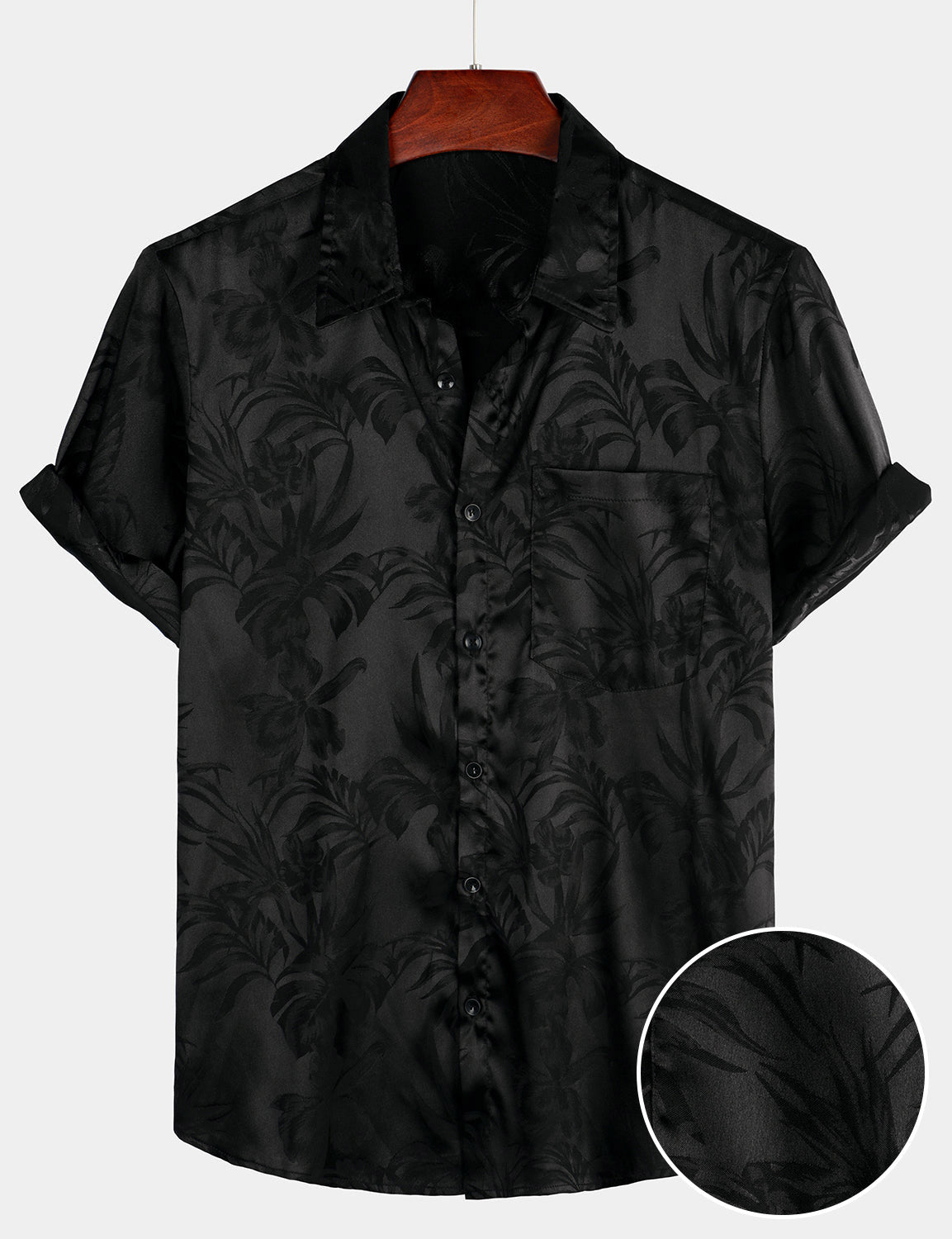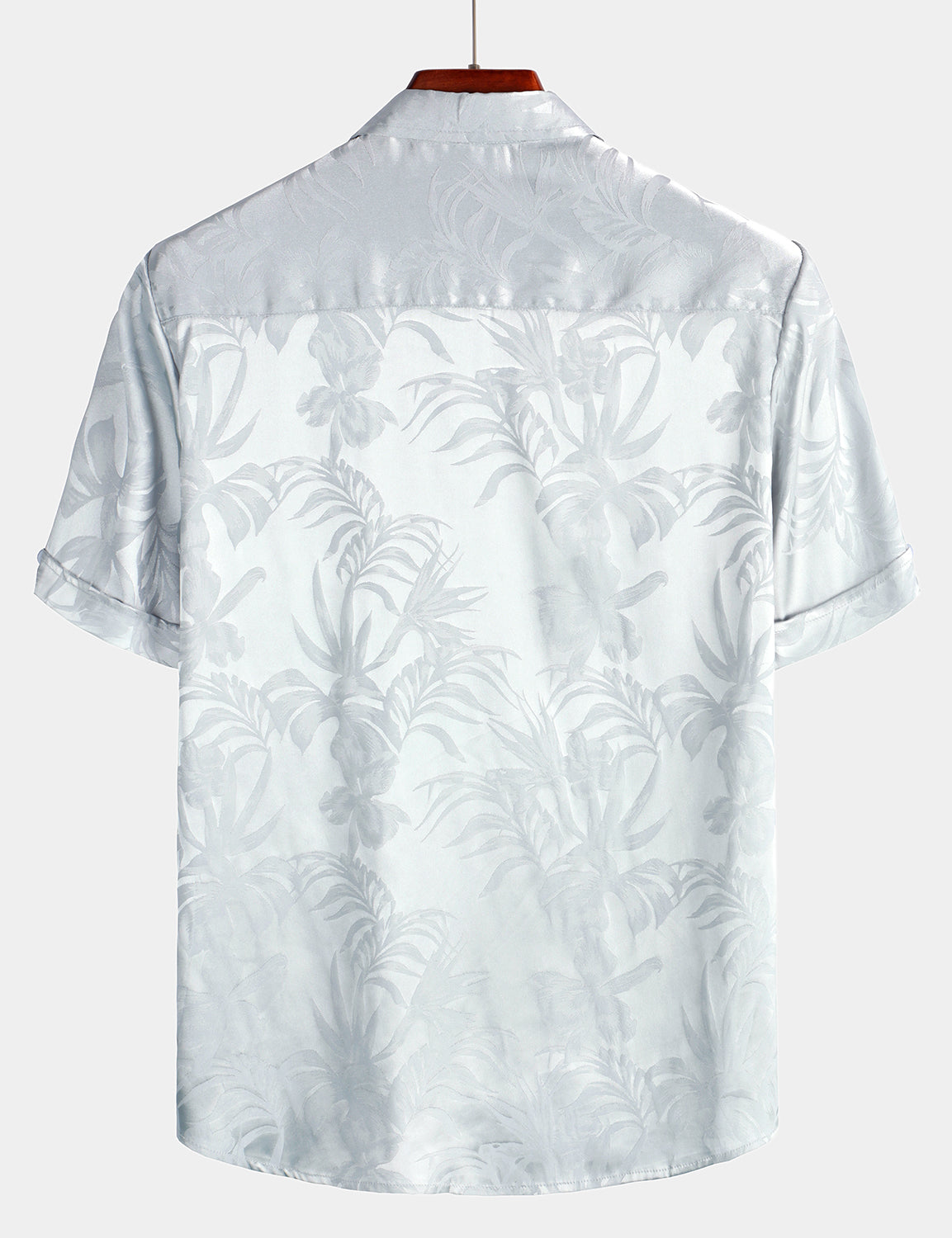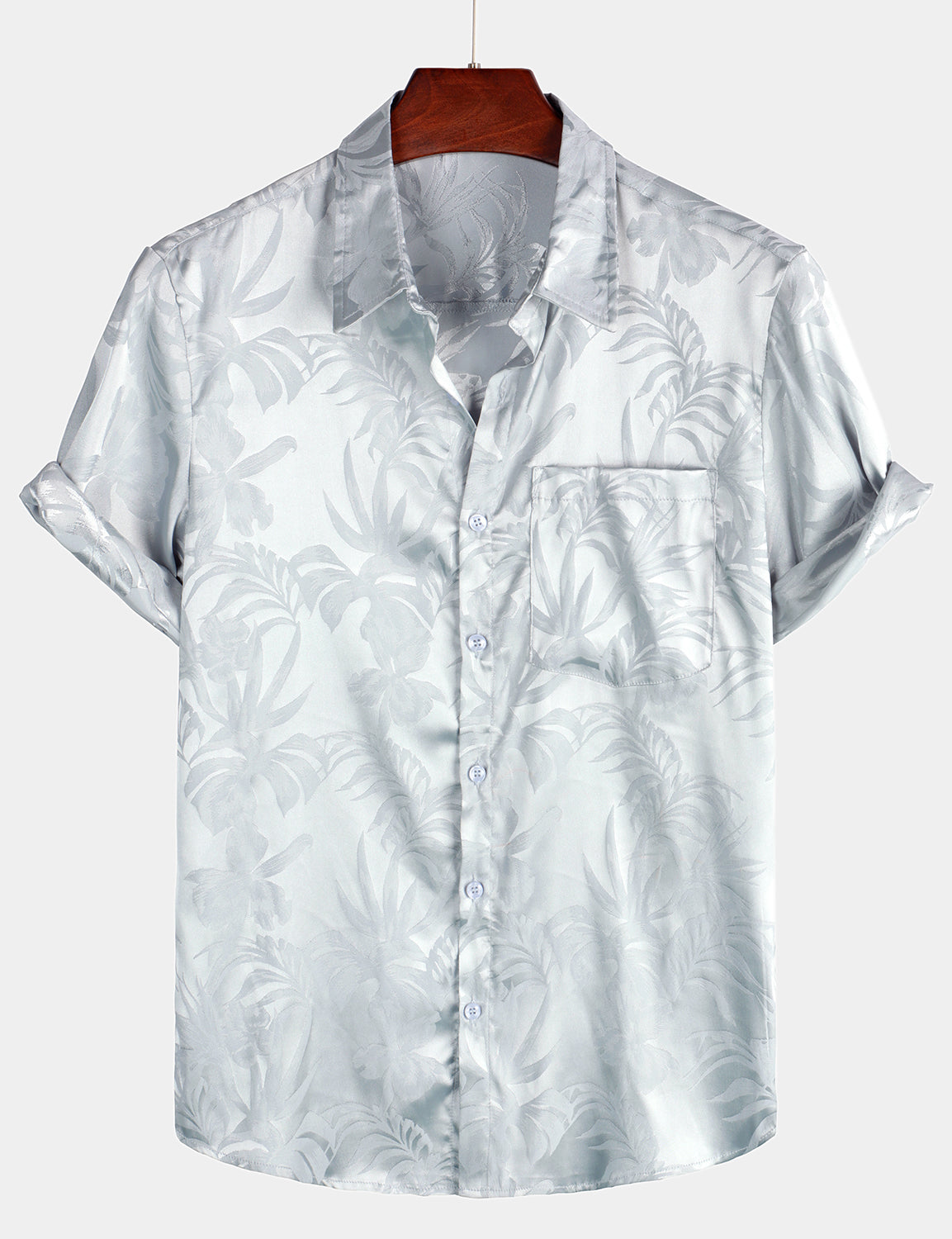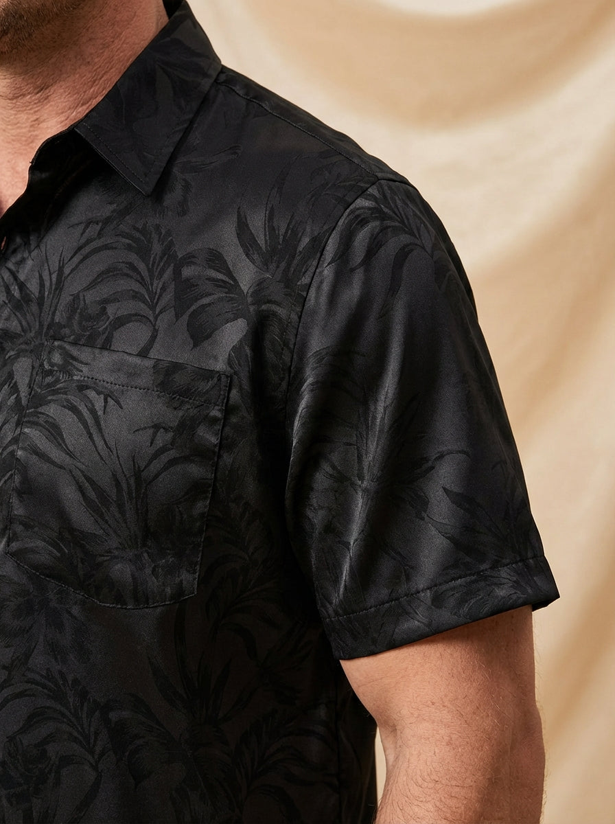Men's Summer Jacquard Casual Button Up Pocket Floral Short Sleeve Beach Shirt