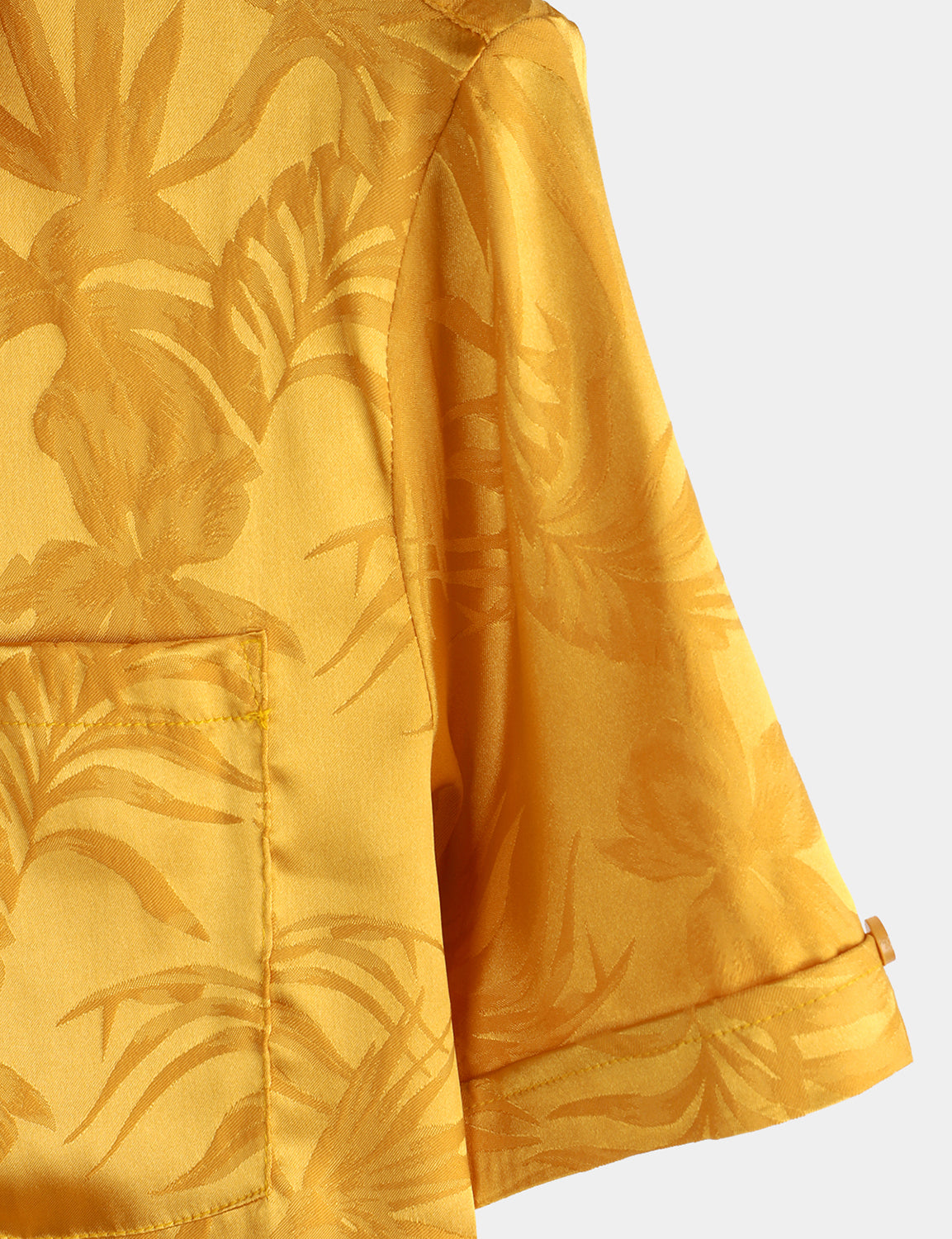 - Button up short sleeve shirt with front pocket and unique jacquard design