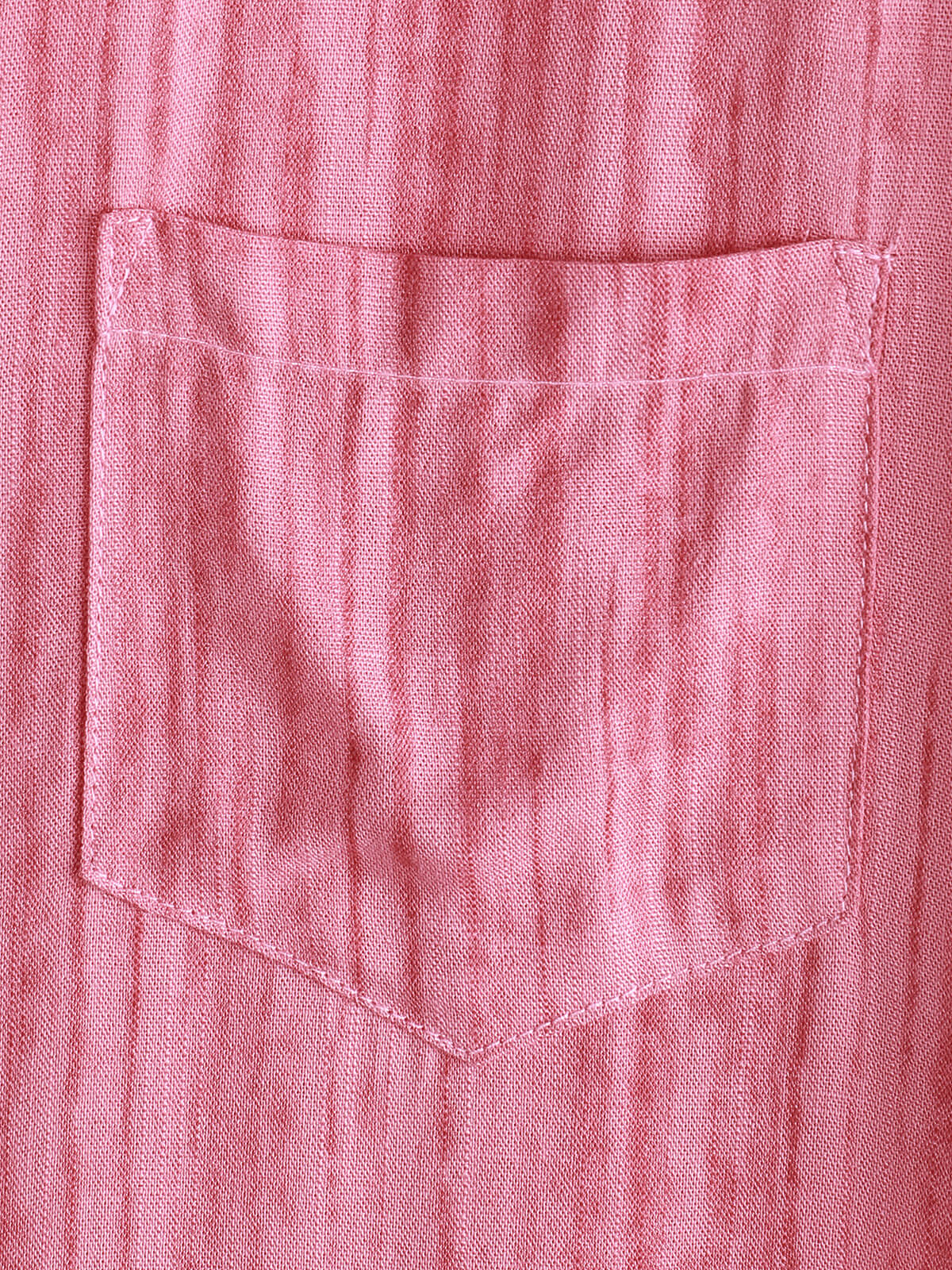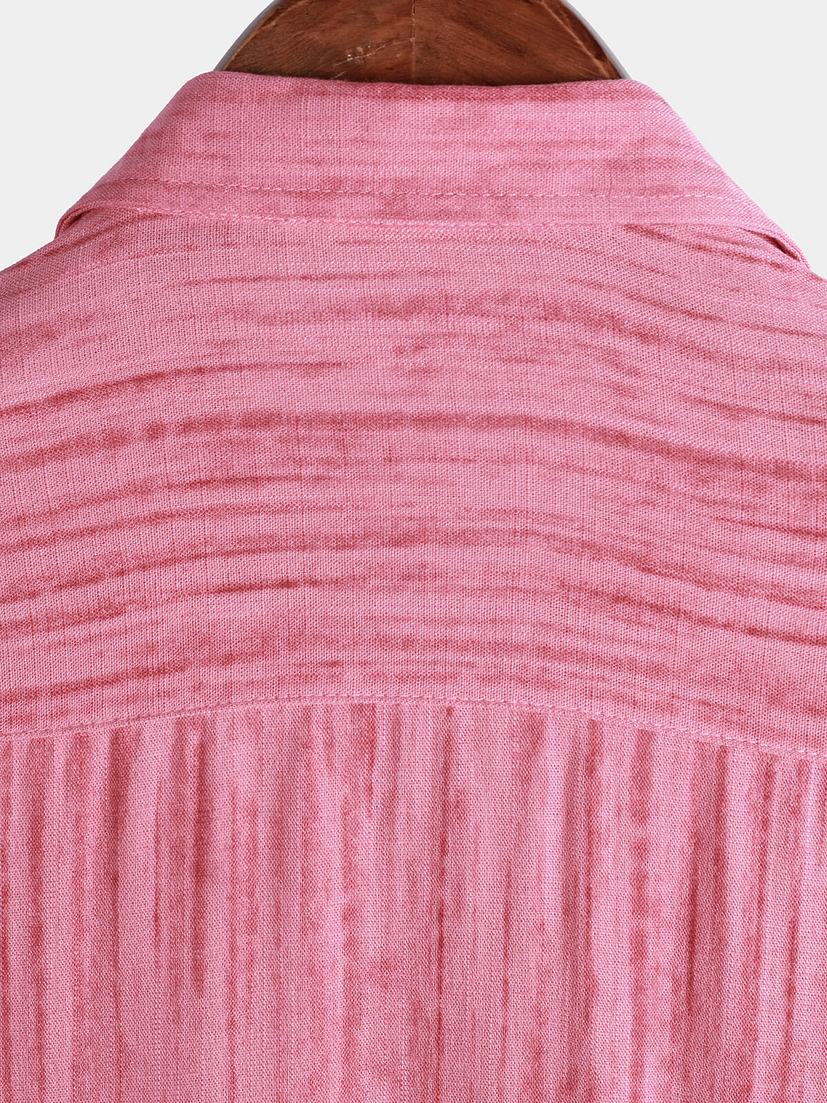 Men's Breathable Short Sleeve Pocket Pink Striped Shirt