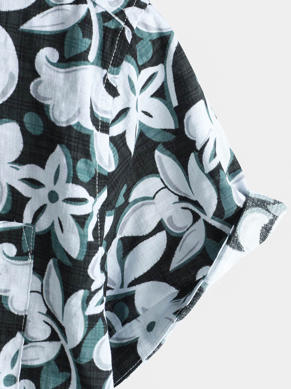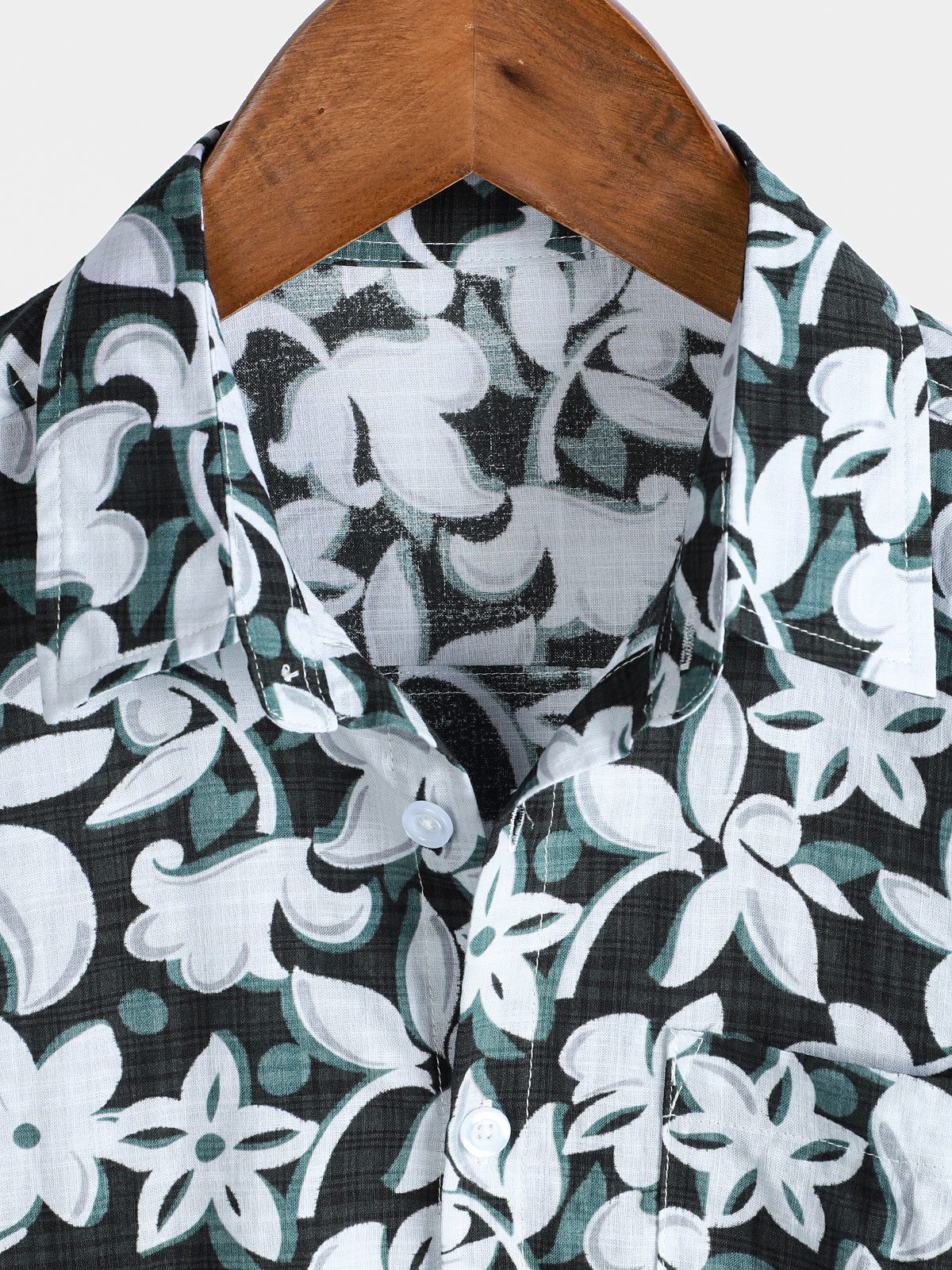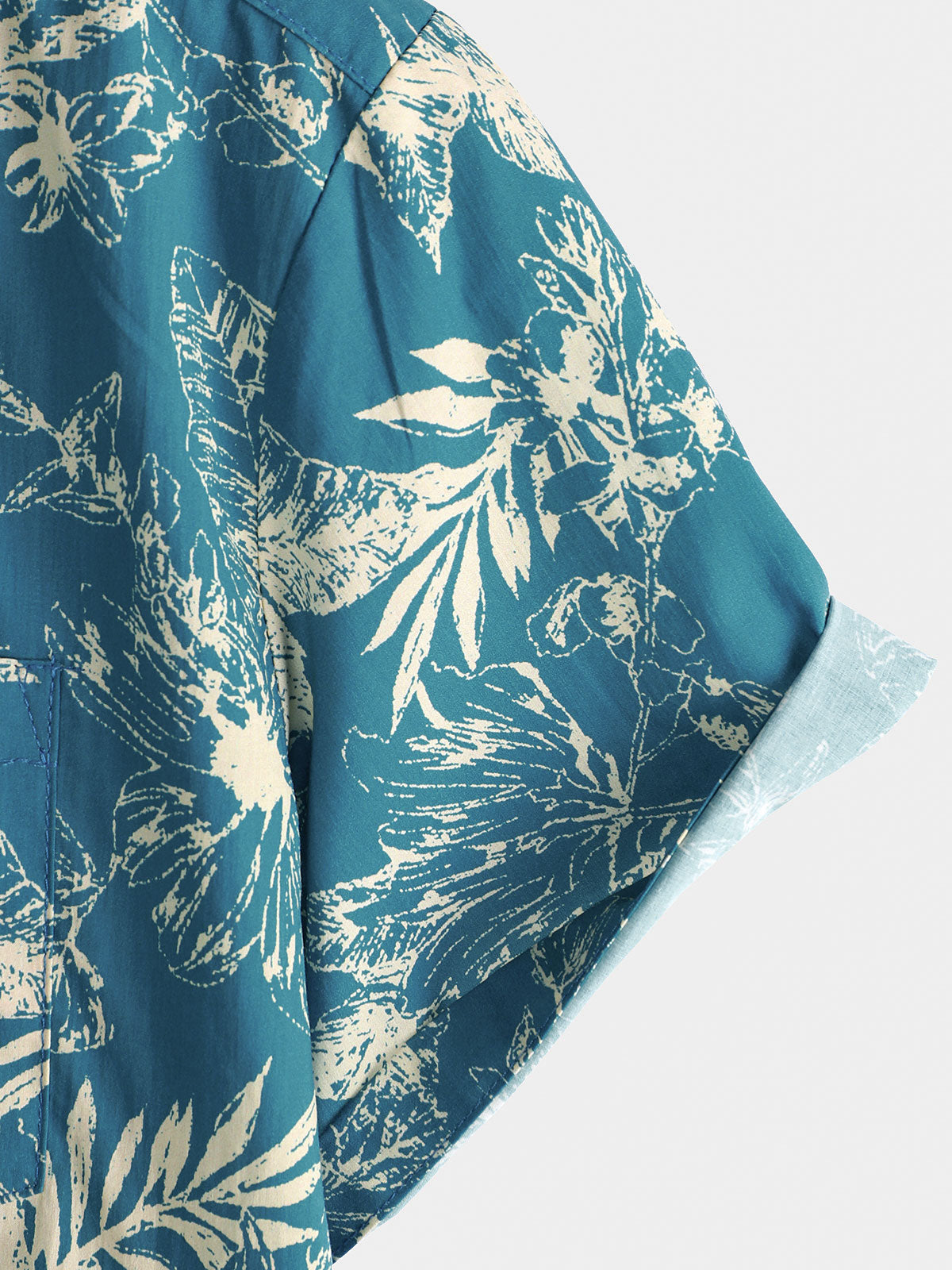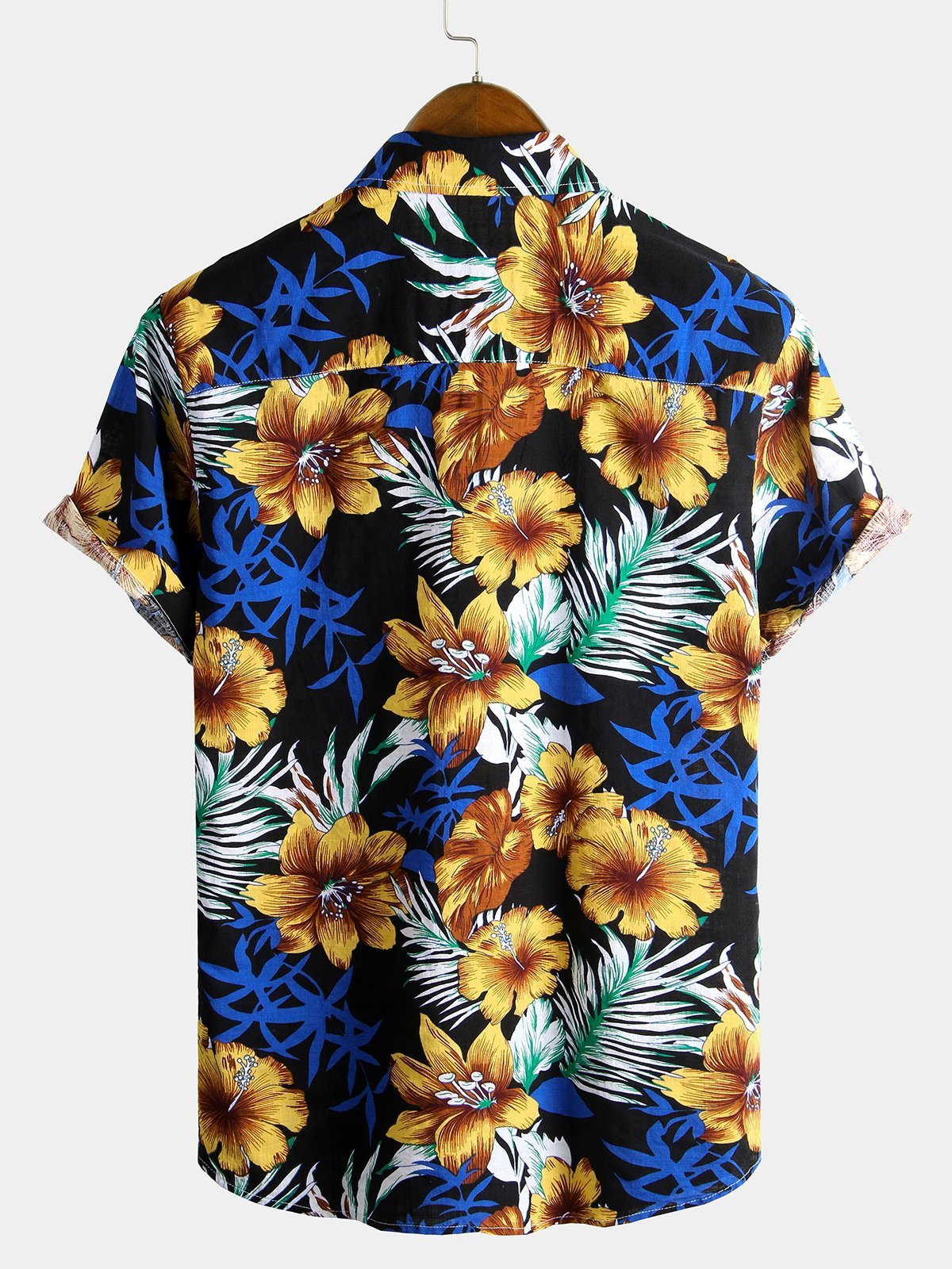 Men's Flower Tropical Hawaii Cotton Short Sleeve Shirt