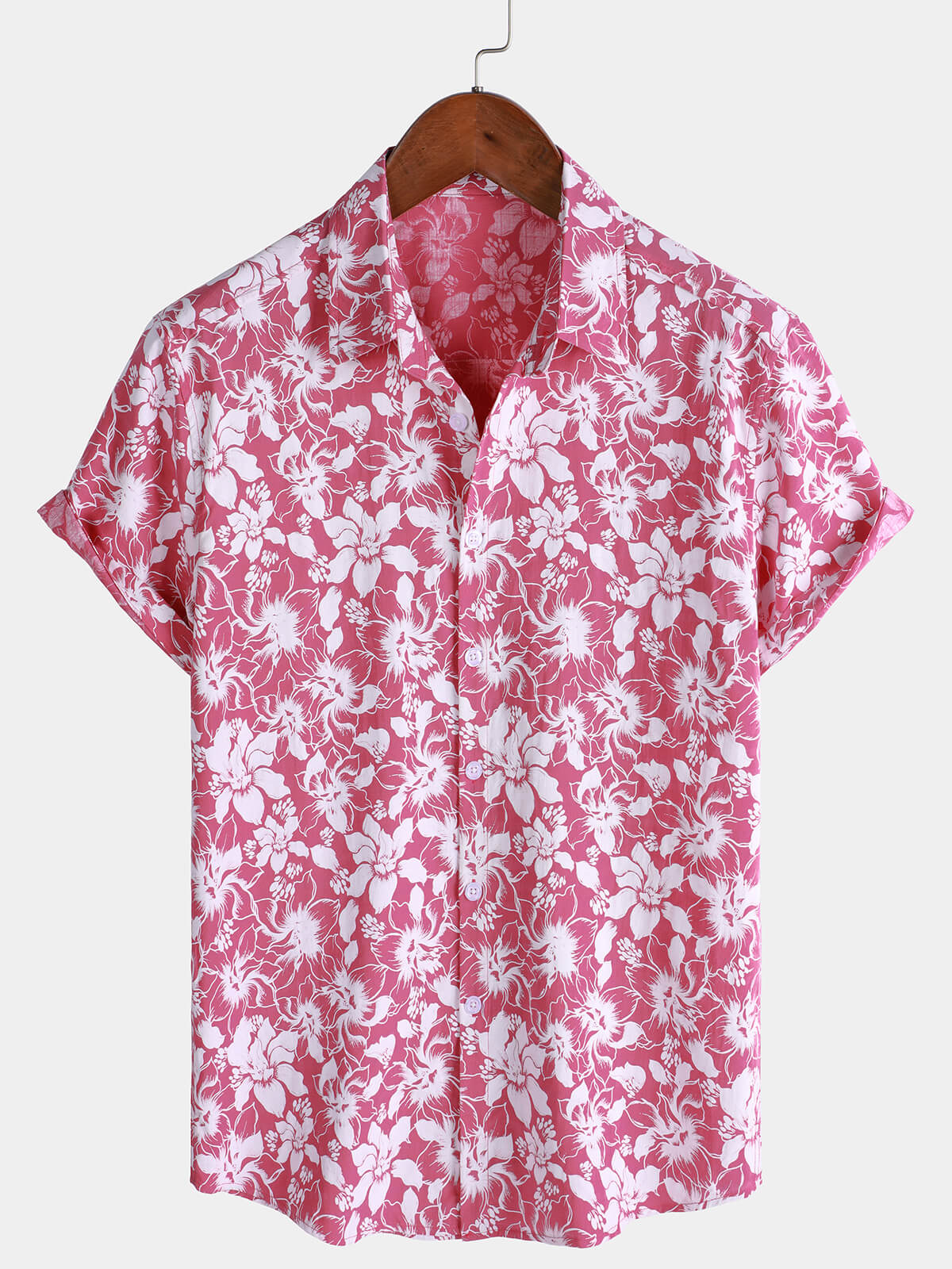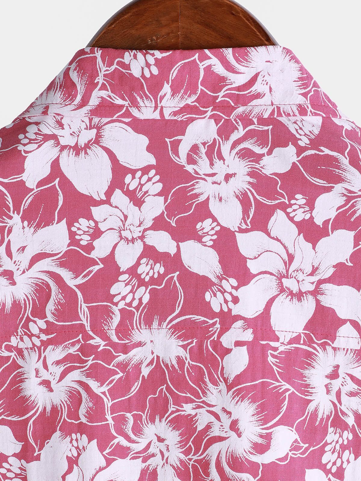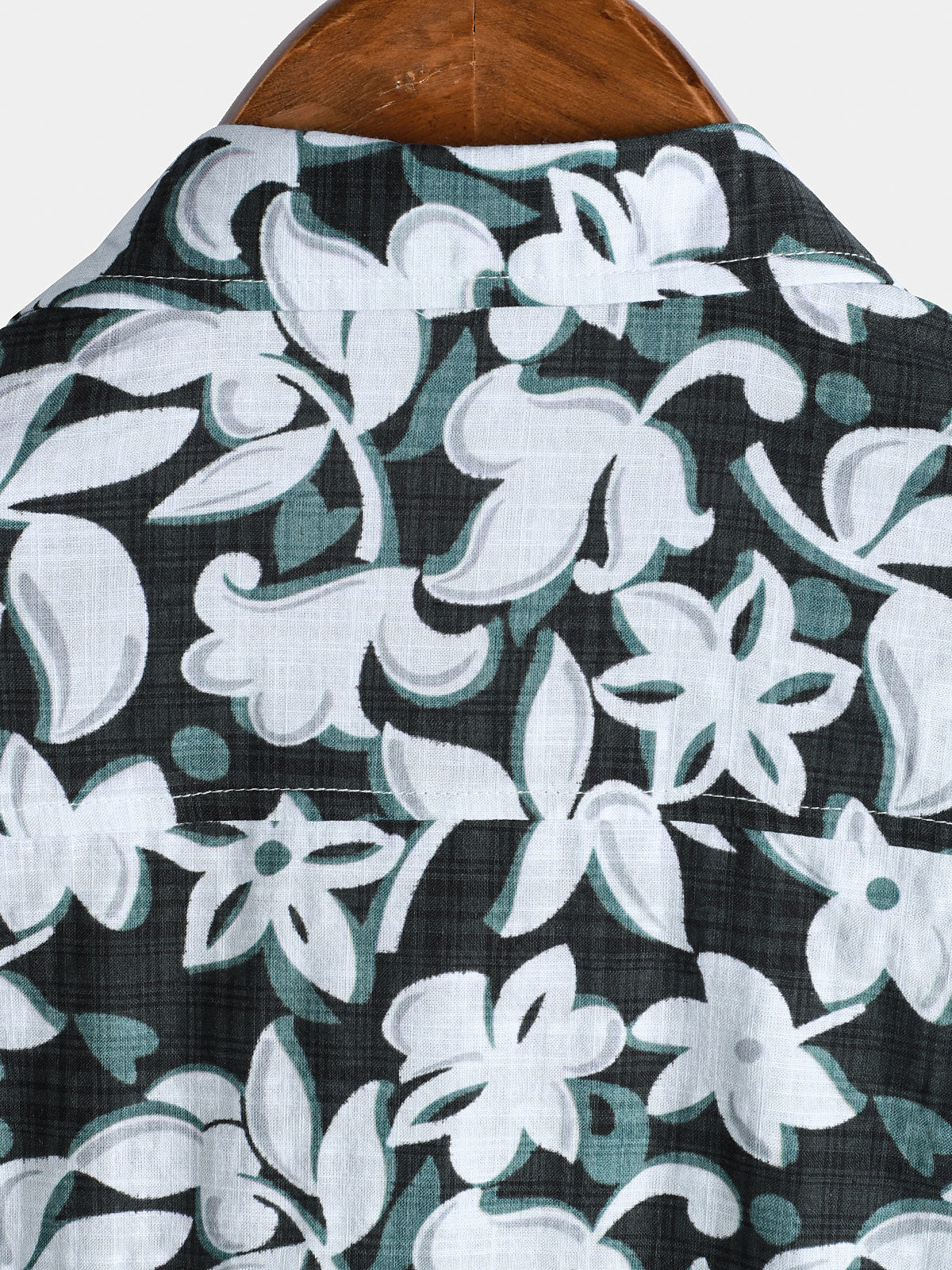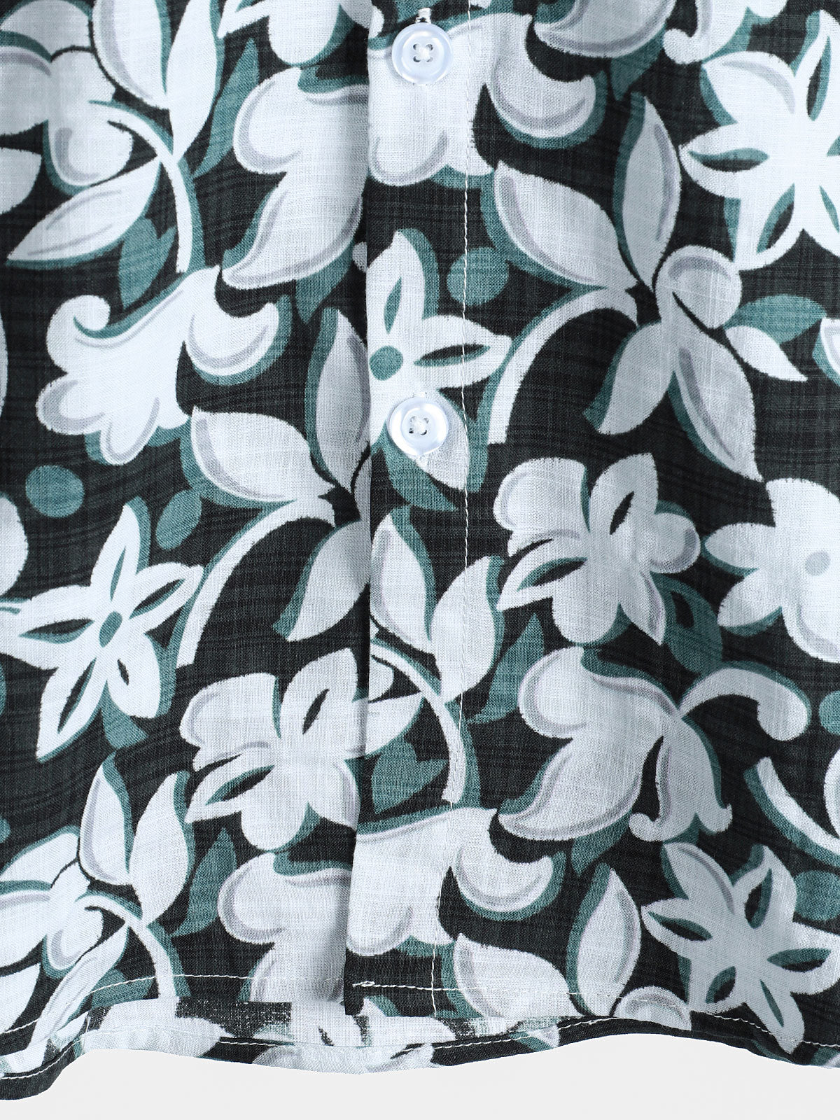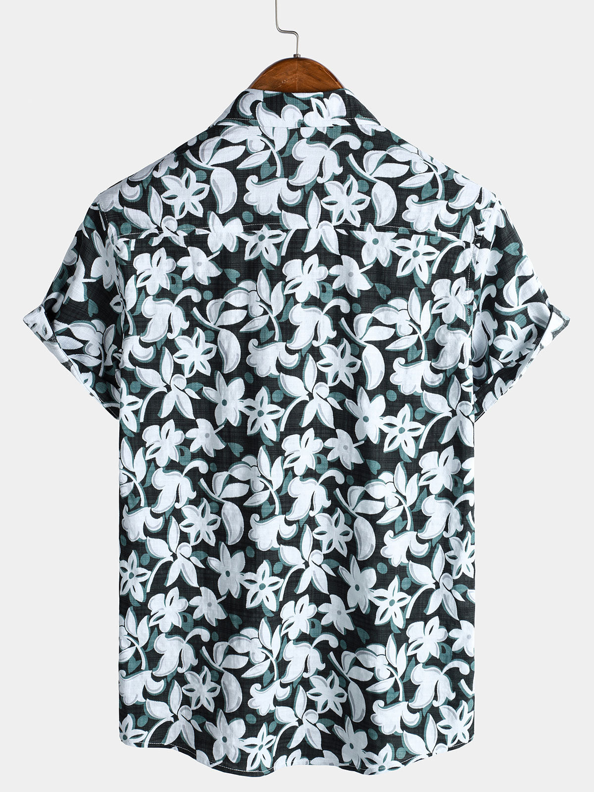 Men's Flower Tropical Hawaii Cotton Short Sleeve Shirt