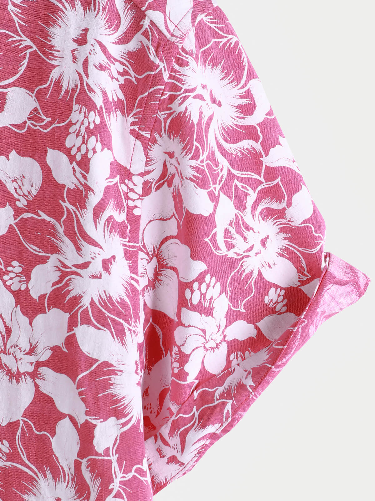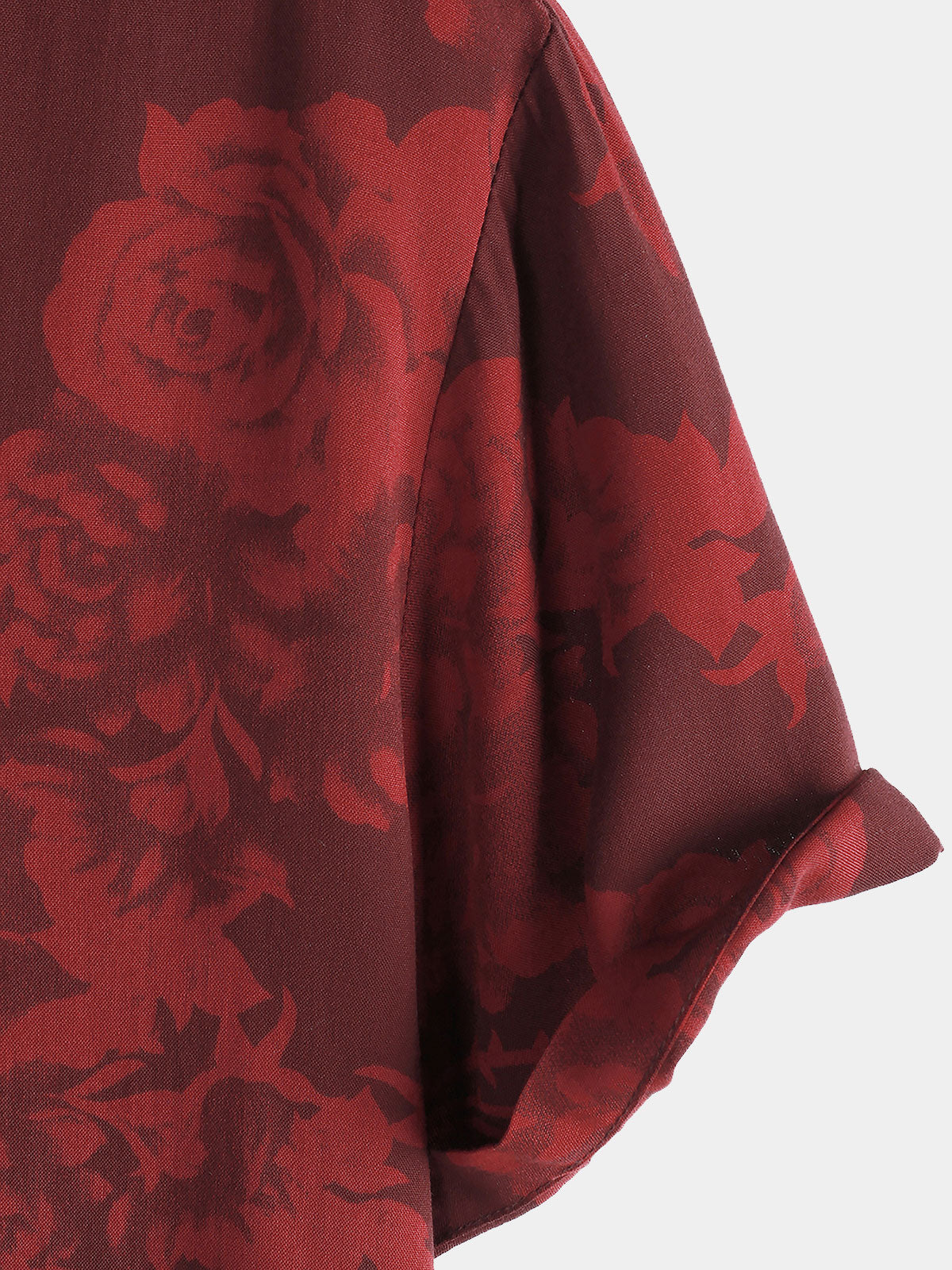 Men's Hawaiian Red Floral Summer Beach Short Sleeve Shirt