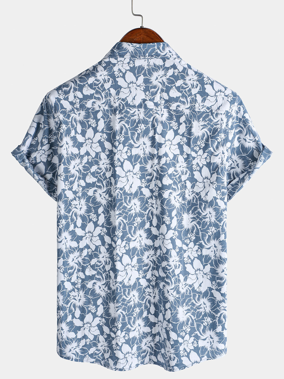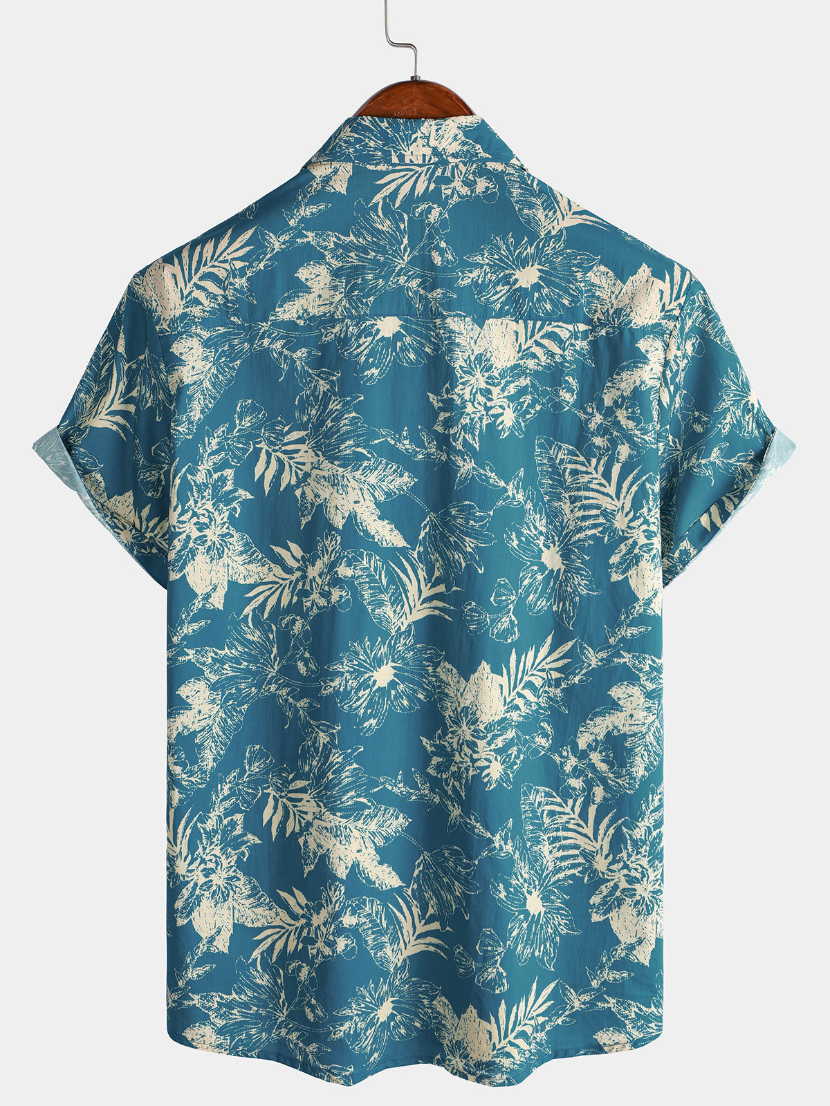 Men's Blue Vintage Floral Summer Holiday Hawaiian Breathable Button Up Short Sleeve Shirt