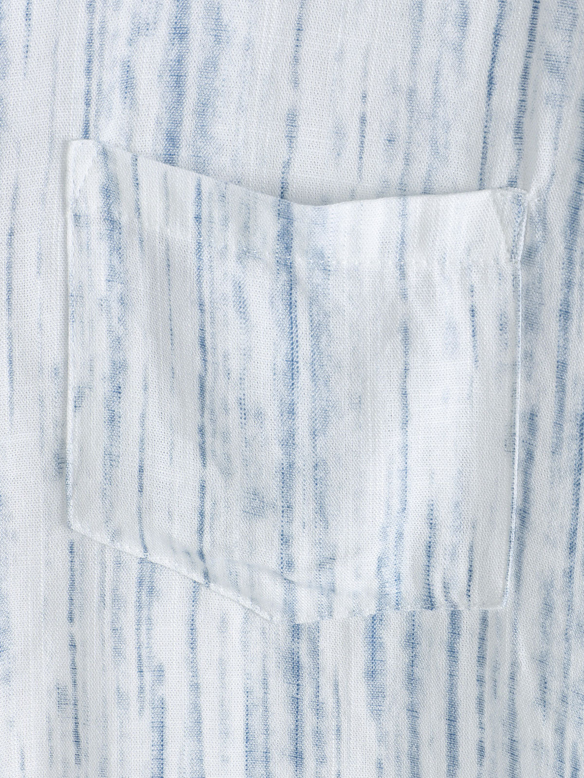 Men's Breathable Short Sleeve Pocket White Striped Shirt