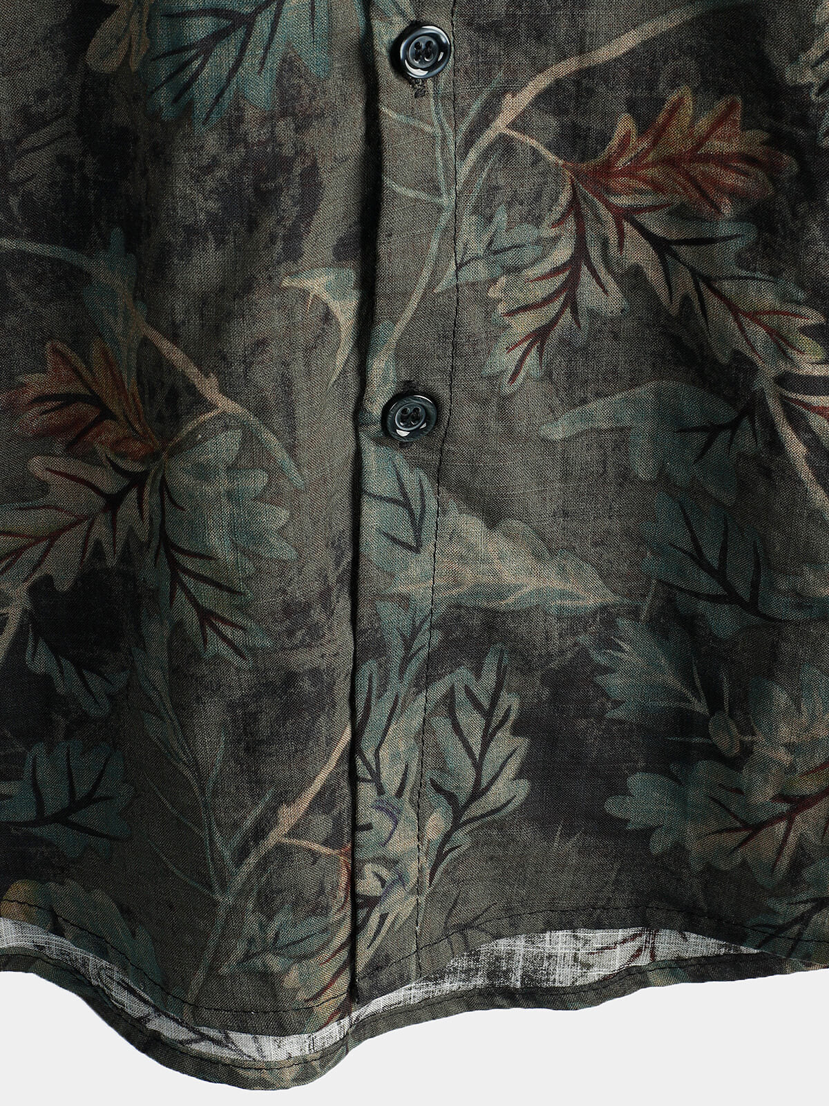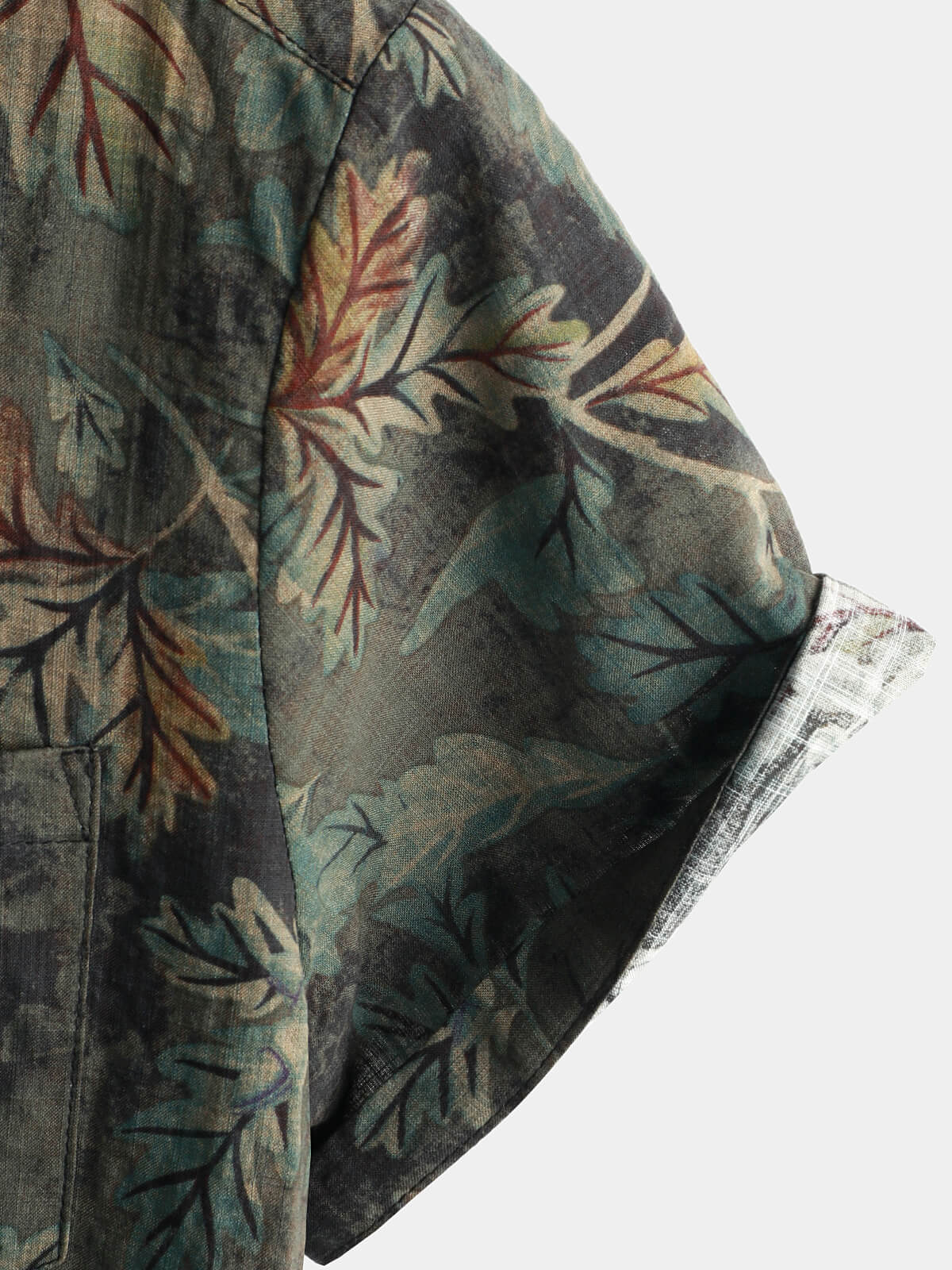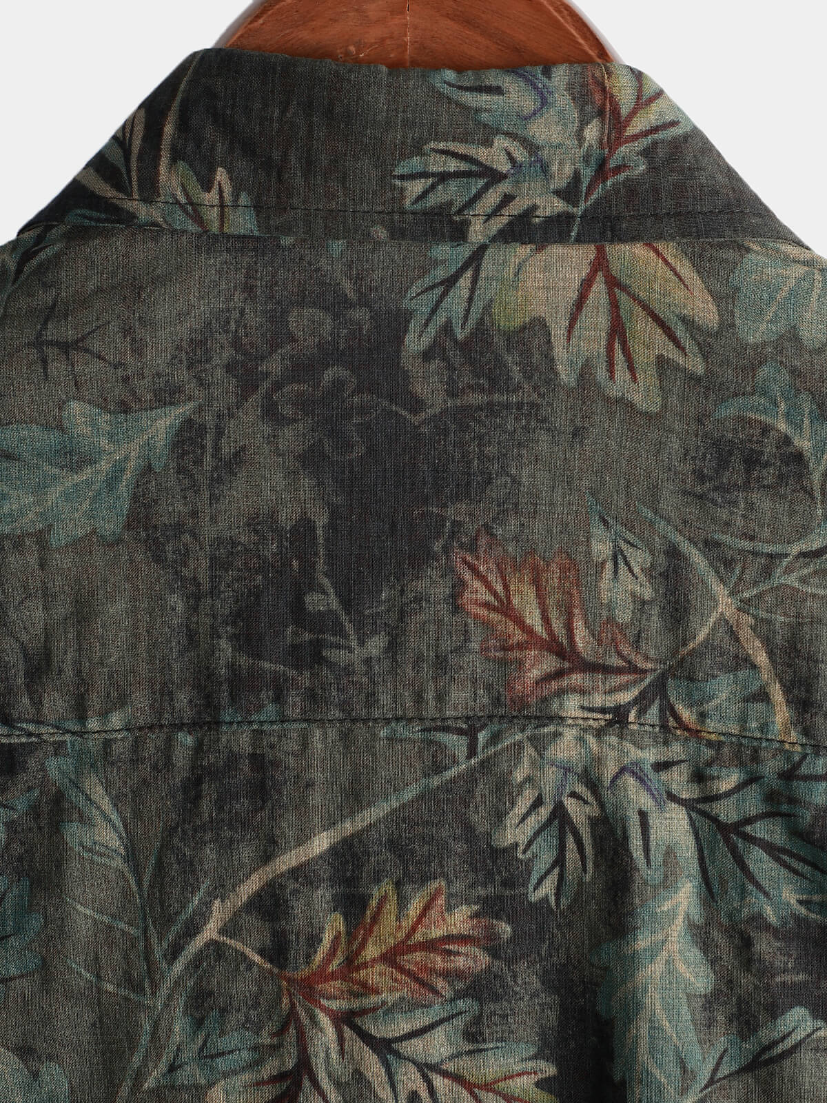 Men's Retro Leaf Short Sleeve Hawaiian Beach Shirt