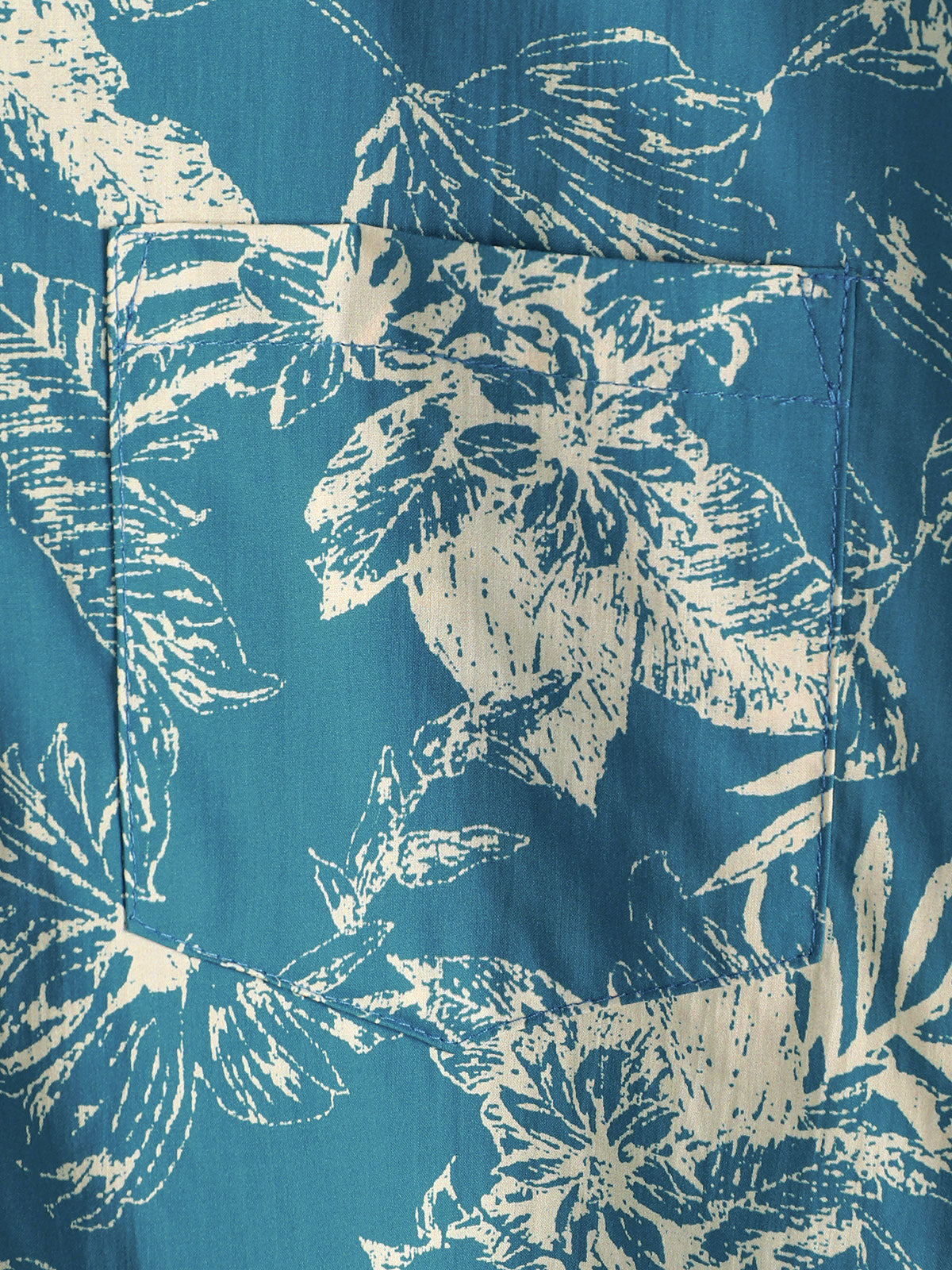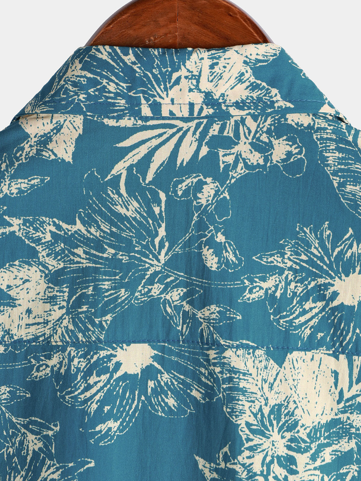 Men's Floral Tropical Hawaiian Cotton Blue Shirt