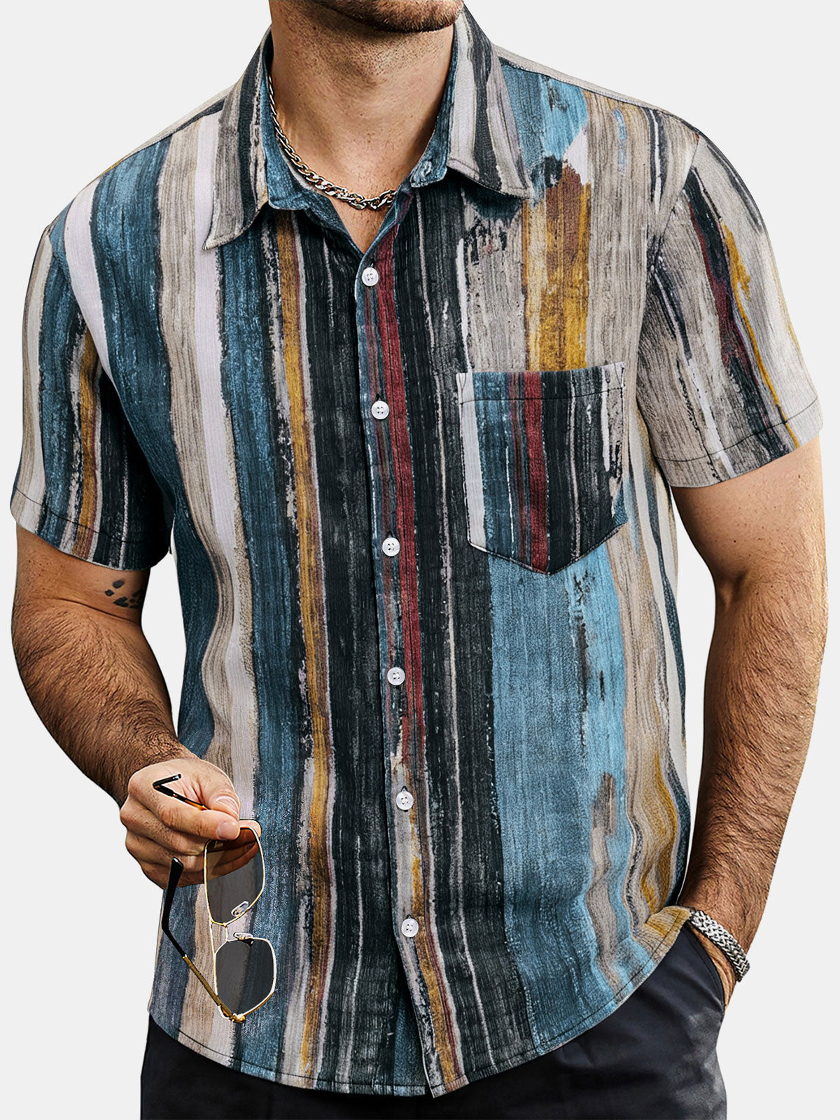 Men's Summer Striped Short Sleeve Hawaiian Shirt