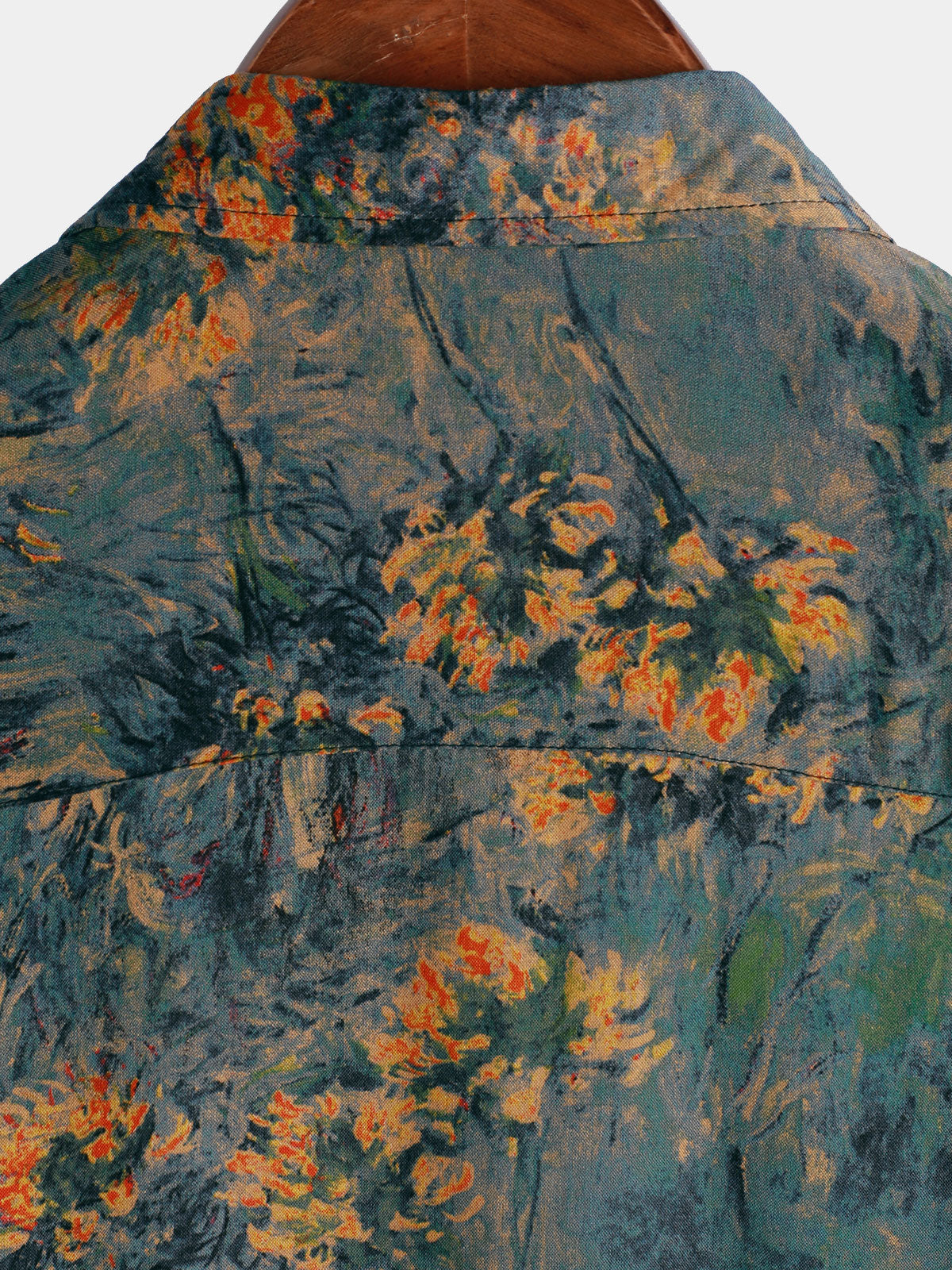 Men's Floral Print Vintage Holiday Breathable Hawaiian Short Sleeve Shirt