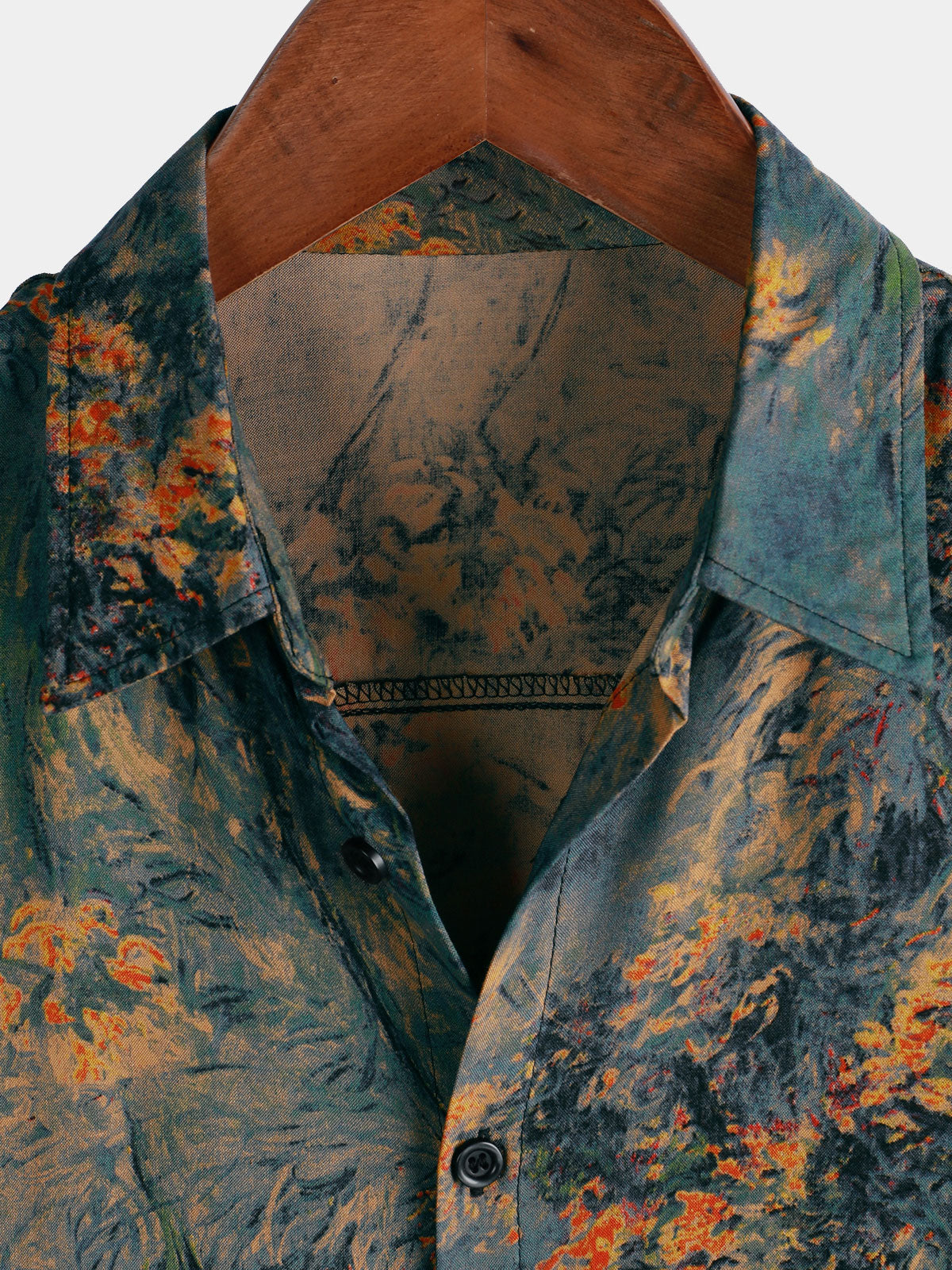 Men's Floral Cotton Casual Button Down Long Sleeve Shirt