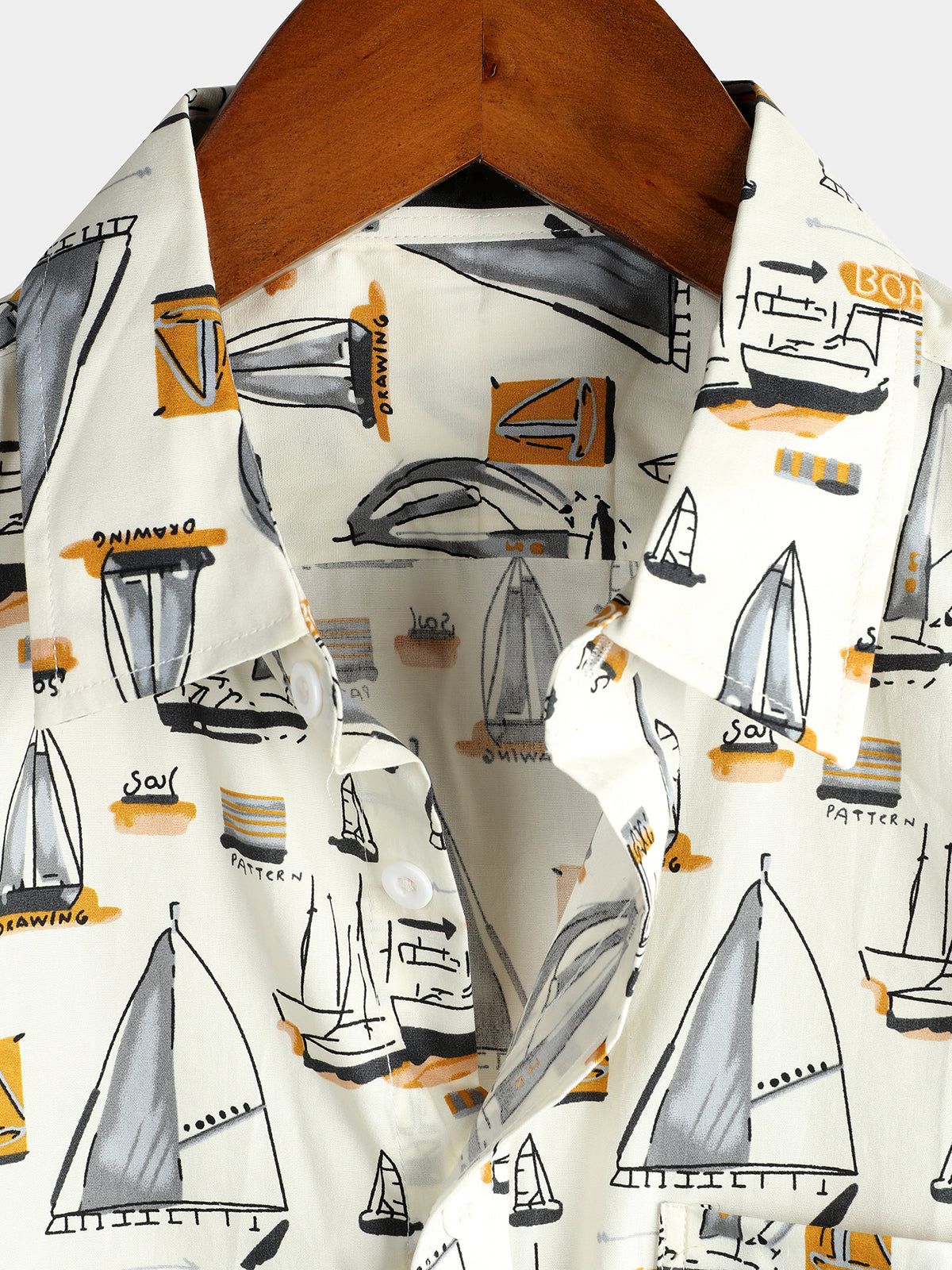 Men's Holiday Cotton Pocket Casual Short Sleeve Shirt